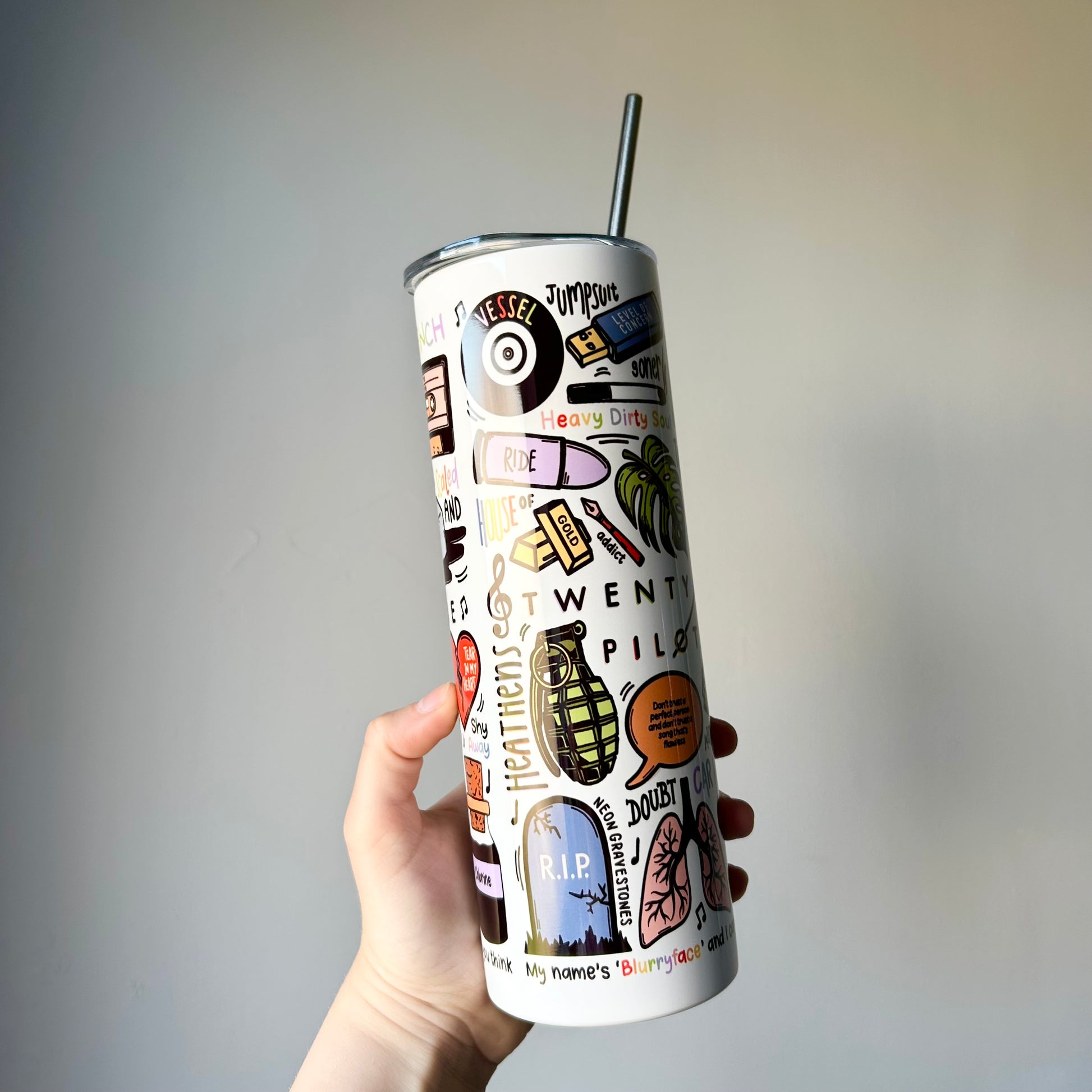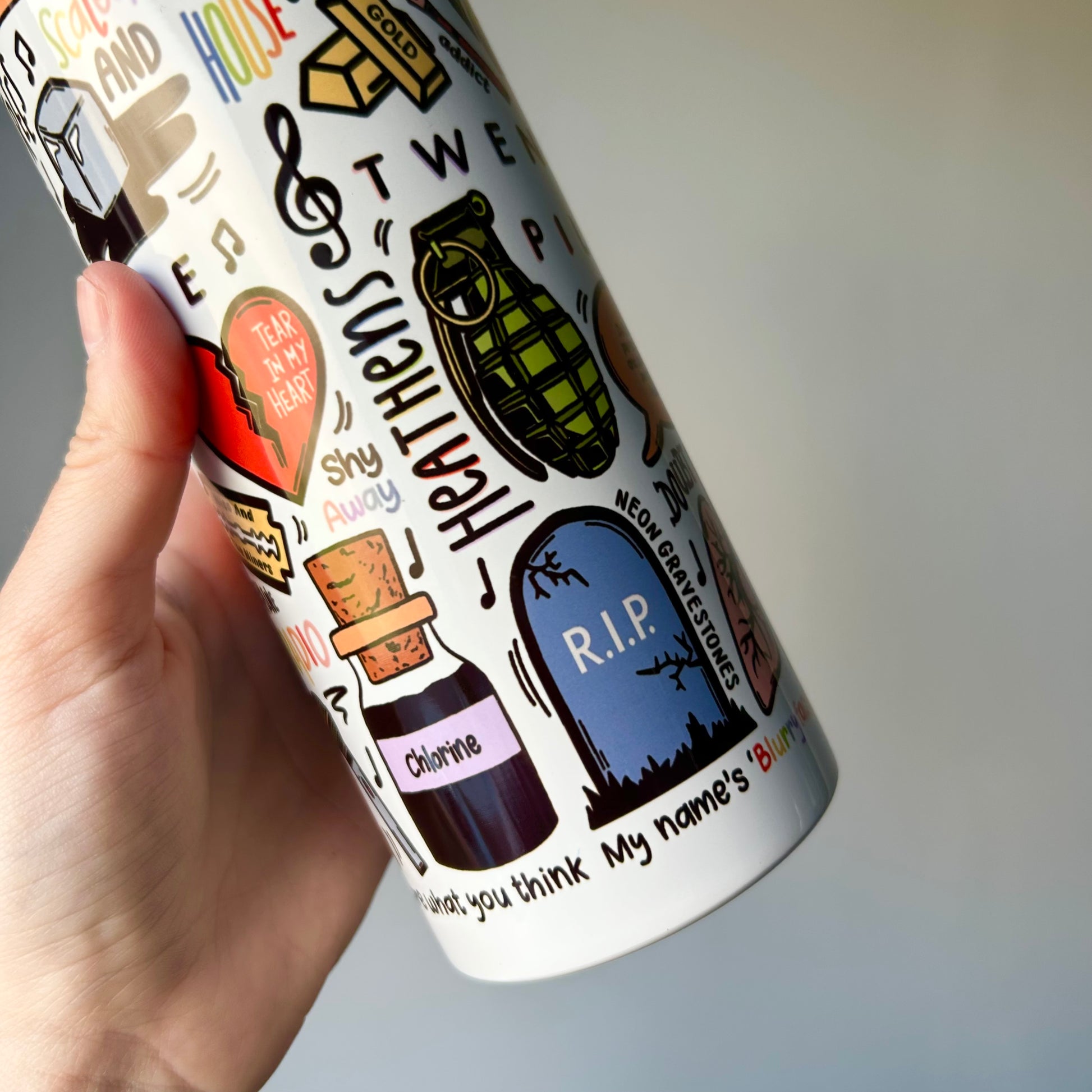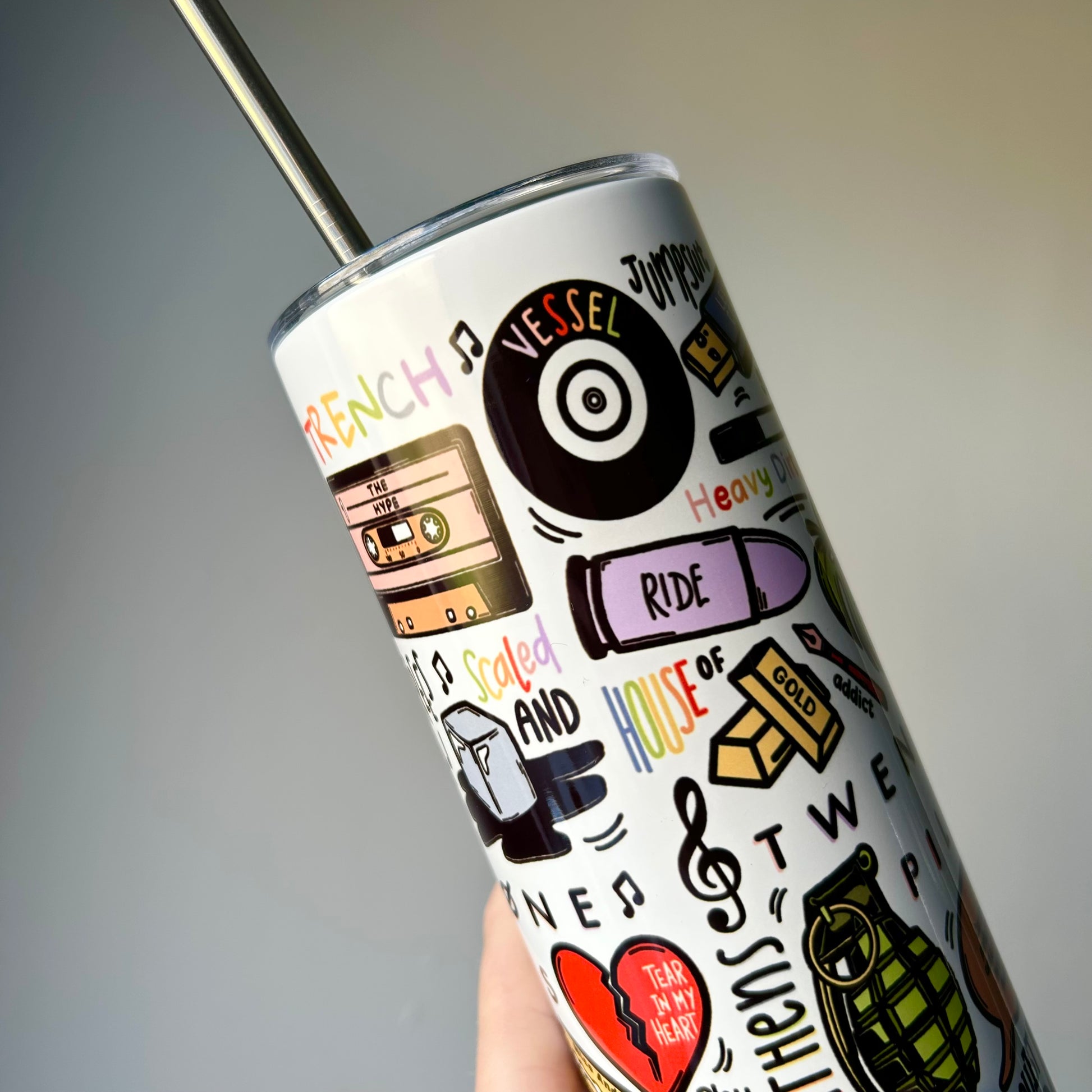 🥤Get lyrical with your beverages with our travel drinks cup! This versatile cup keeps your drinks hot OR cold and your spirits high with fun lyrics and drawings printed all around the cup. Stay hydrated (and entertained) on the go with our tumblers🥰