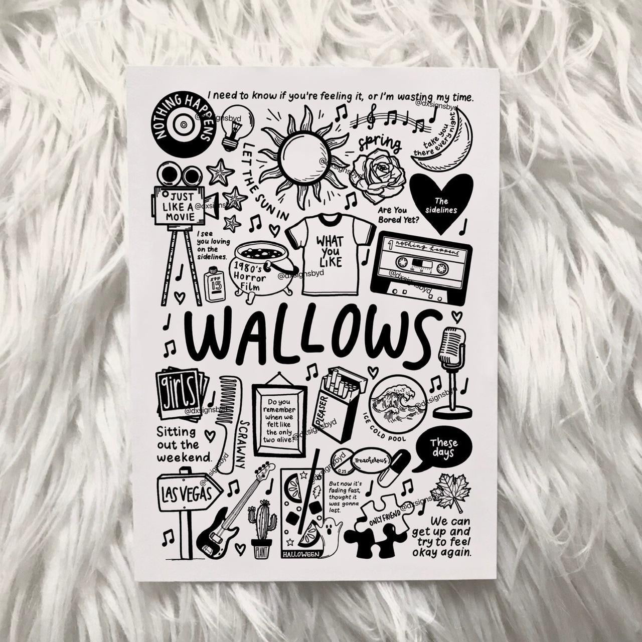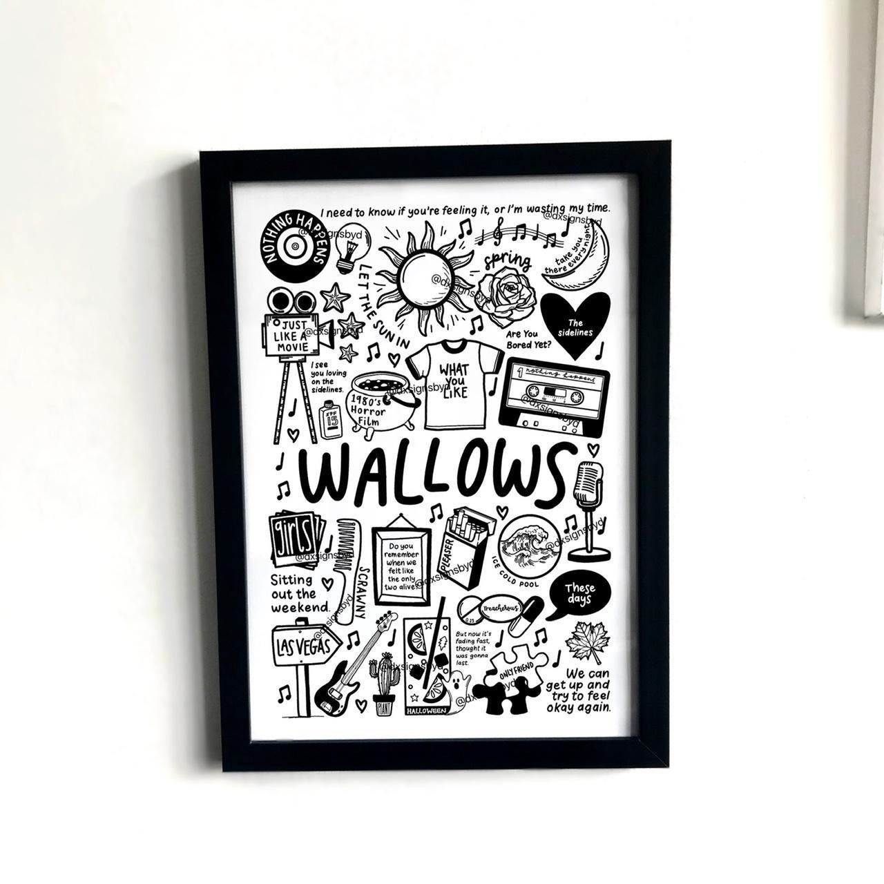 🎶Póster de Wallows con imágenes y letras de canciones de su disco Nothing Happens.
