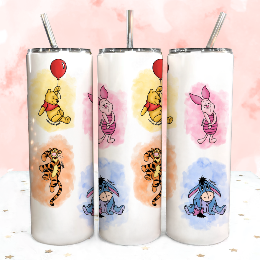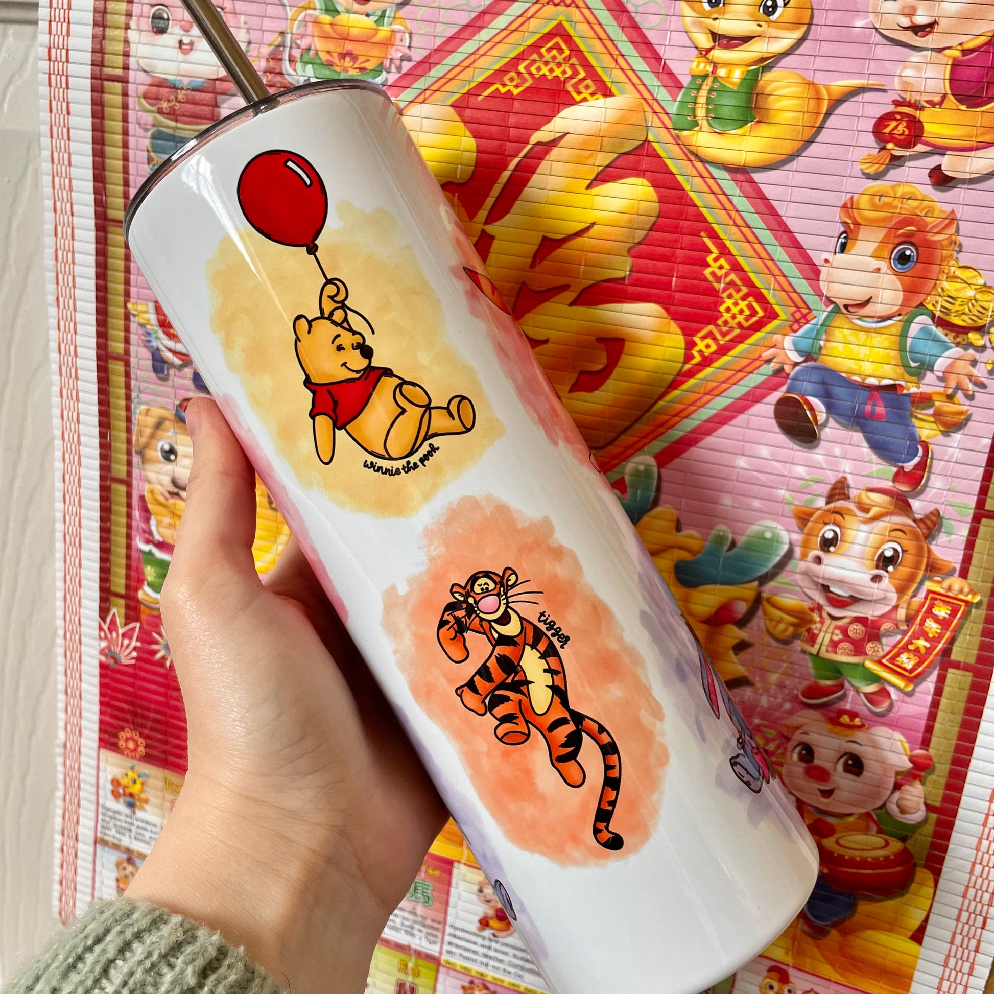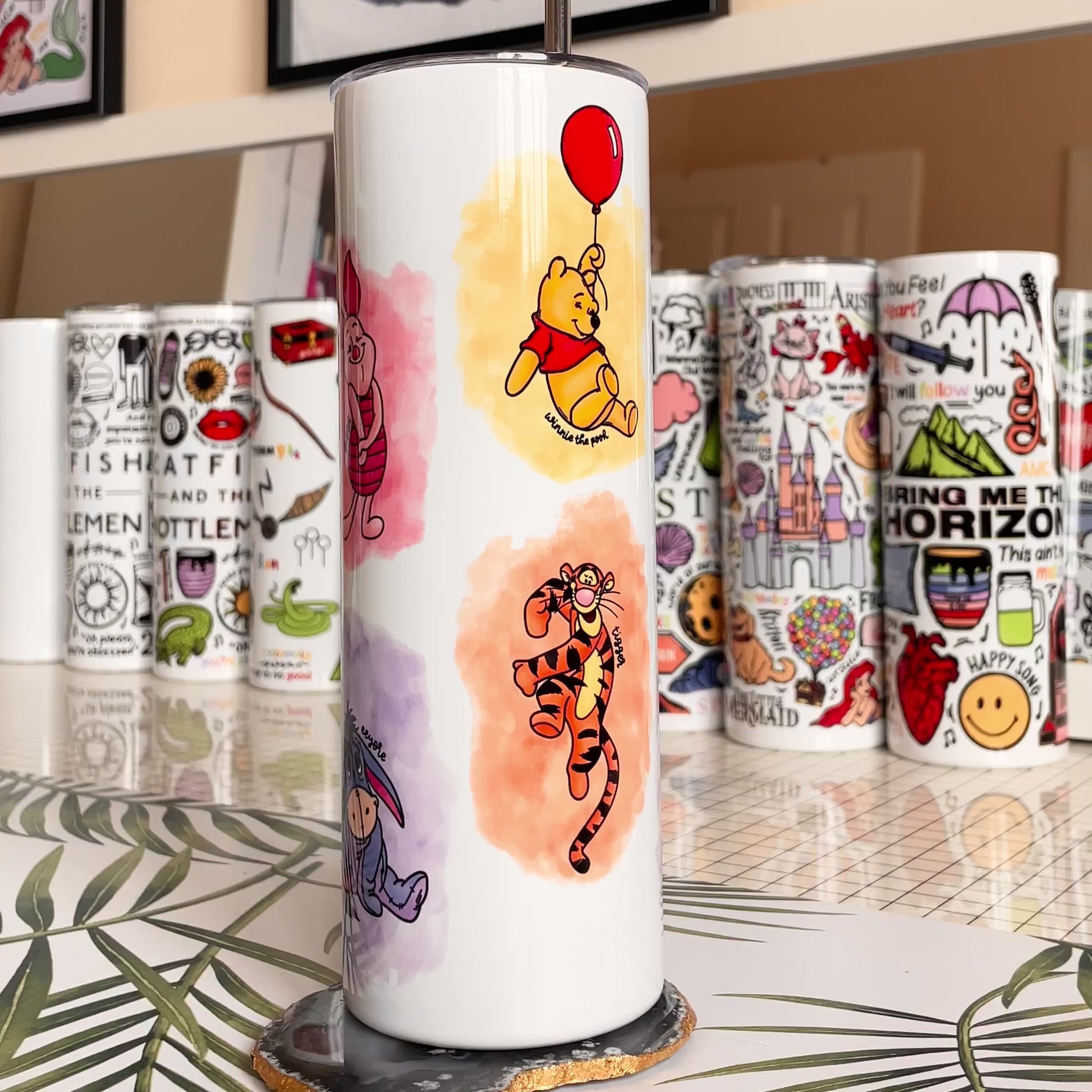 🥤Get magical with your beverages with our Pooh bear travel drinks cup! This versatile cup keeps your drinks hot OR cold and your spirits high with fun drawings of the Pooh characters printed all around the cup. Stay hydrated (and entertained) on the go with our tumblers🥰