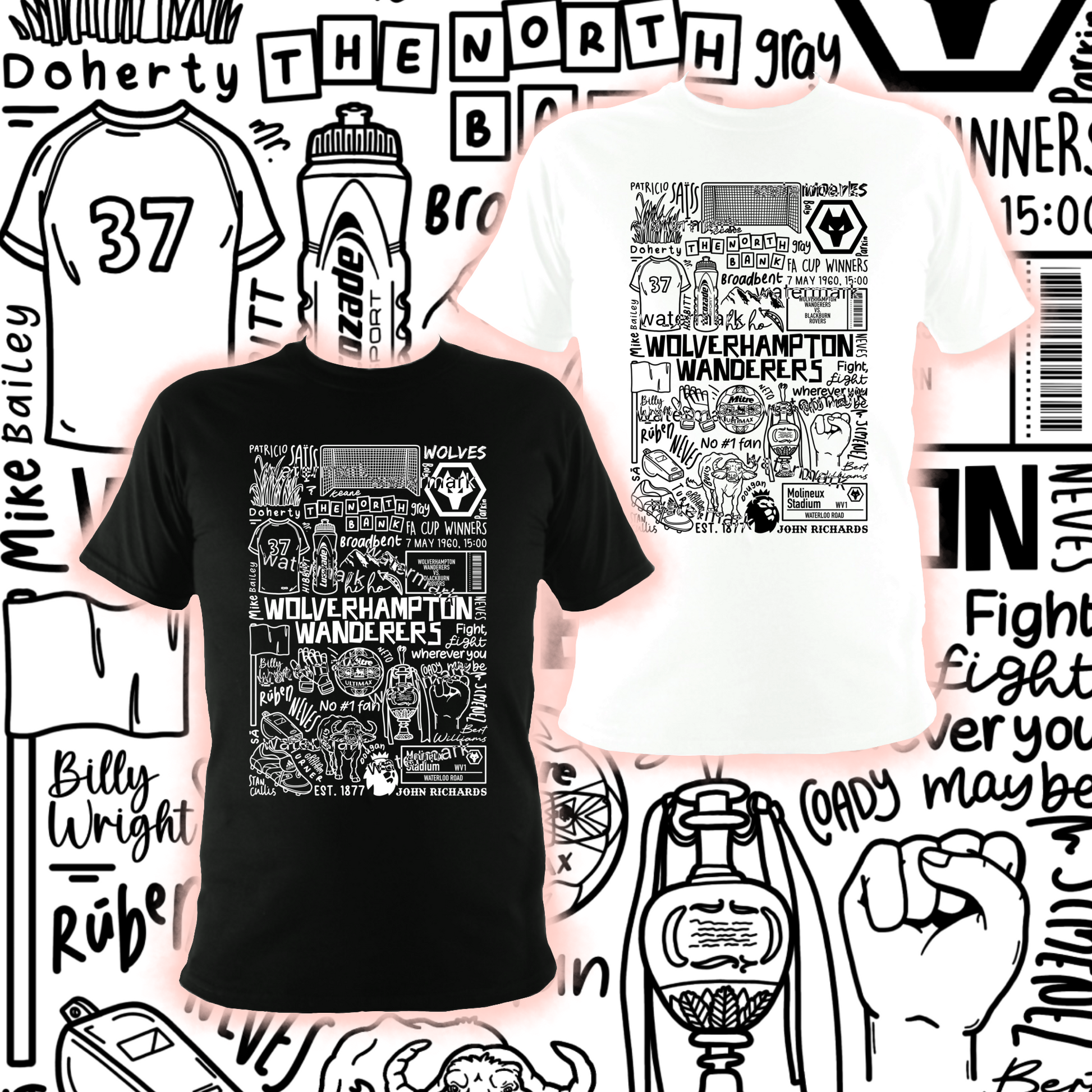 🎶Professionally printed cotton unisex Wolves football top in black or white.