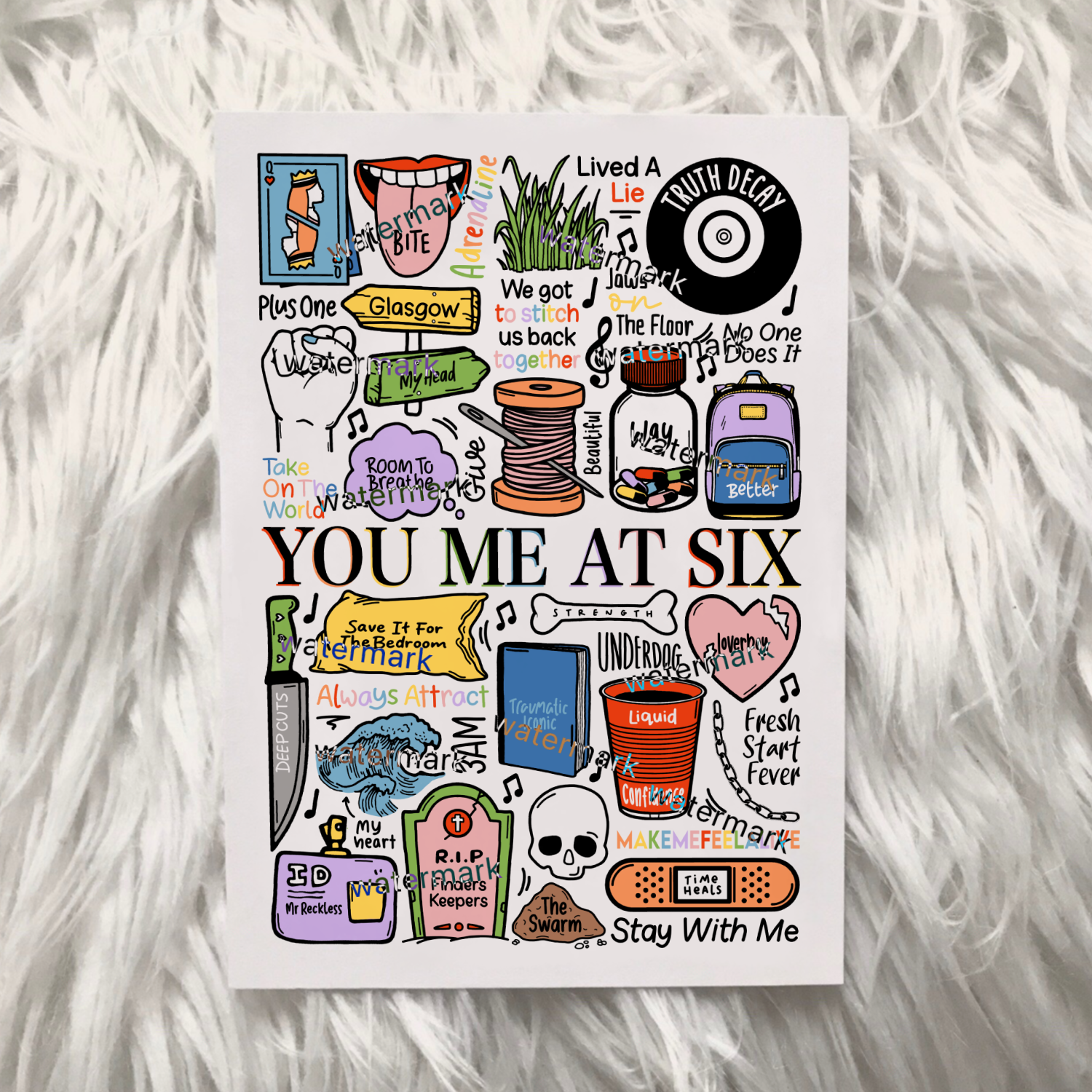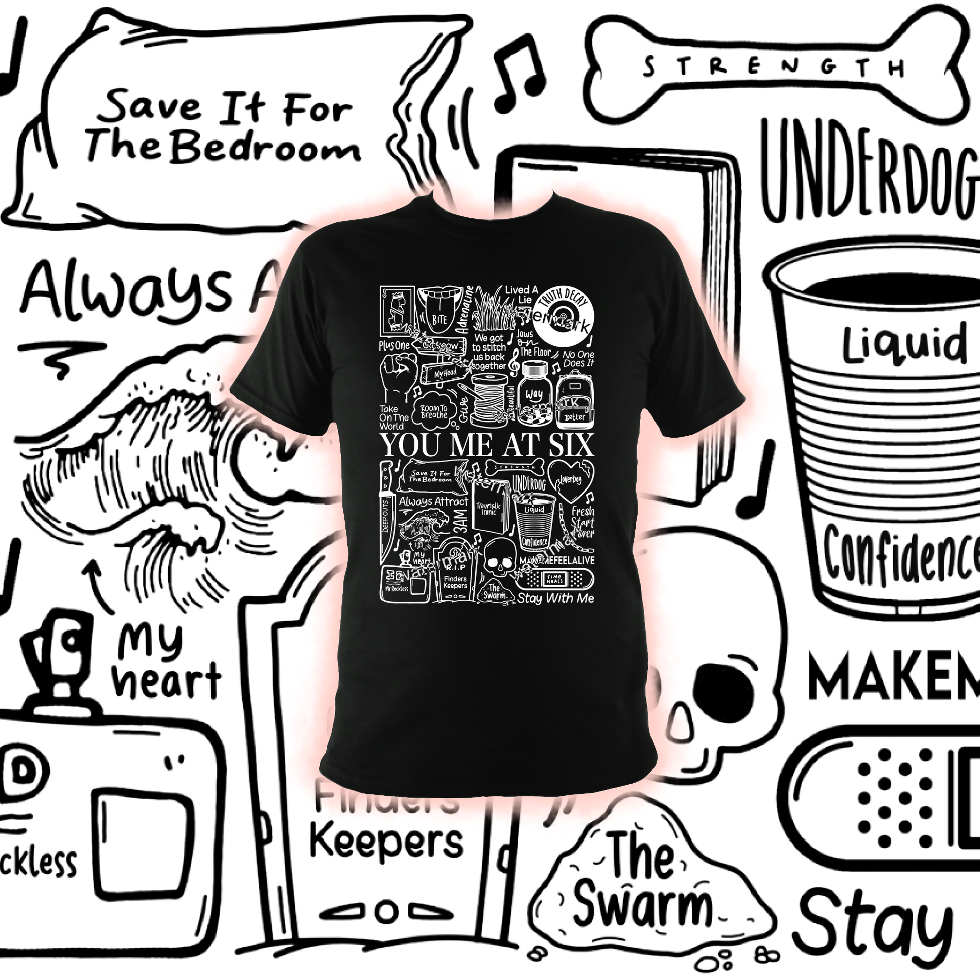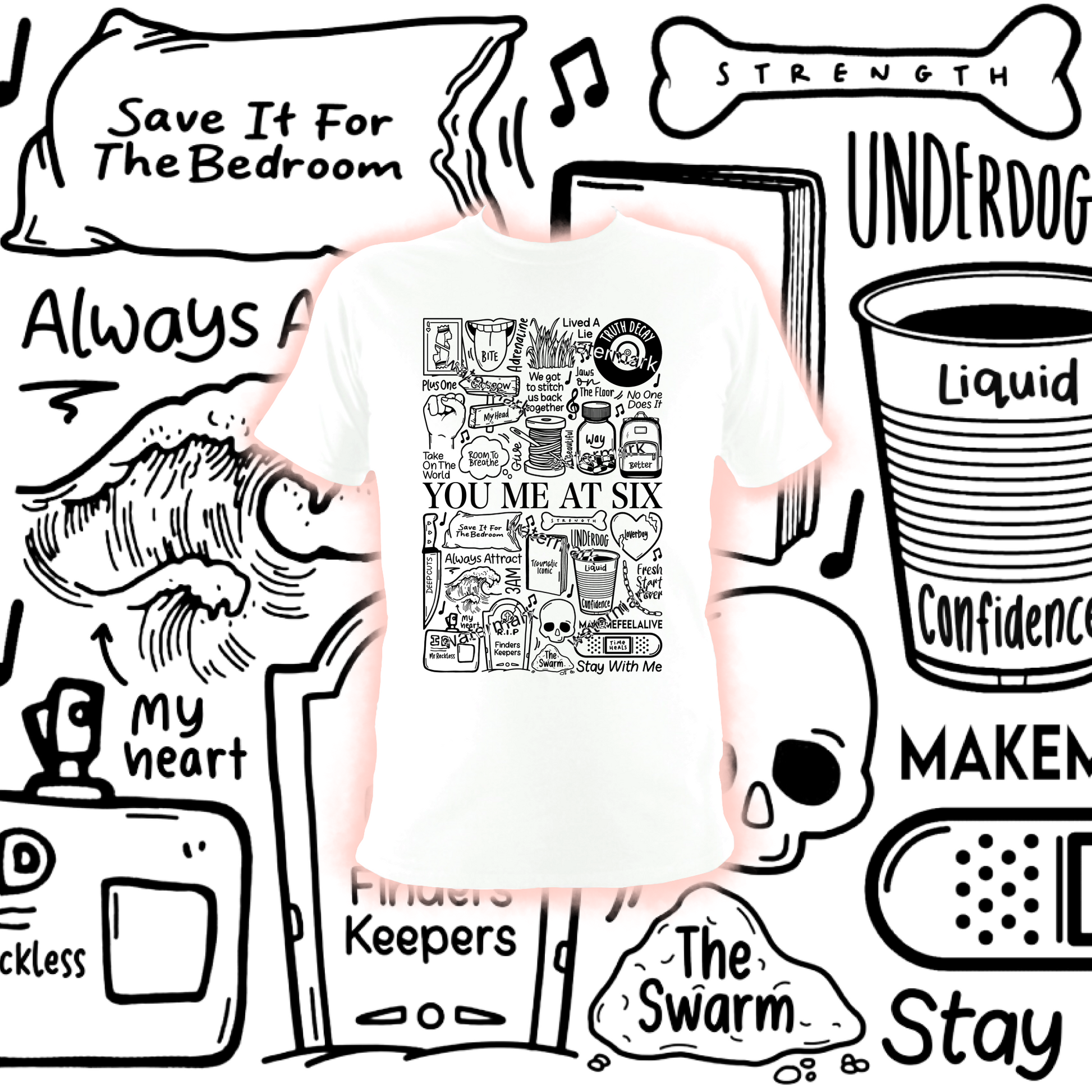 🎶 Camiseta unisex You Me At Six de algodón impresa profesionalmente en blanco o negro.