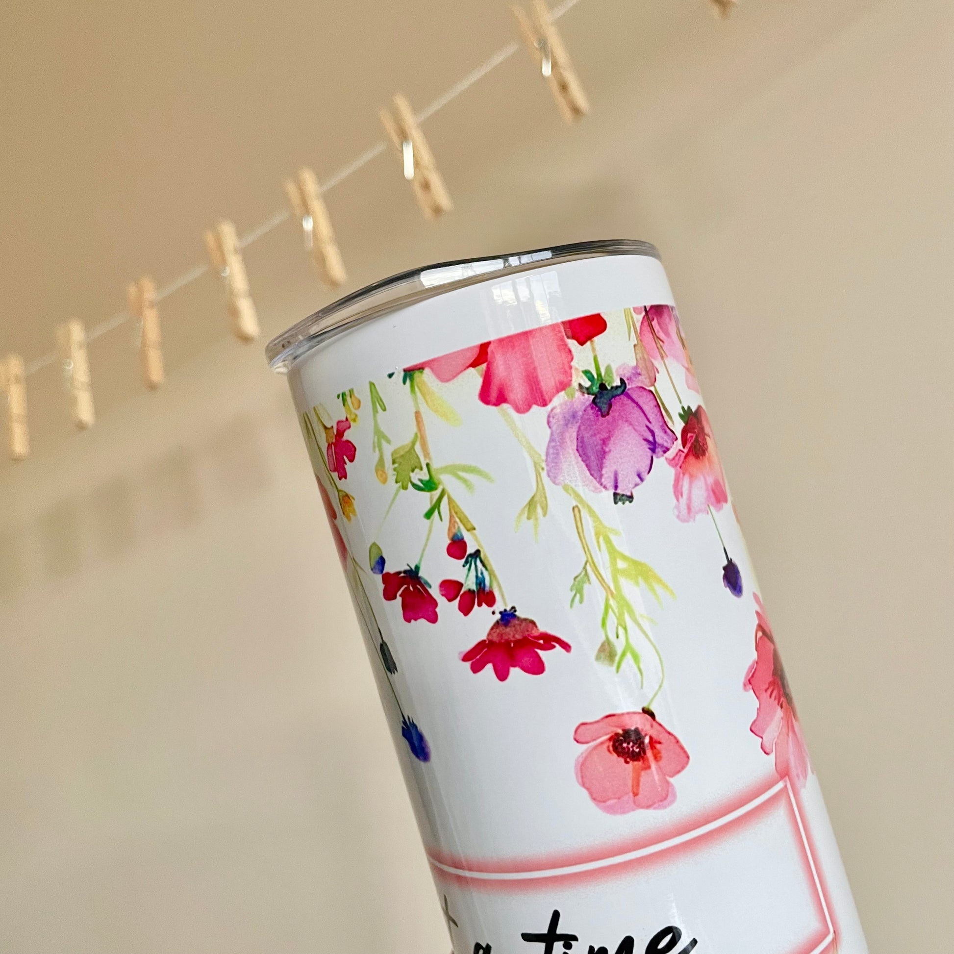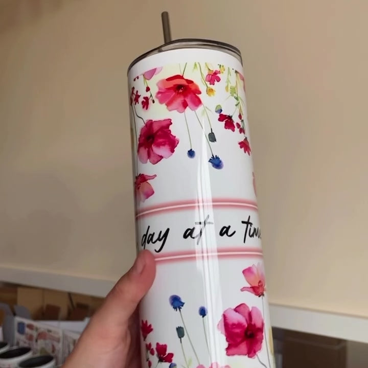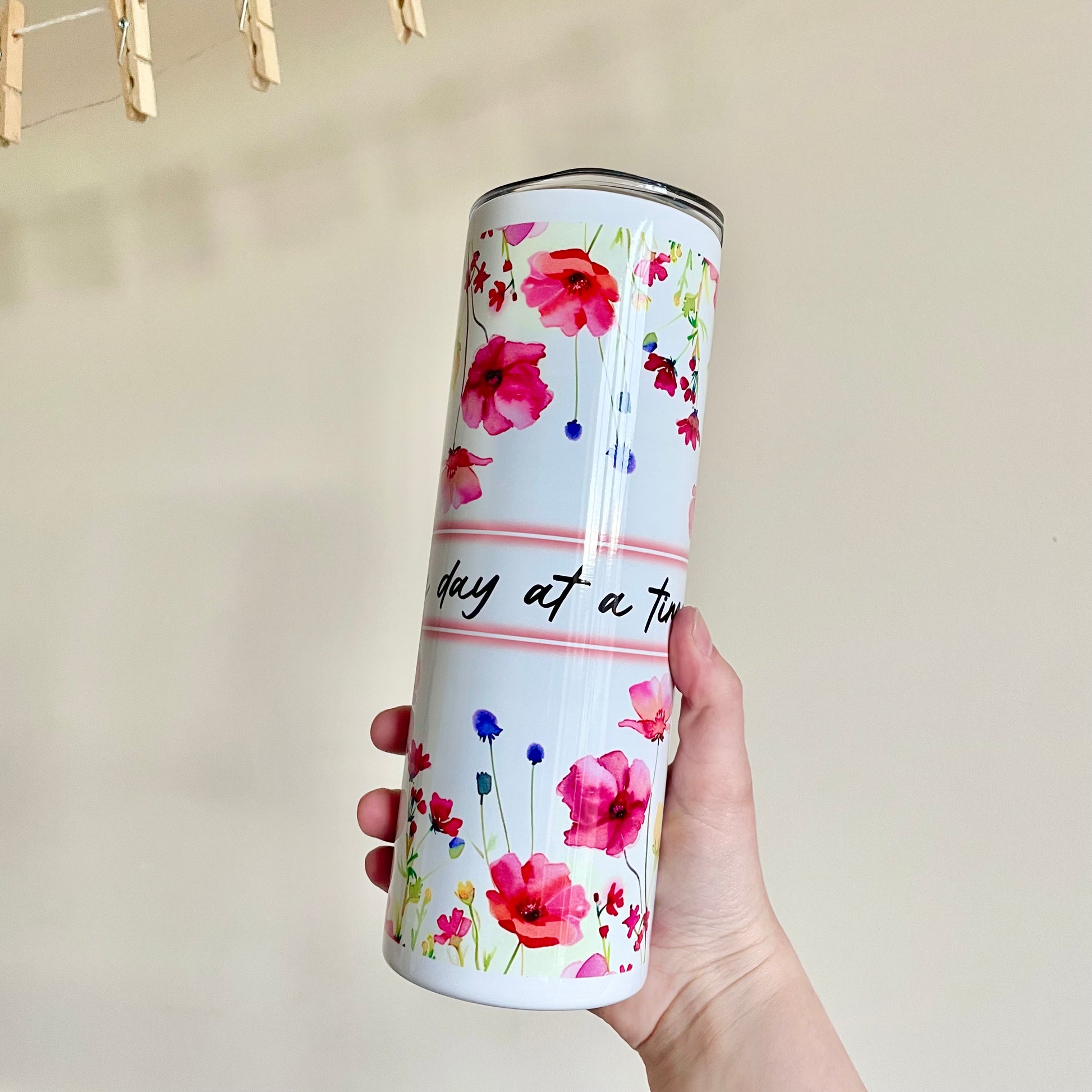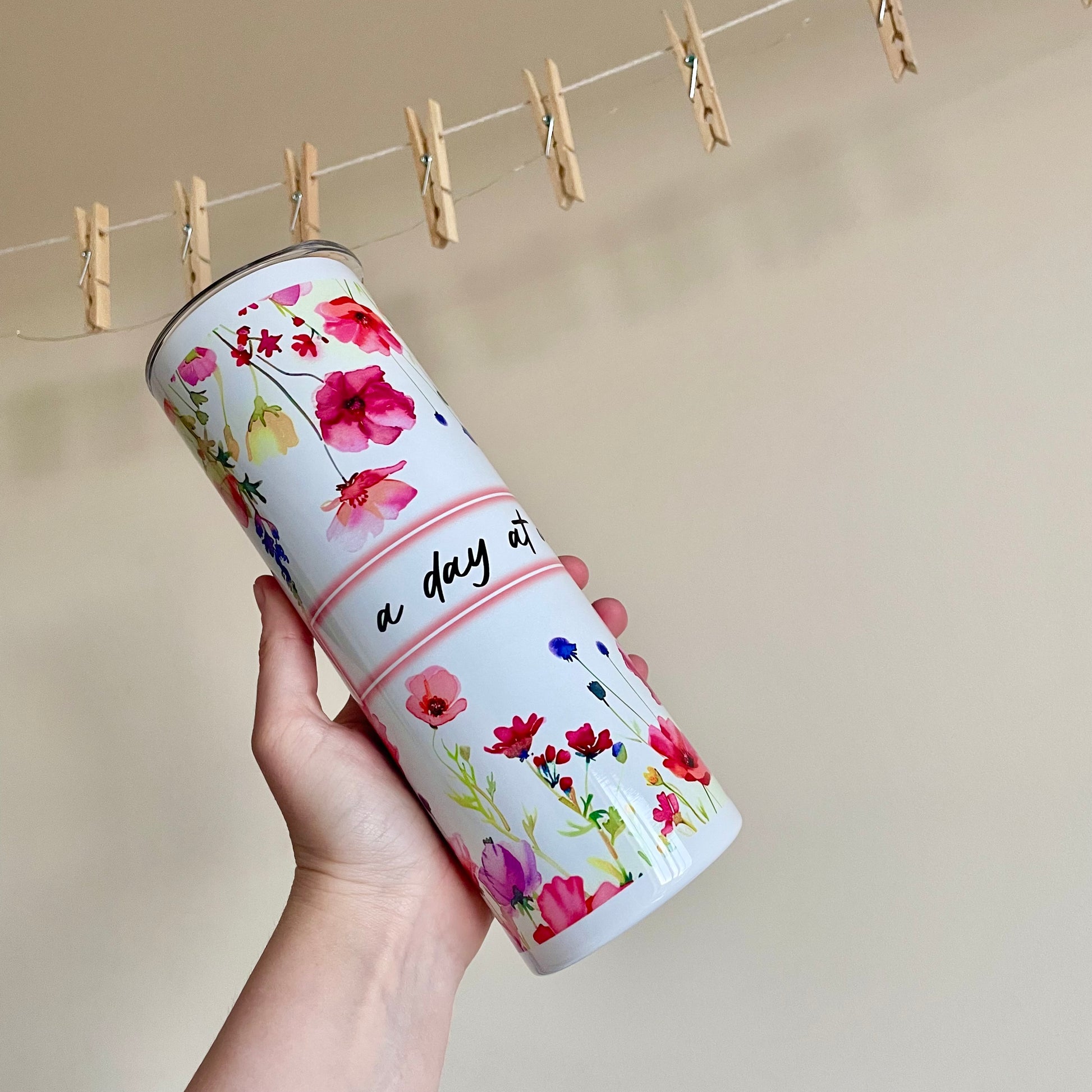 🥤Obtenez une touche florale avec vos boissons grâce à notre tasse à boissons avec citation inspirante de voyage ! Cette tasse polyvalente garde vos boissons chaudes OU froides et votre moral au beau fixe avec le dicton « un jour à la fois » imprimé dans une jolie police tout autour de la tasse et des détails de fleurs aquarellées. Restez hydraté (et motivé) en déplacement avec ce gobelet🥰