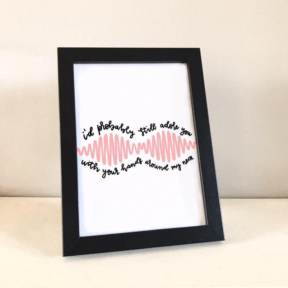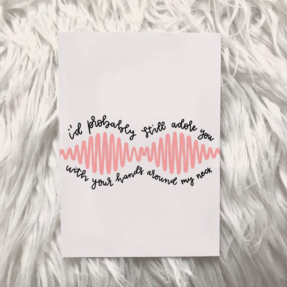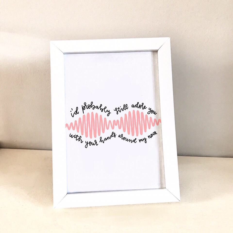 🎼Affiche des paroles de la chanson 505 d'Arctic Monkeys qui comprend la célèbre onde sonore en rose.