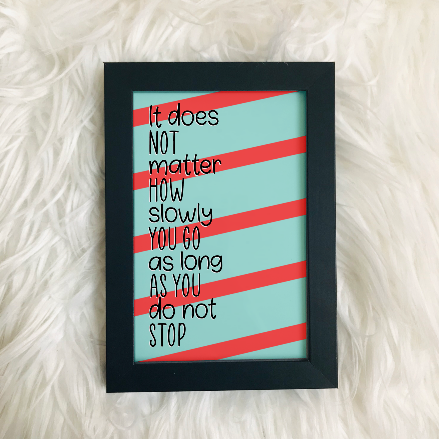 🩵Affiche positive avec la citation « Peu importe la lenteur avec laquelle vous avancez, tant que vous ne vous arrêtez pas ».