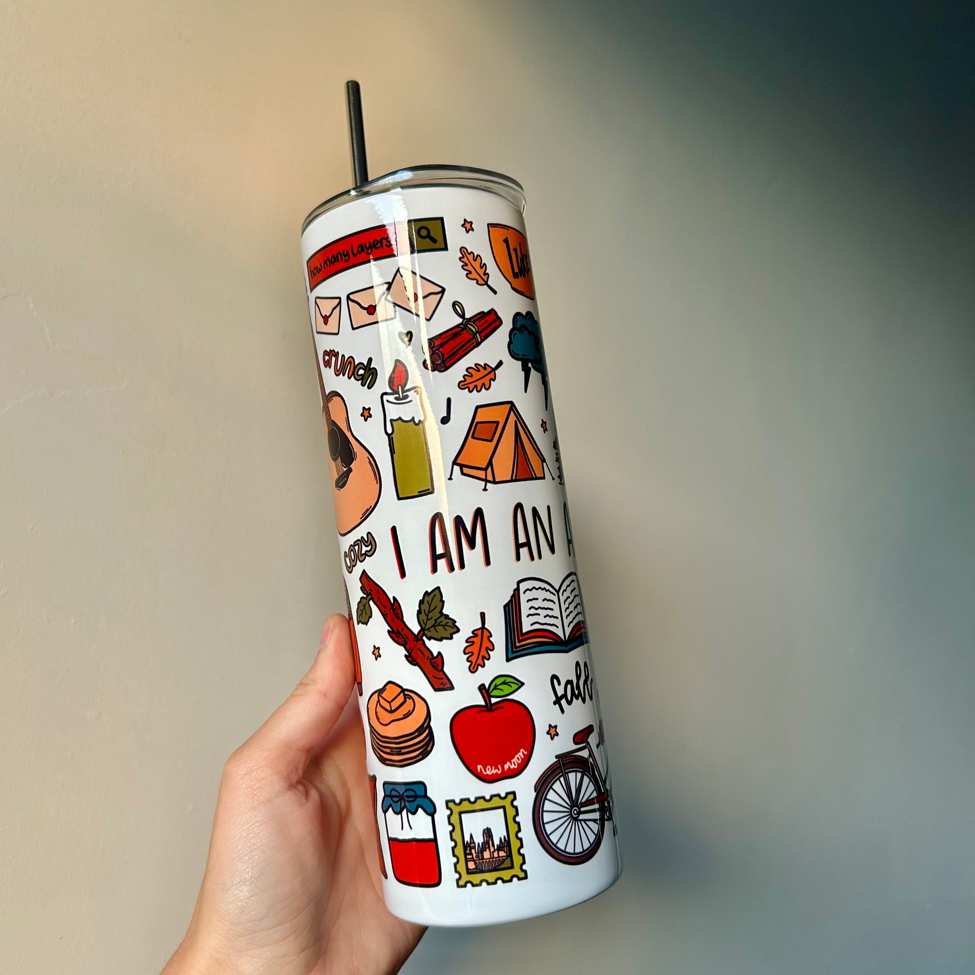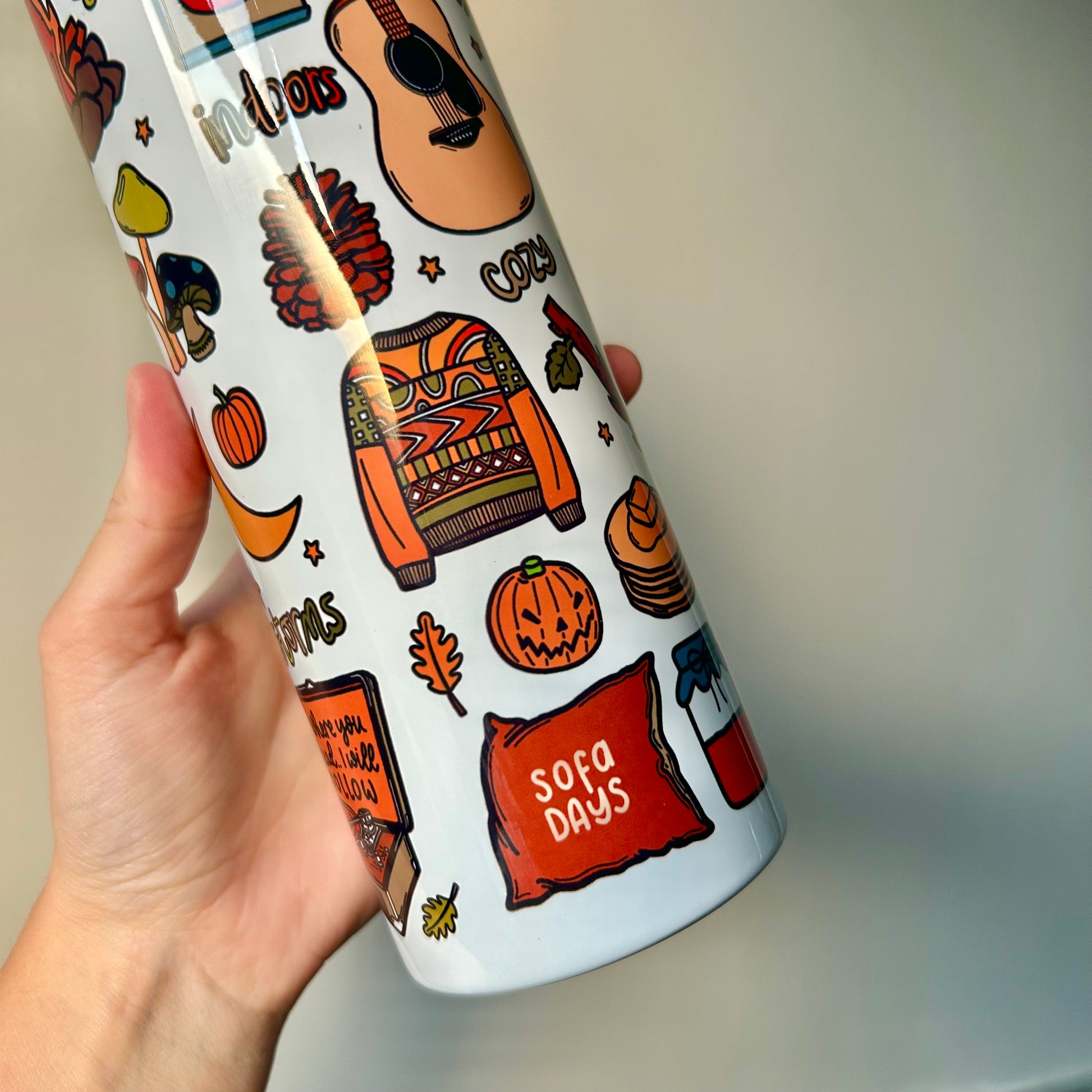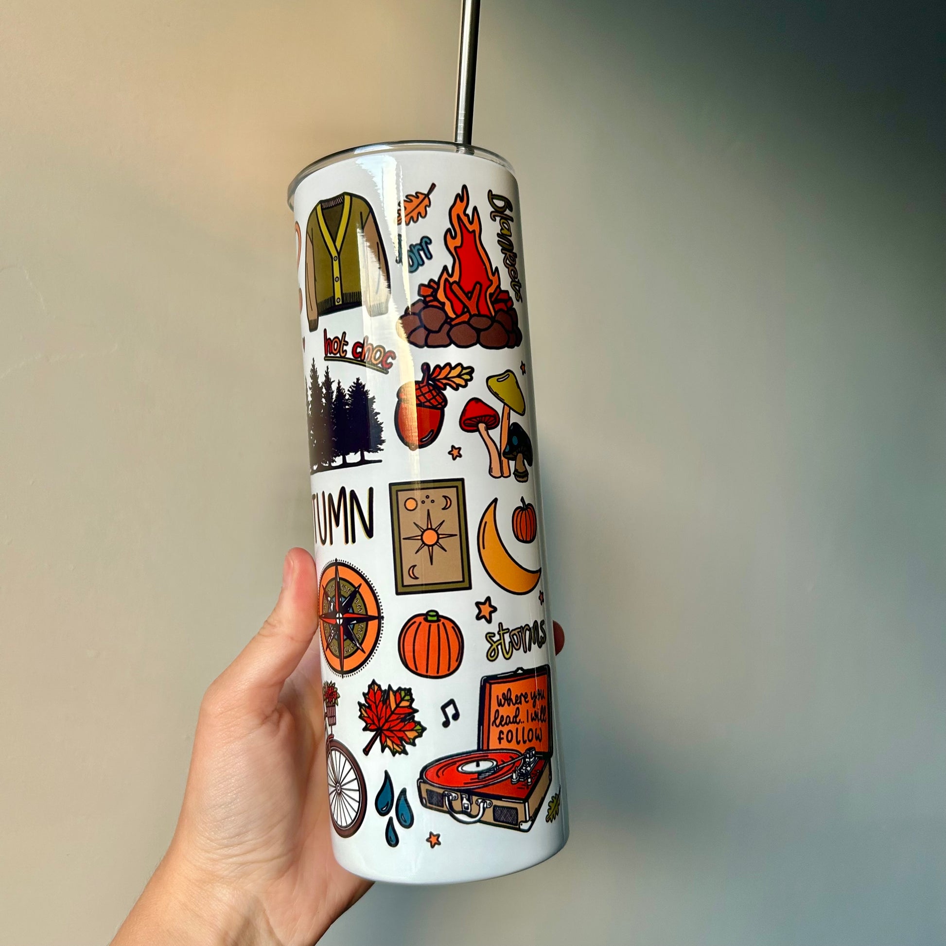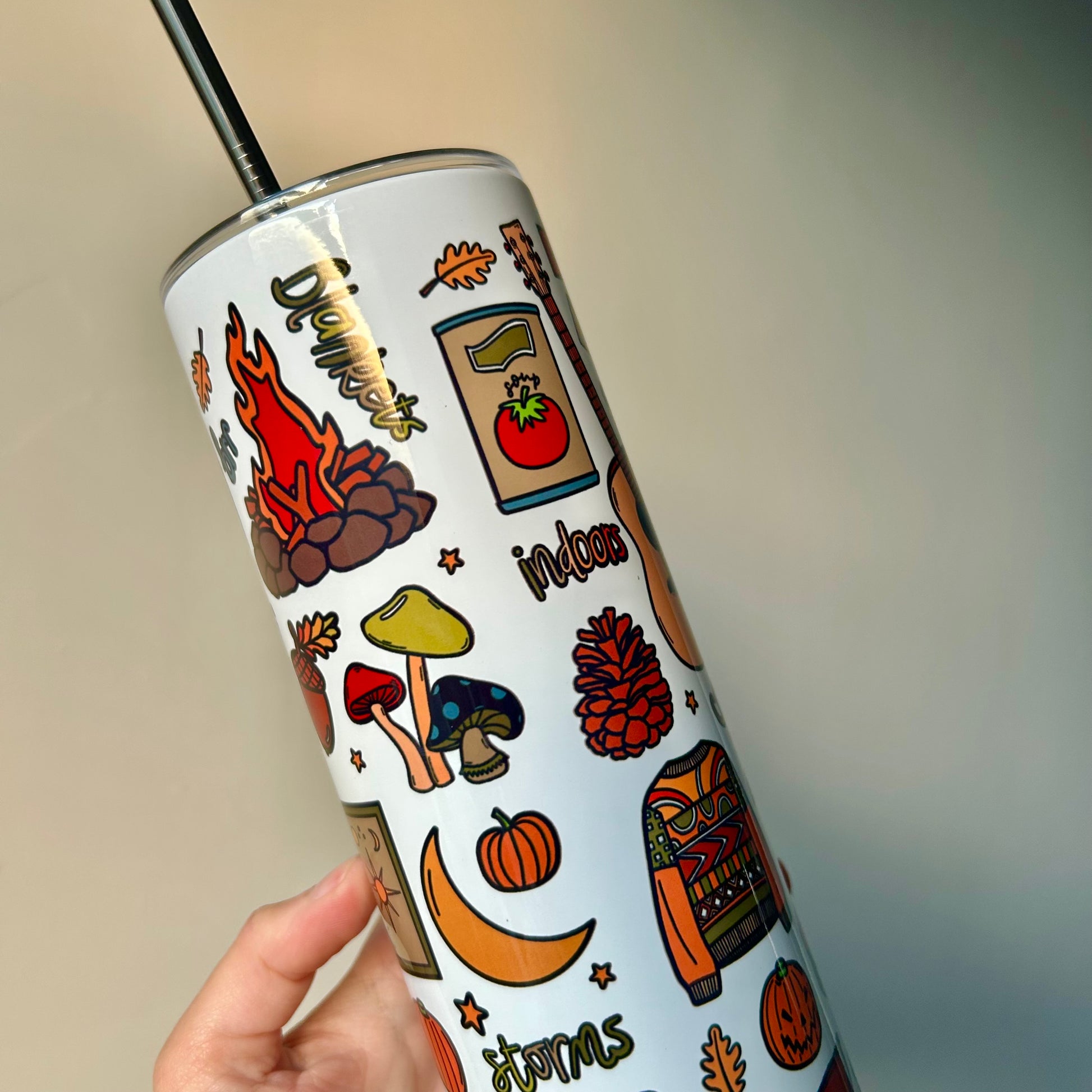 🥤Get seasonal with your beverages with our autumnal travel drinks cup! This versatile cup keeps your drinks hot OR cold and your spirits high with fun drawings printed all around the cup. Stay hydrated (and entertained) on the go with our tumblers🥰