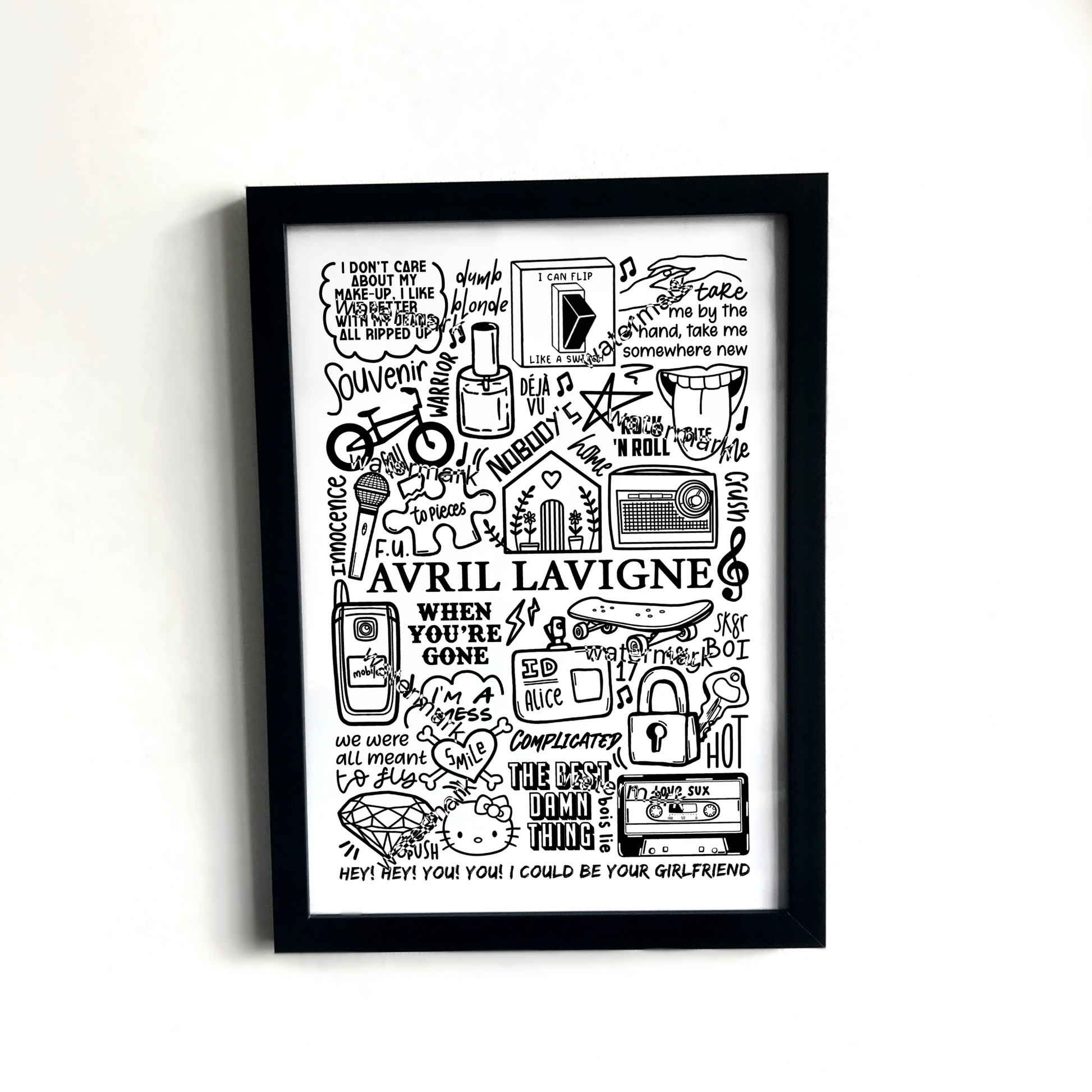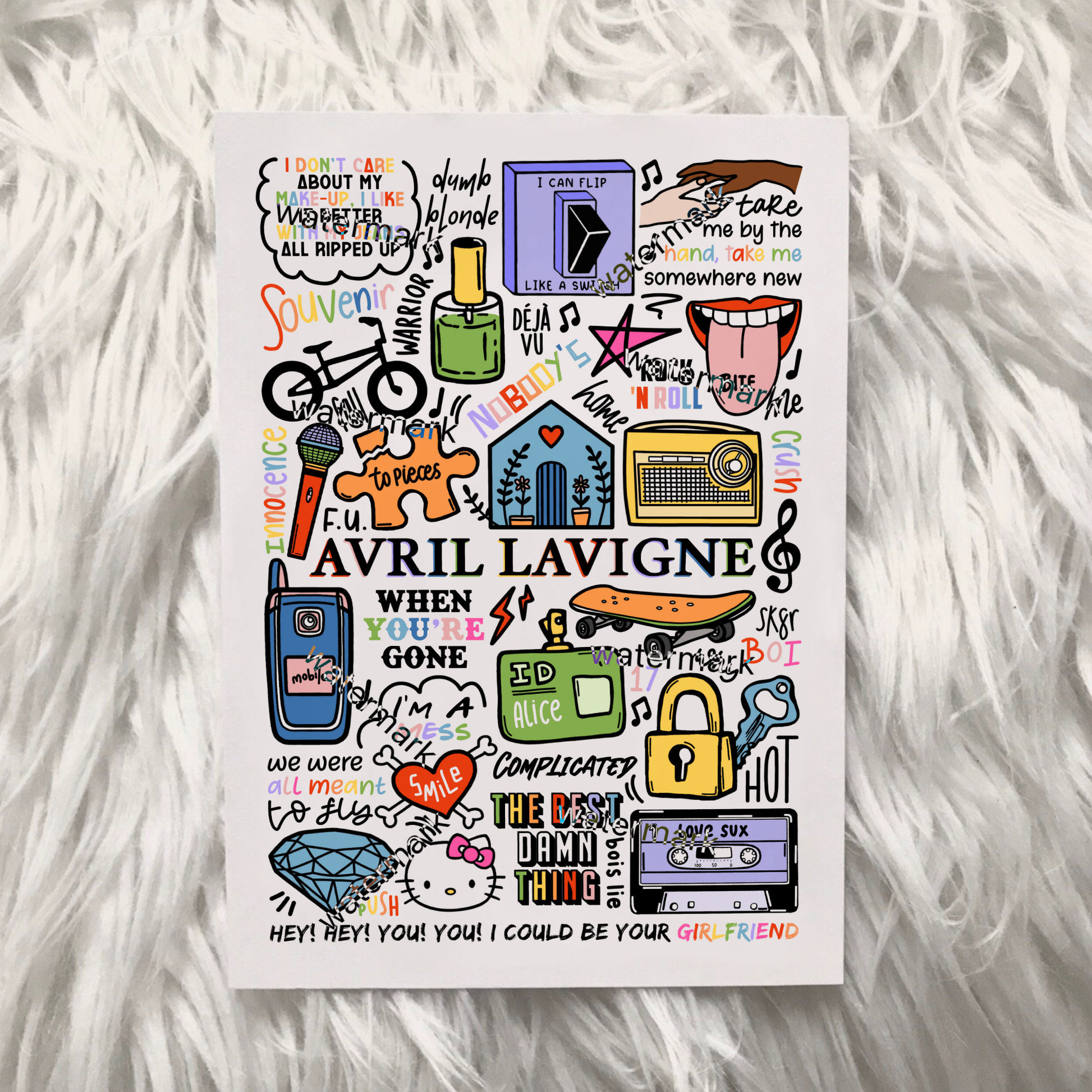 🎶Avril Lavigne wall art including images, lyrics, and song titles from her albums.