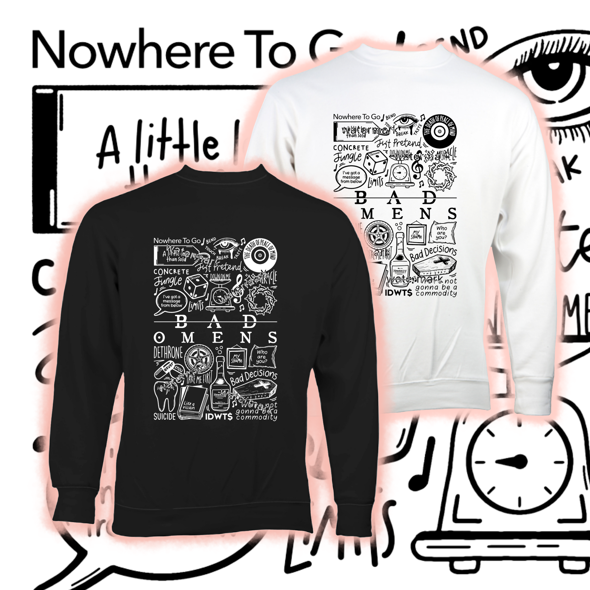 Pull unisexe Bad Omens en coton doux en noir ou blanc.