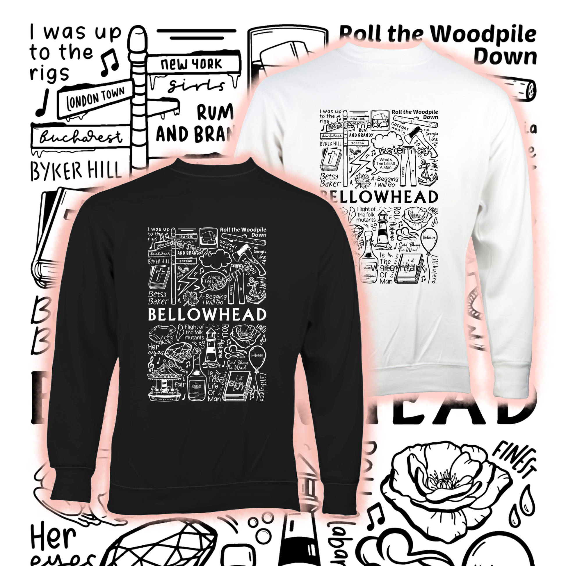 Pull Bellowhead unisexe en coton doux en noir ou blanc.