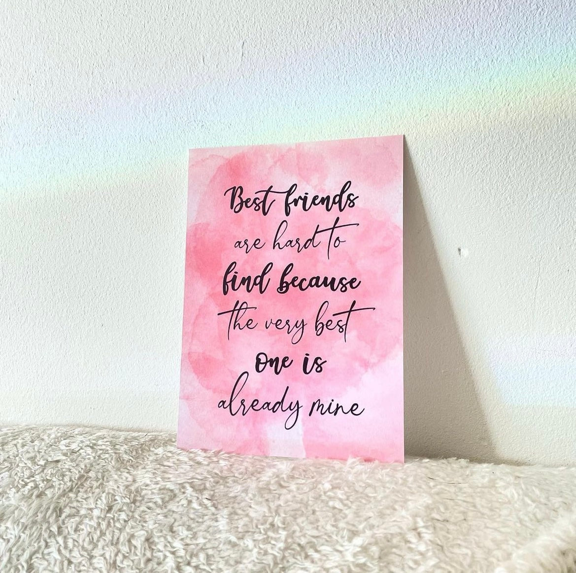 Affiche de citation des meilleurs amis créée à l'aide d'un iPad et d'un Apple Pencil, sur un fond effet aquarelle rose.