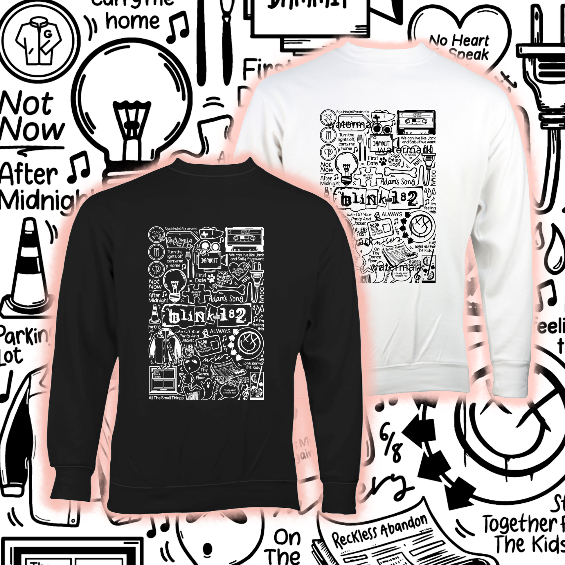 Pull unisexe Blink-182 en coton doux noir ou blanc.
