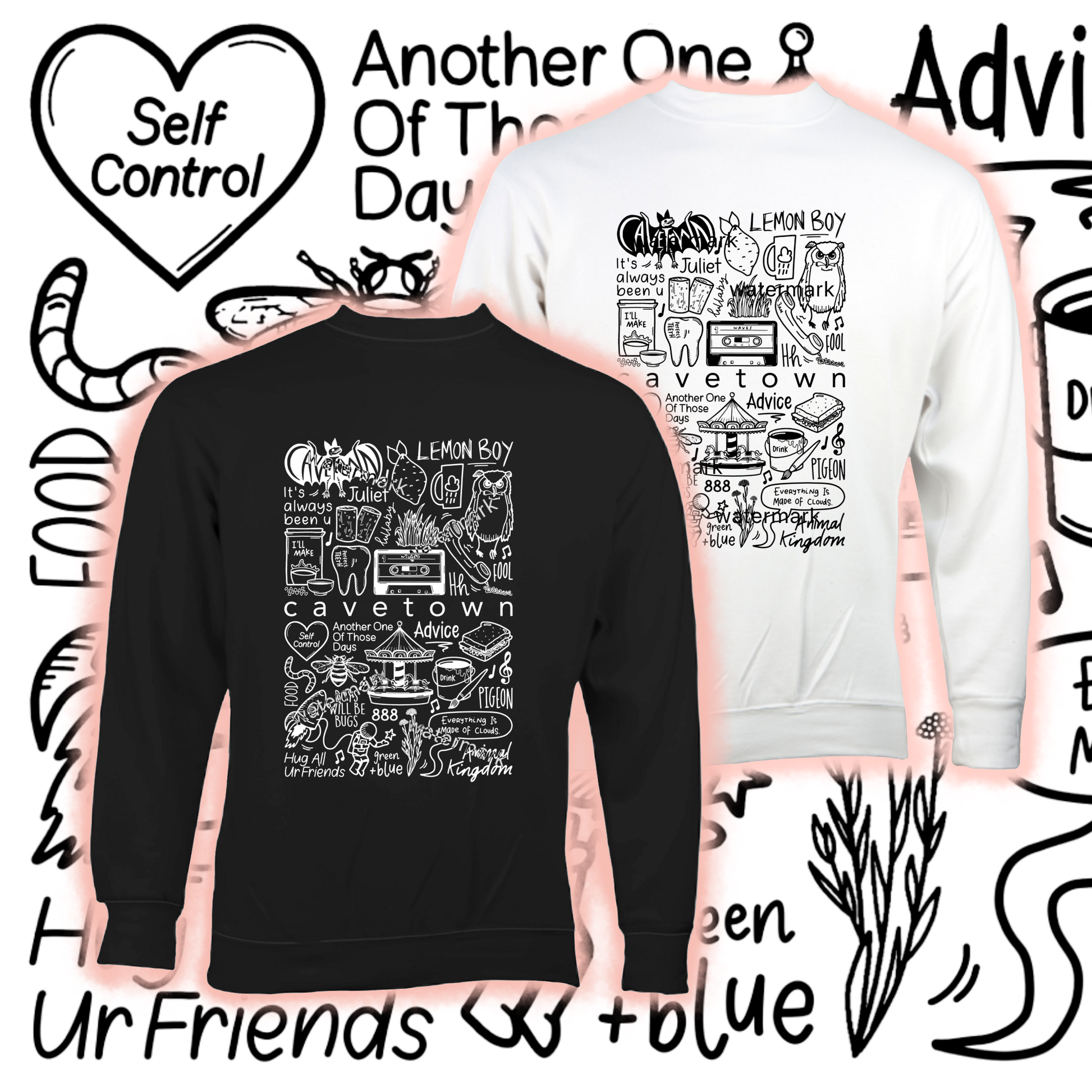 Pull unisexe Cavetown en coton doux en noir ou blanc.