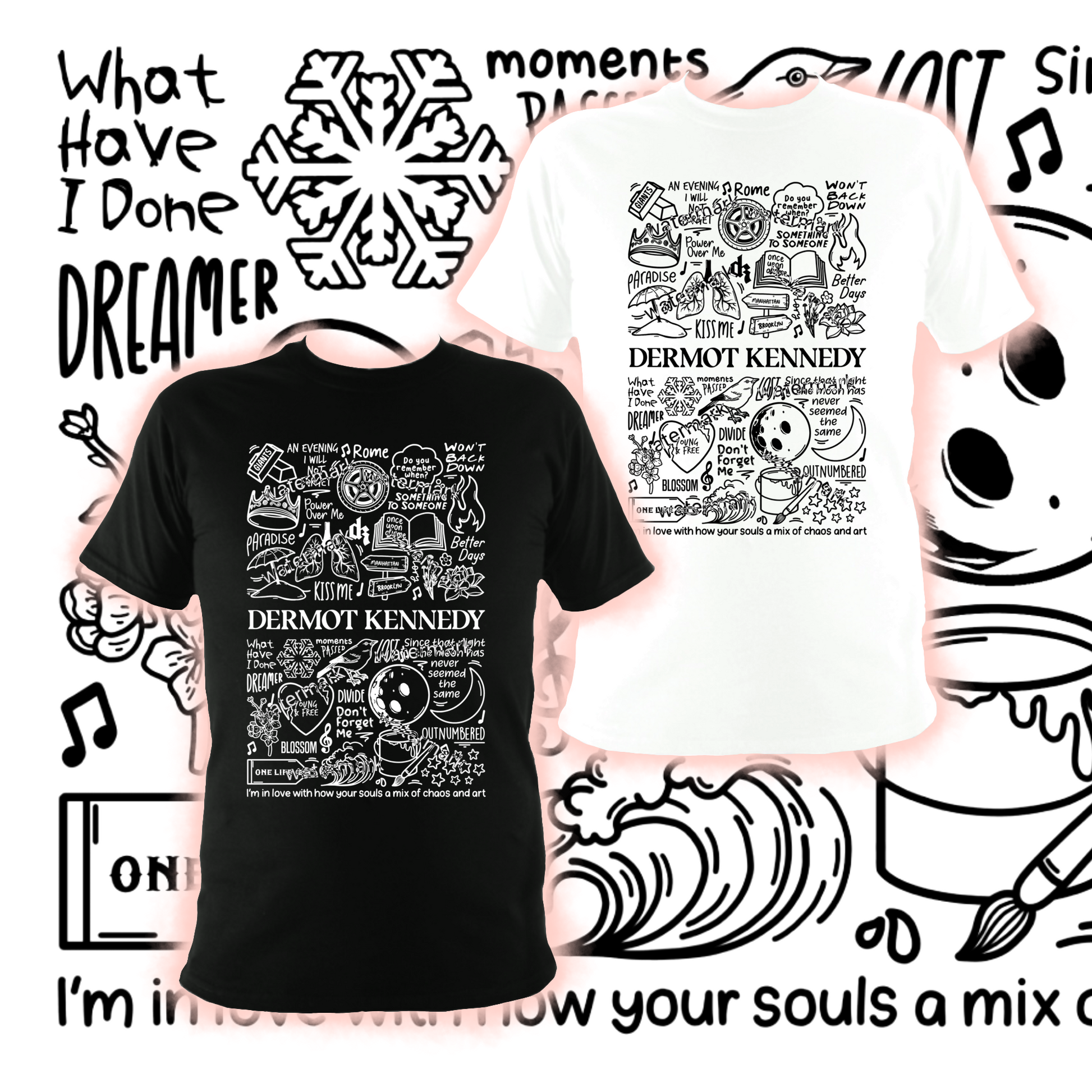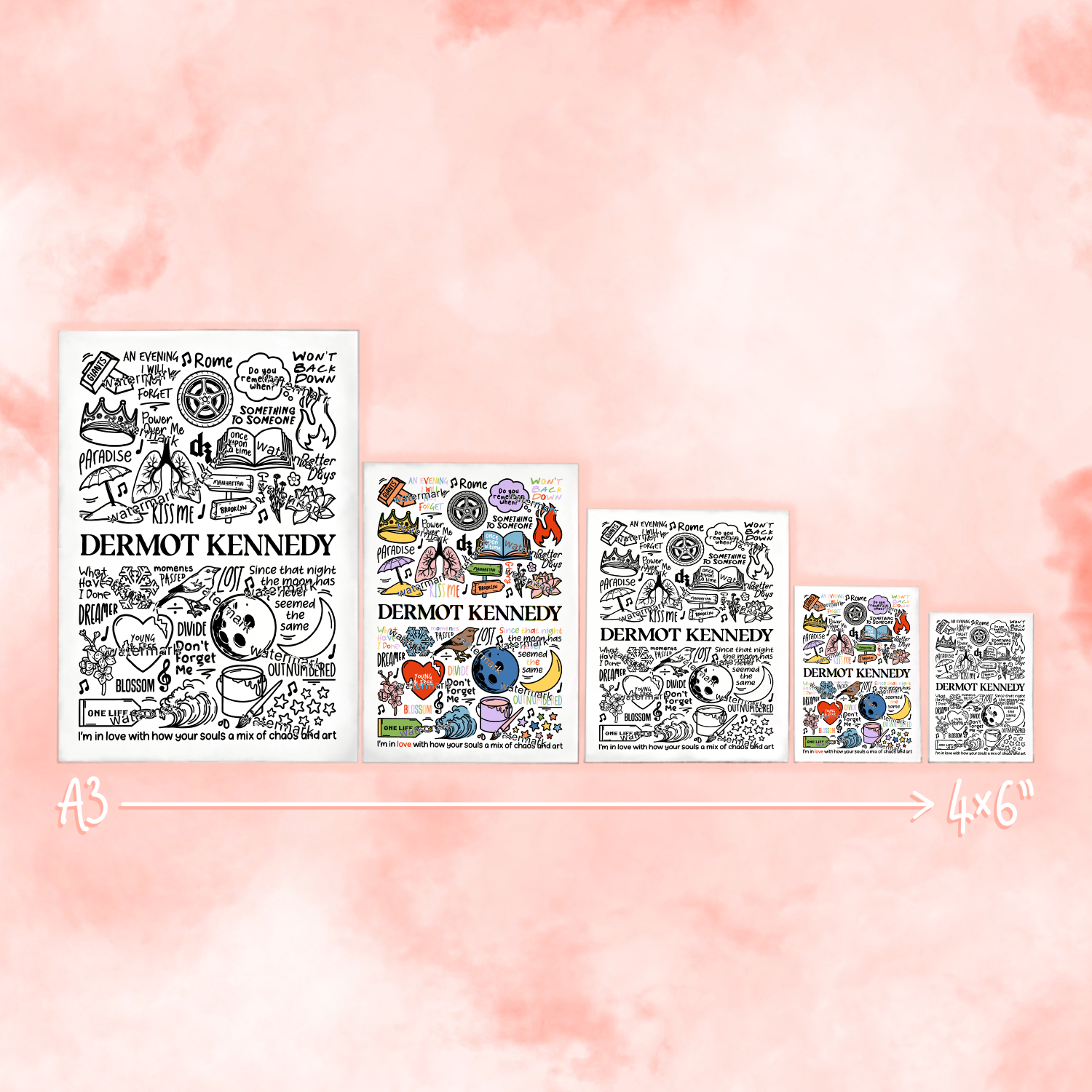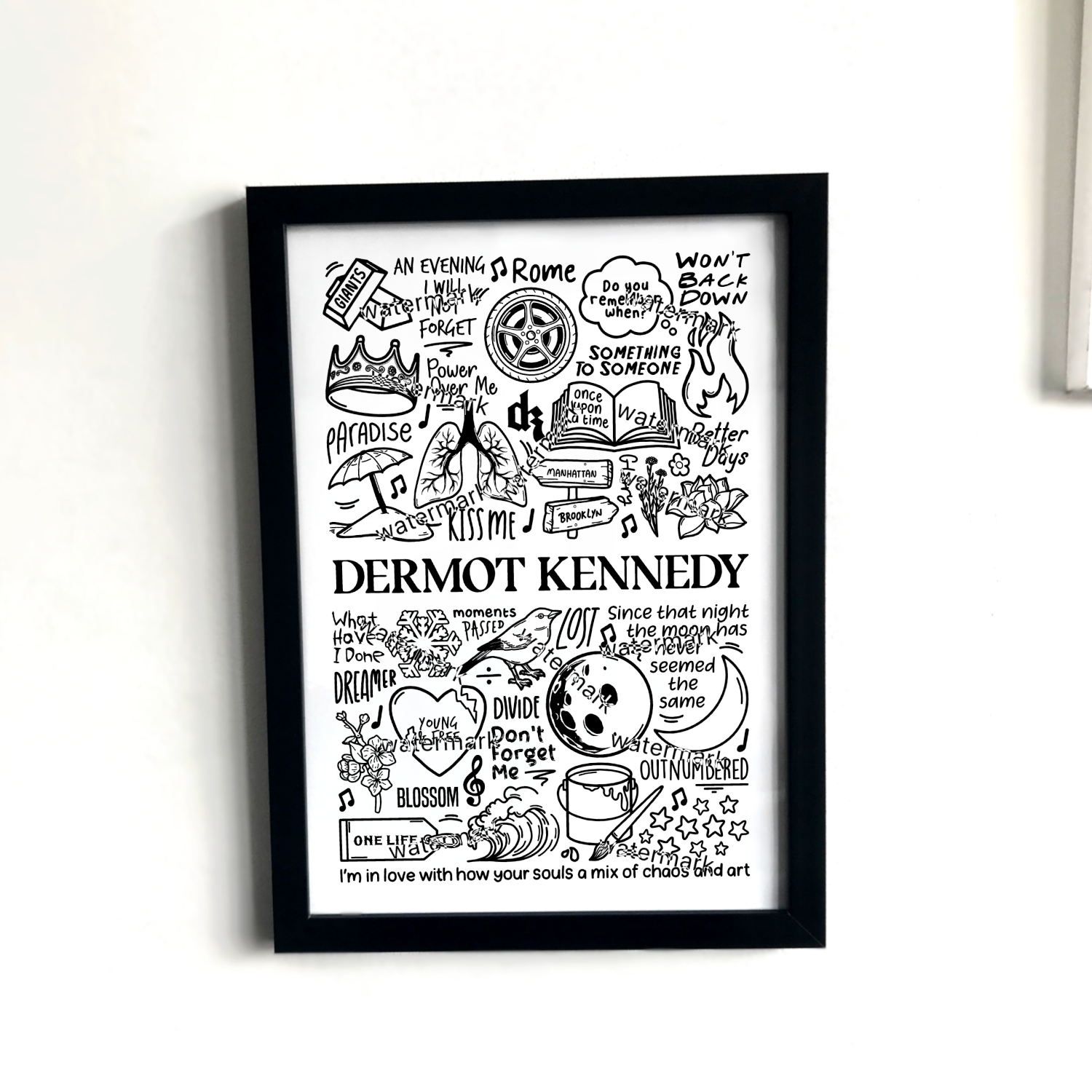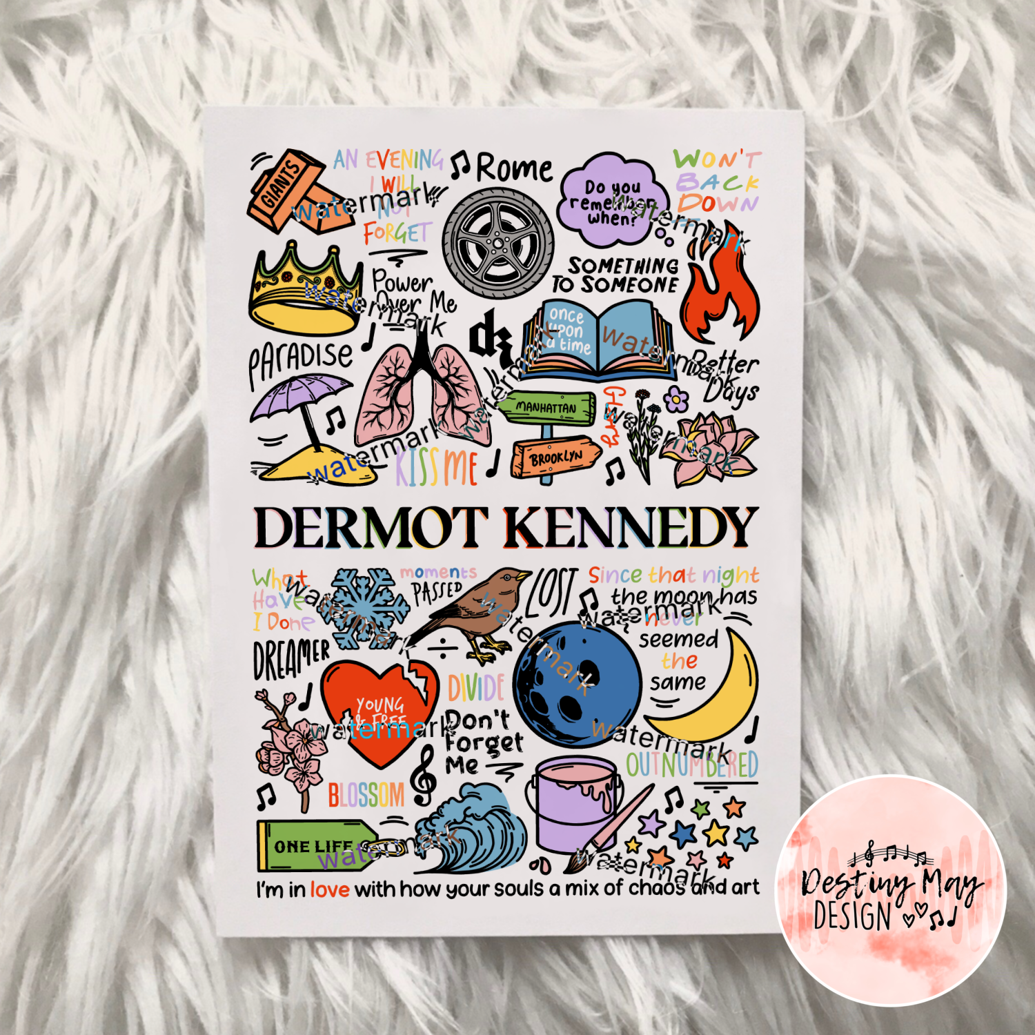 🎶 Affiche de Dermot Kennedy qui comprend des images et des paroles de chansons de ses albums.