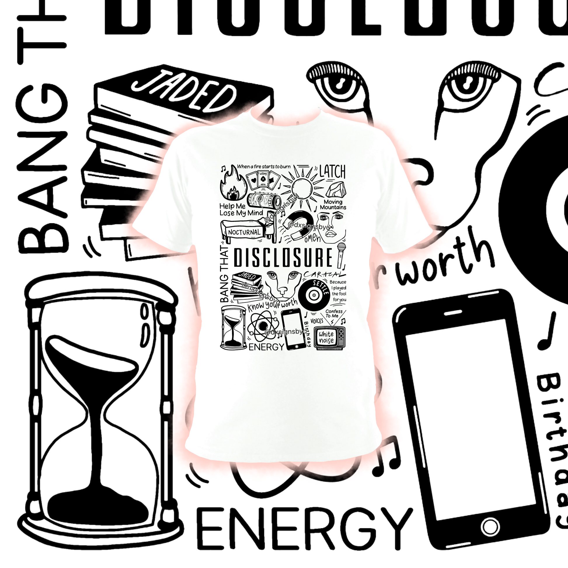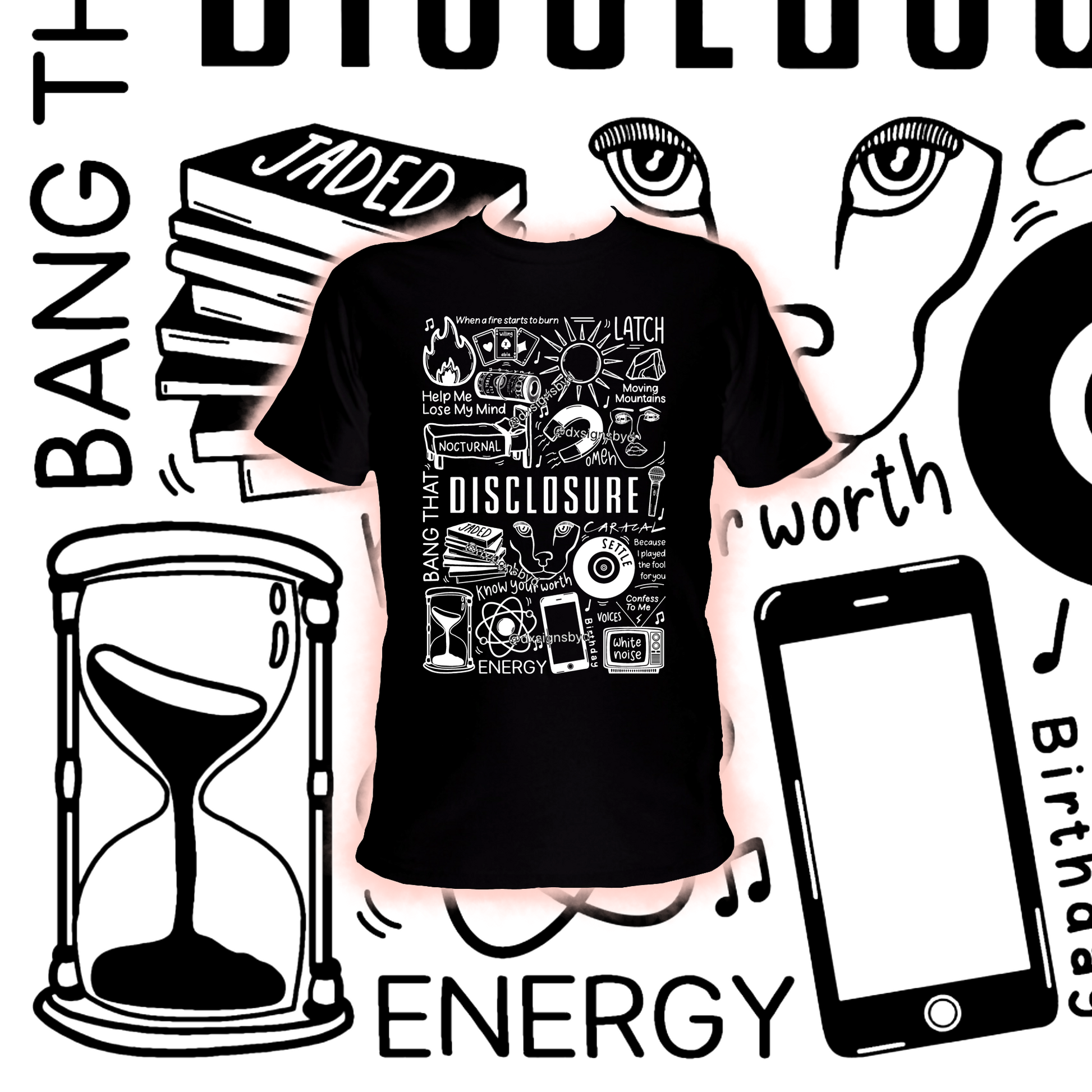 T-shirt Disclosure unisexe en coton imprimé professionnellement en noir ou blanc.