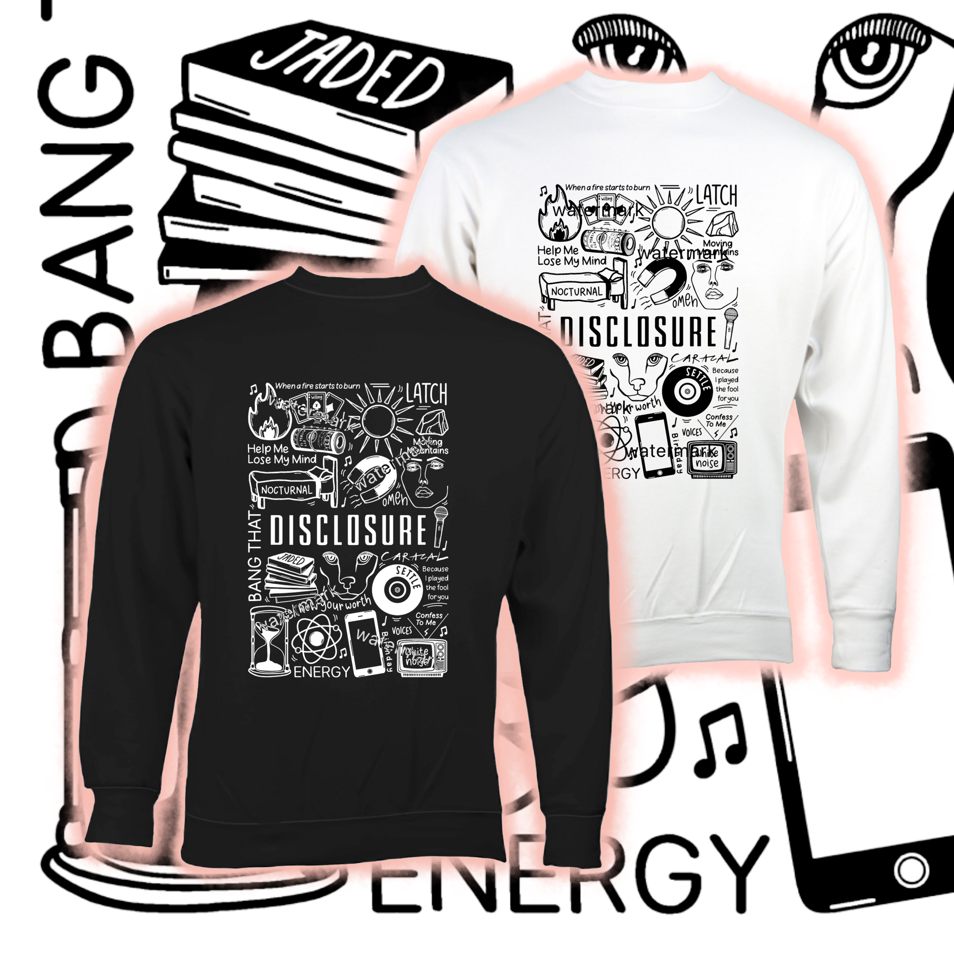 Pull Disclosure unisexe en coton doux en noir ou blanc.