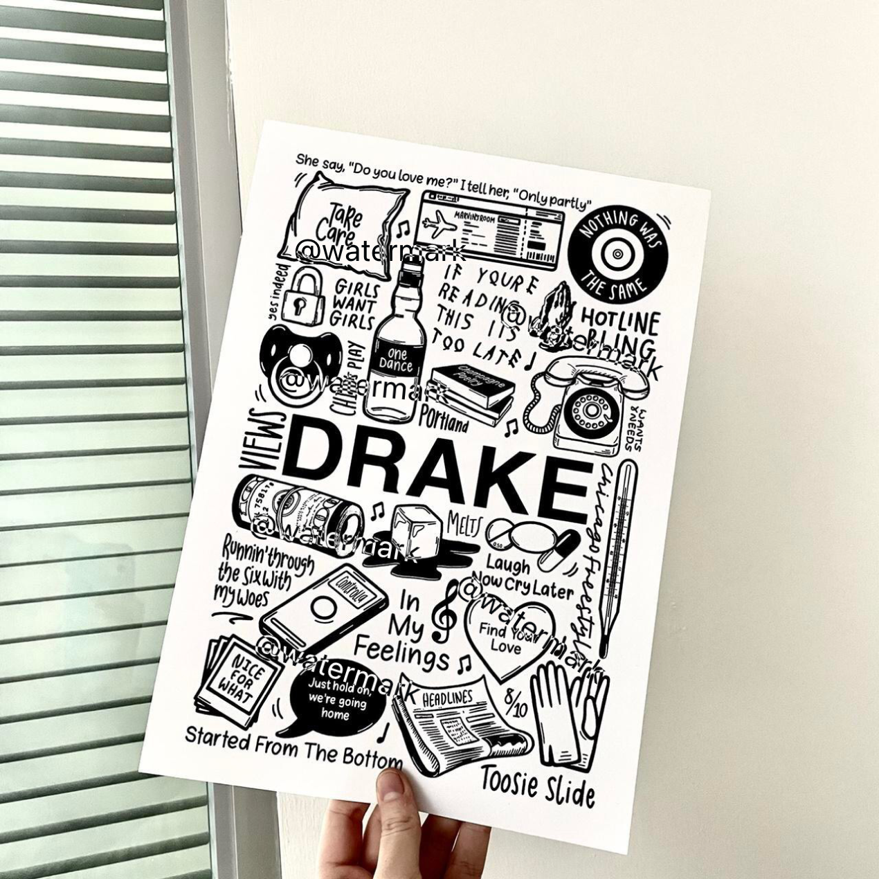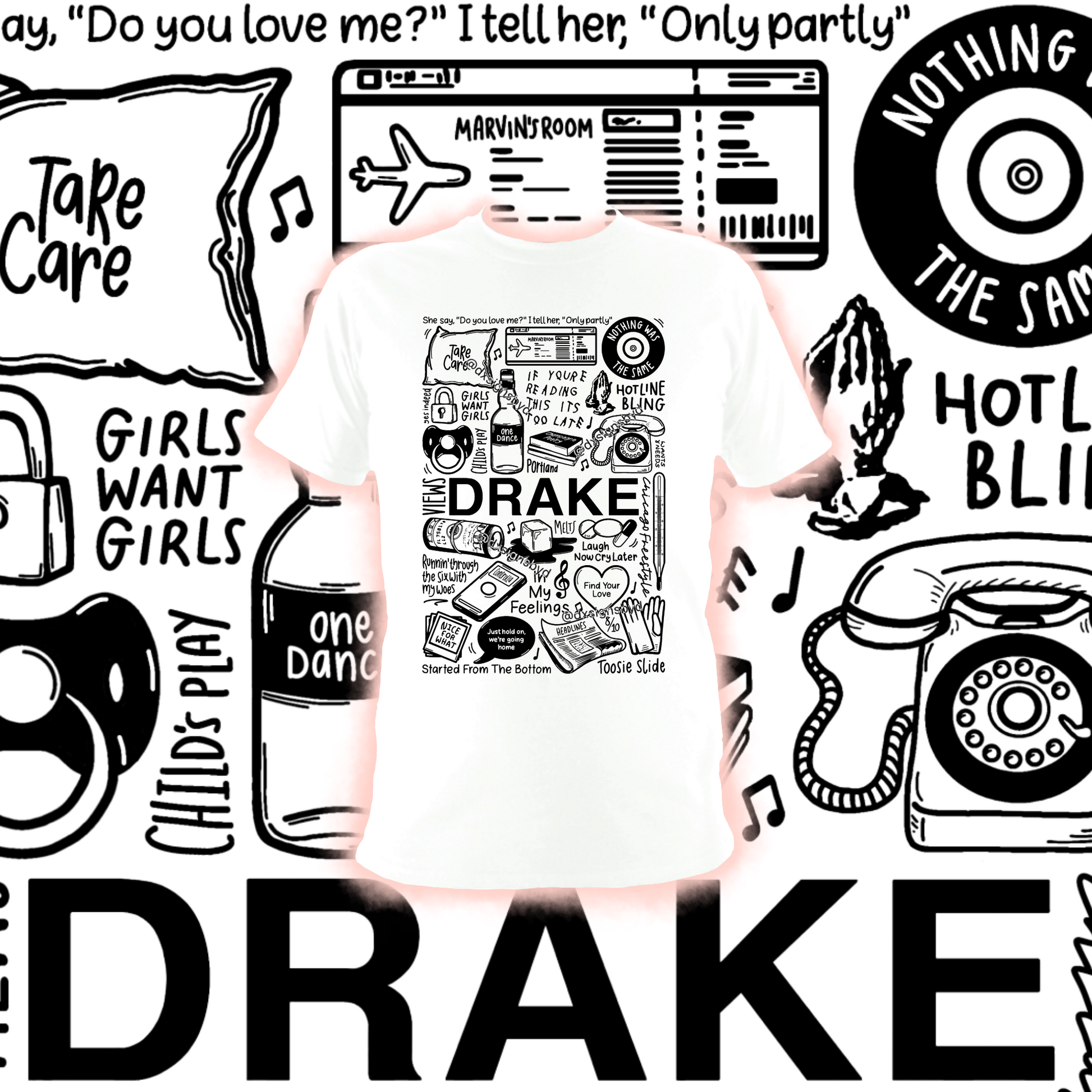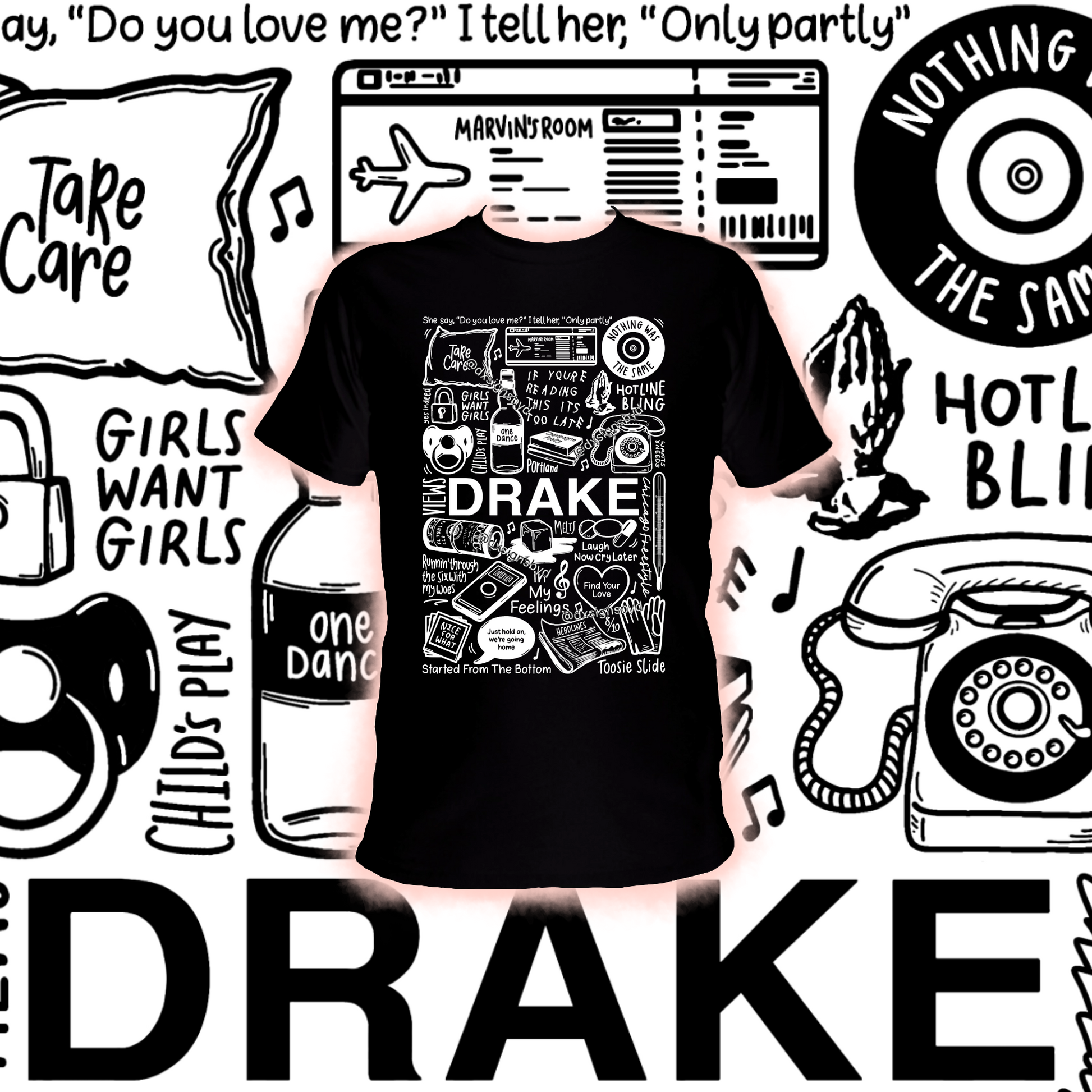 T-shirt Drake unisexe en coton imprimé professionnellement en noir ou blanc.