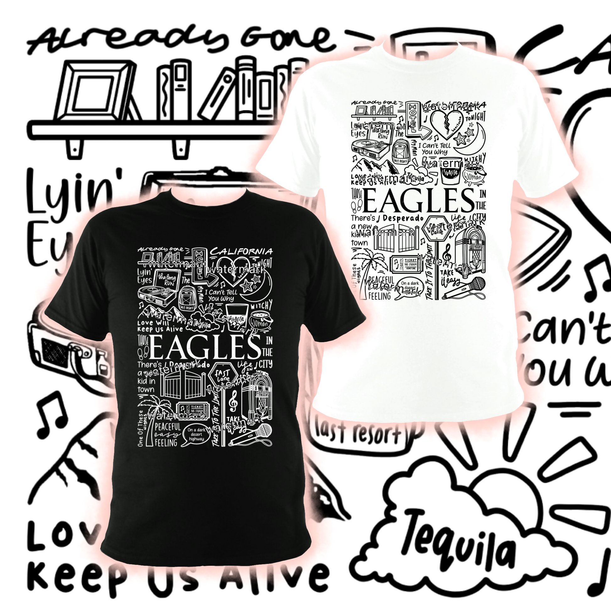 T-shirt unisexe Eagles en coton imprimé professionnellement en noir ou blanc.