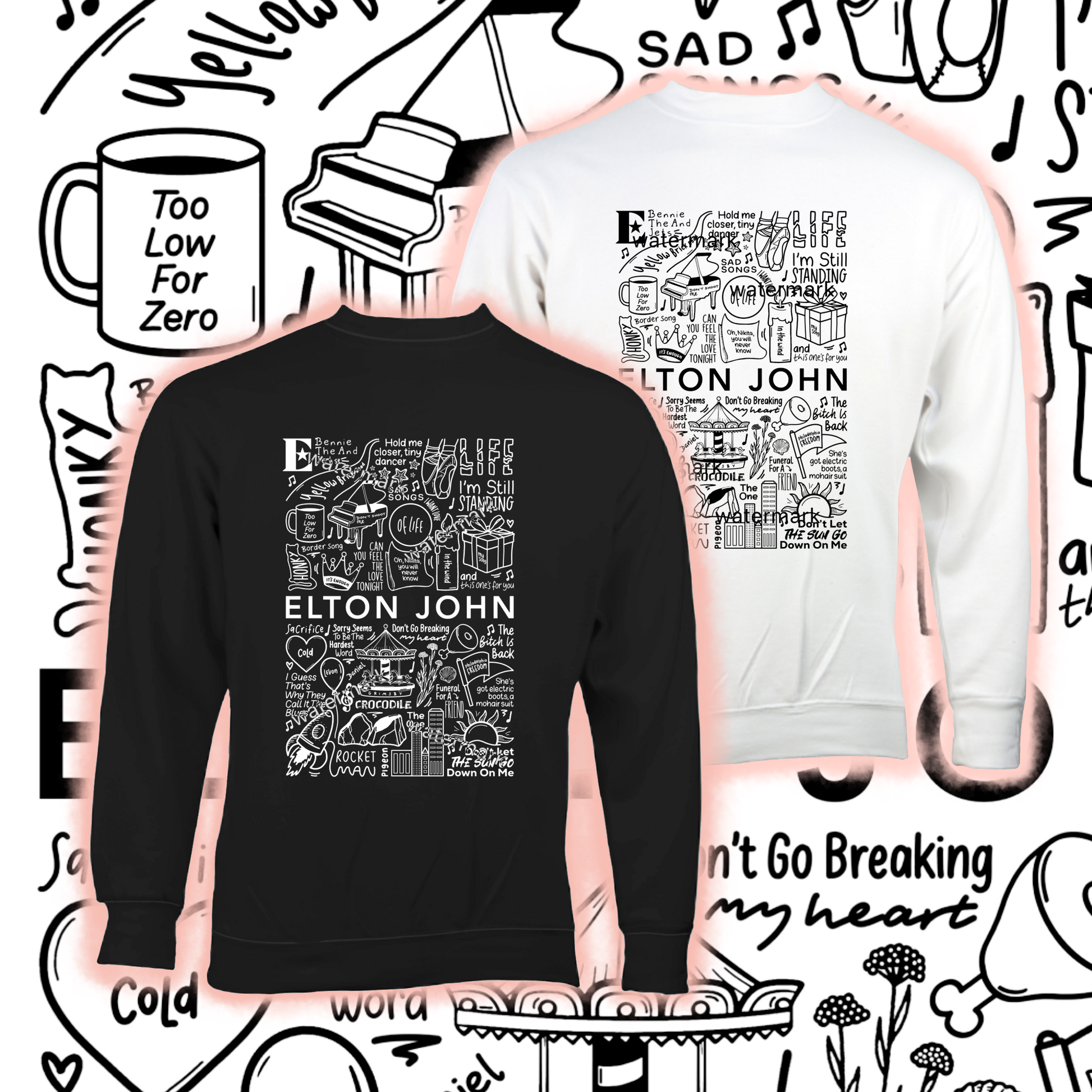 Pull unisexe Elton John en coton doux noir ou blanc.