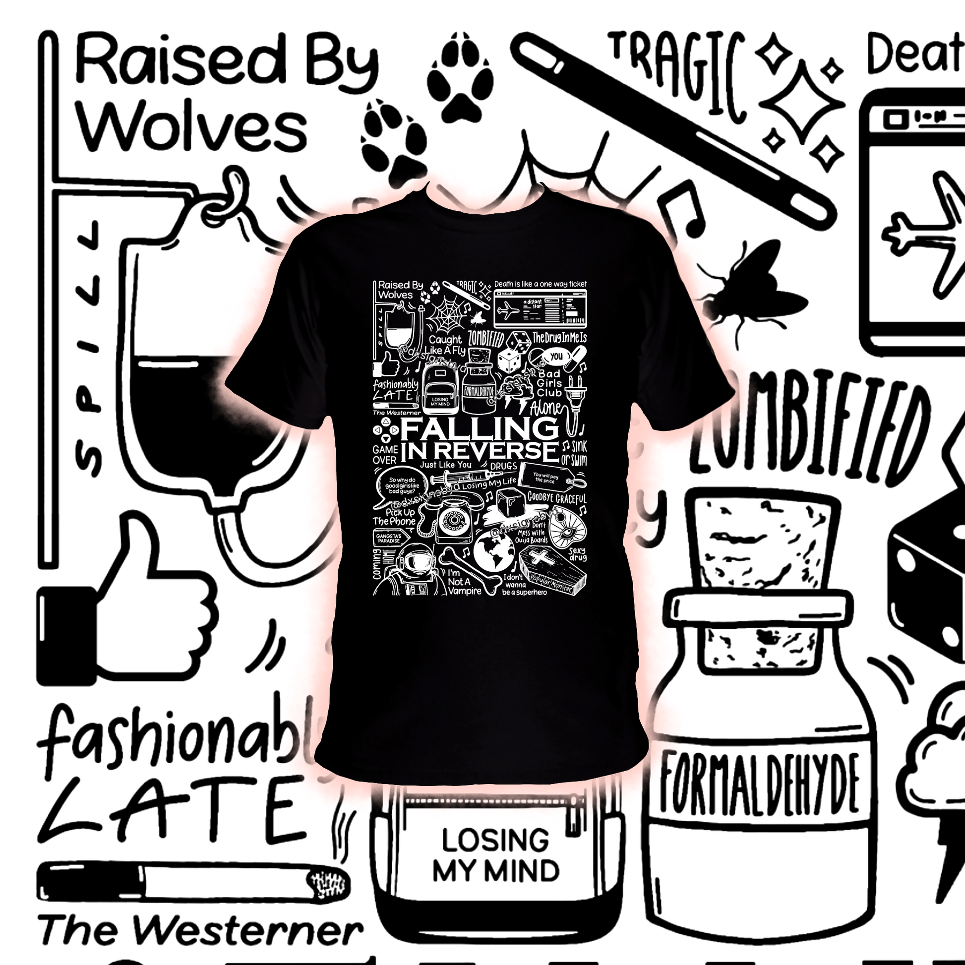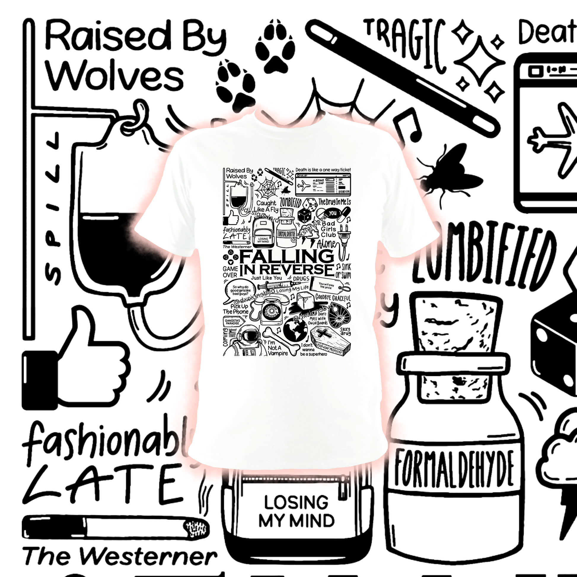 T-shirt unisexe en coton imprimé professionnellement Falling In Reverse en noir ou blanc.
