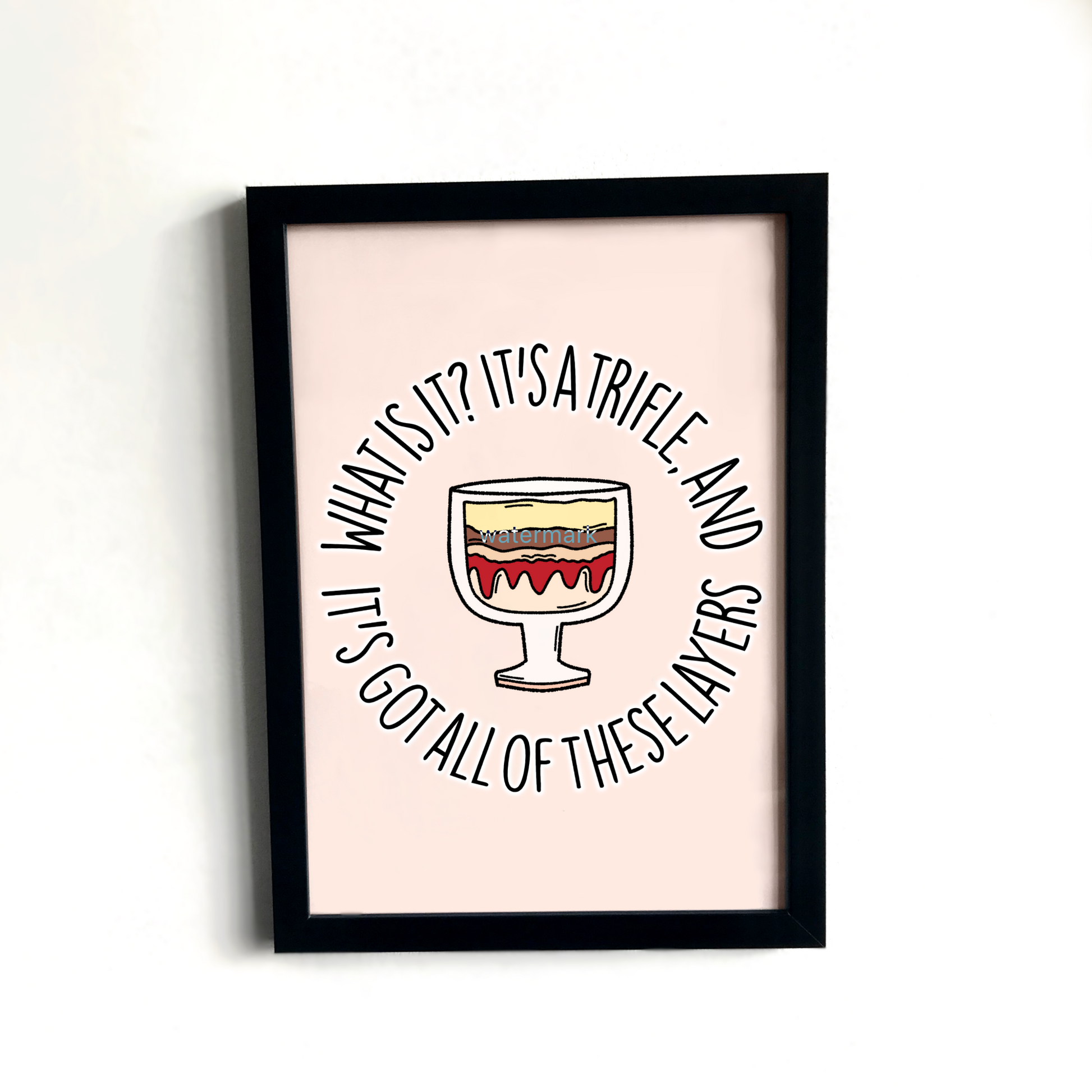 🎂Citation d'amis « Qu'est-ce que c'est ? » « C'est une bagatelle » « Et il y a toutes ces couches » sur un fond rose saumon.