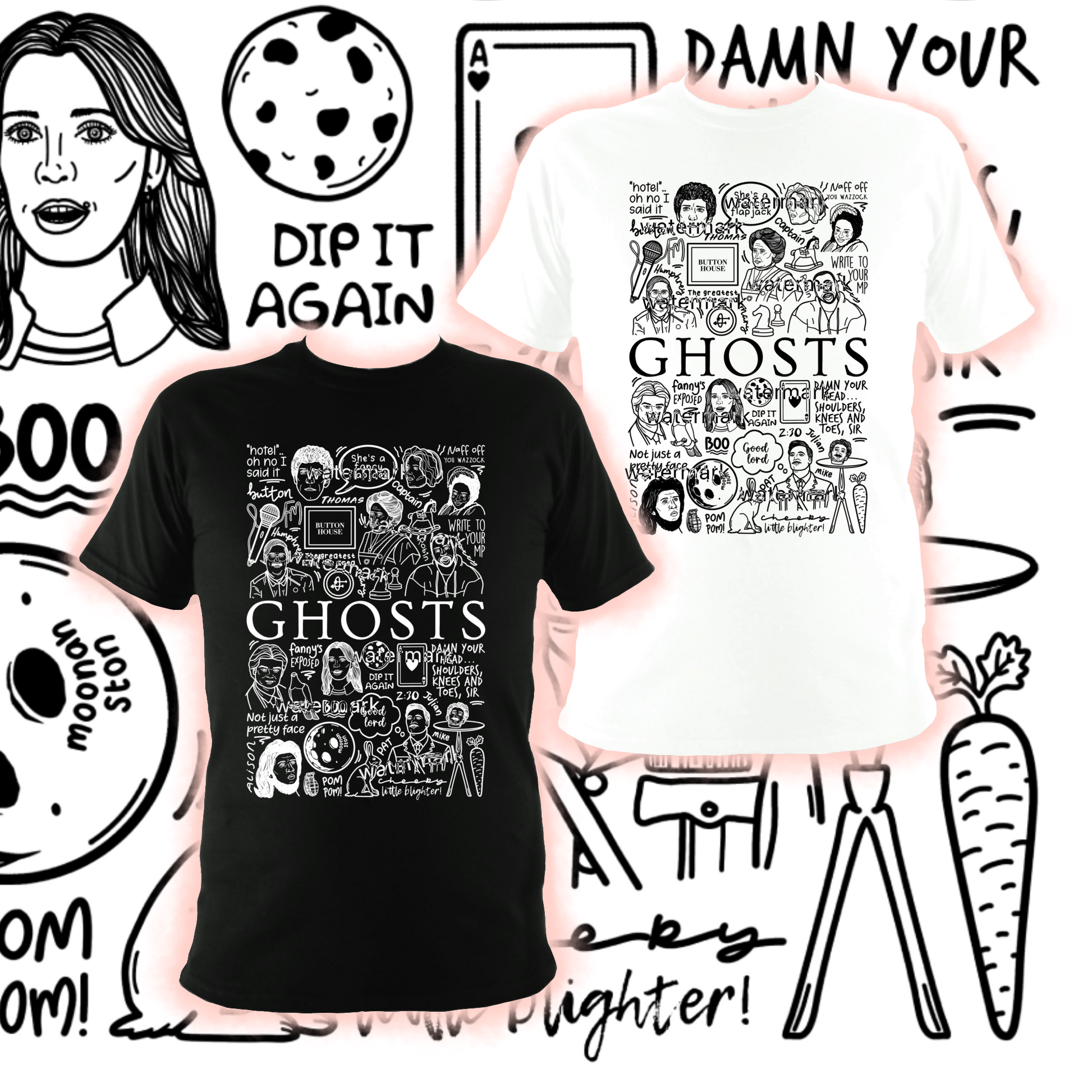 🎬Haut unisexe Ghosts en coton imprimé professionnellement en noir ou blanc.