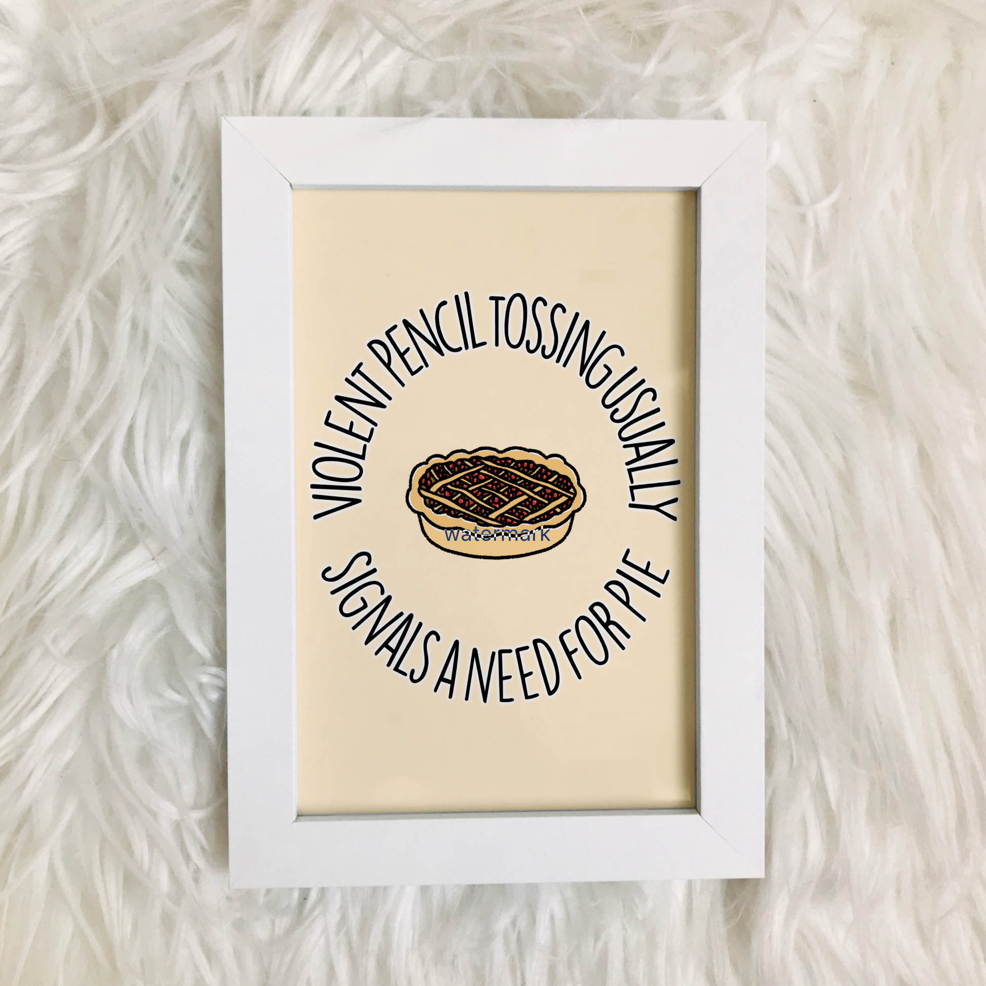 🥧Citation de Luke de Gilmore Girls « Le lancer violent d'un crayon signale généralement un besoin de tarte » sur fond jaune.