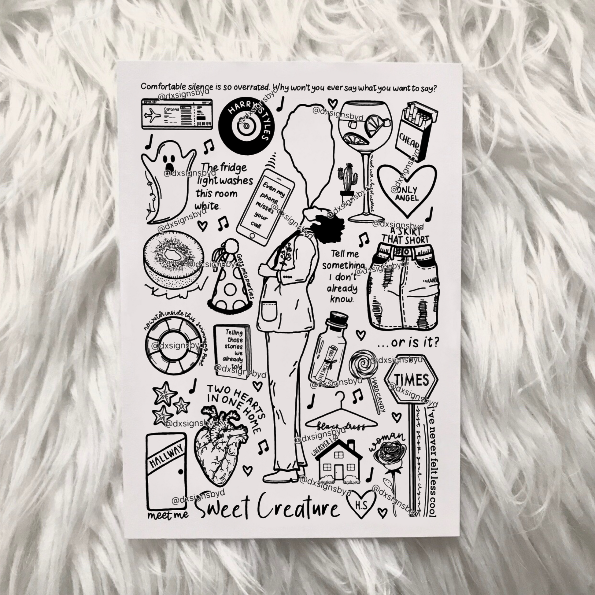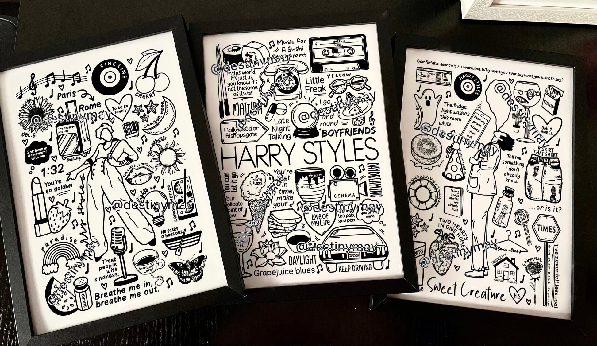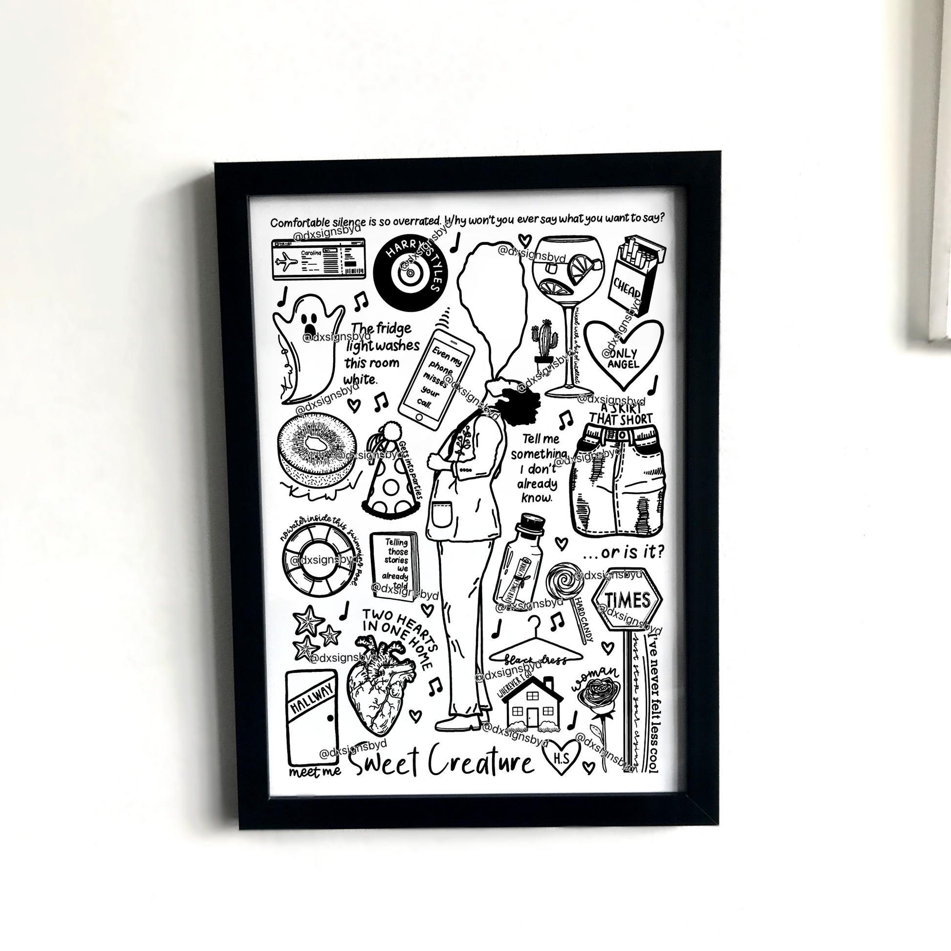 🎶Affiche de Harry Styles comprenant des images et des paroles de chansons de son album éponyme Harry Styles.