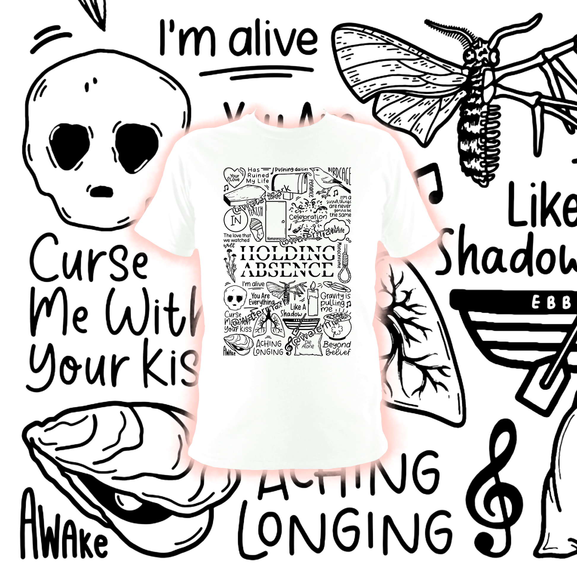 🎶 T-shirt unisexe Holding Absence en coton imprimé professionnellement en noir ou blanc.