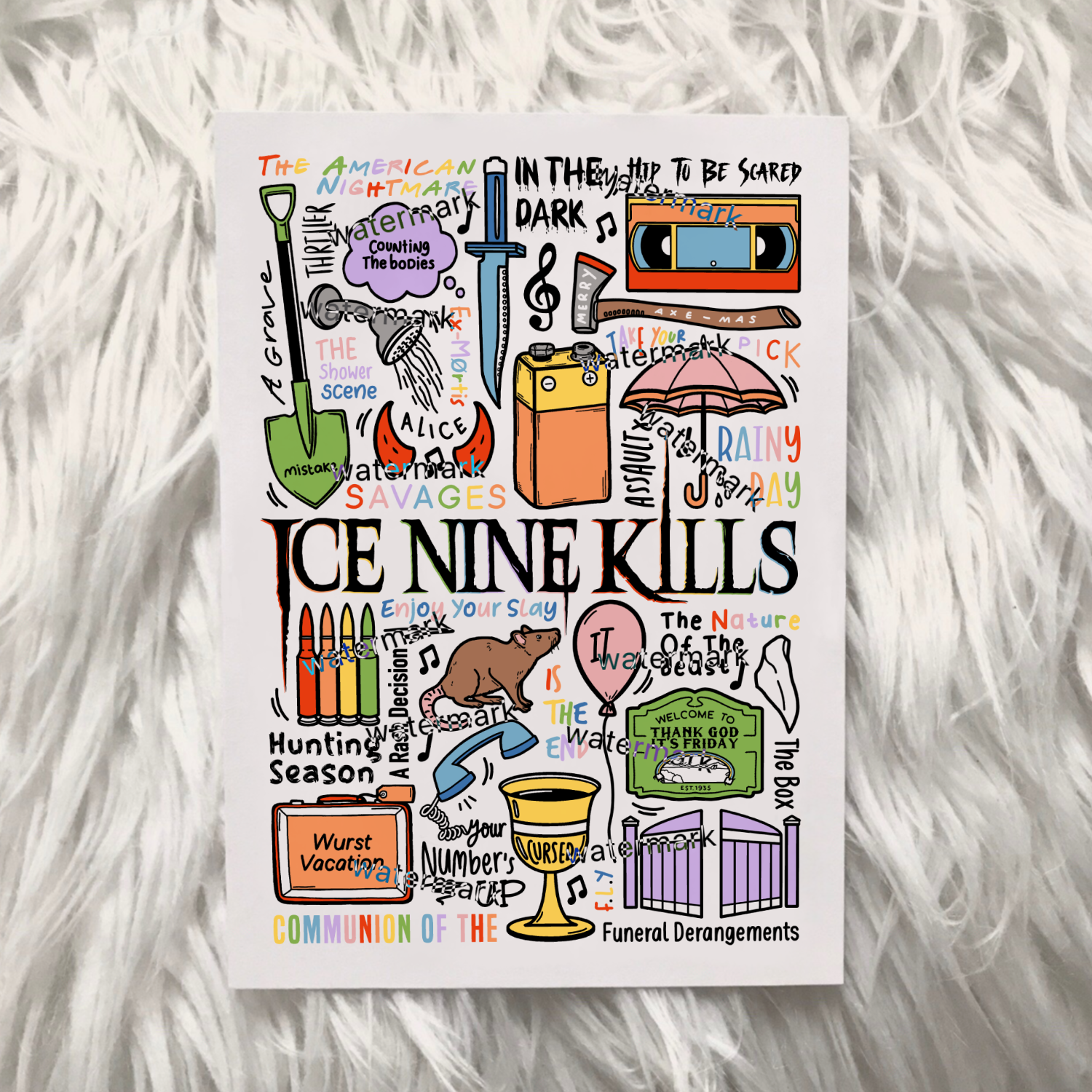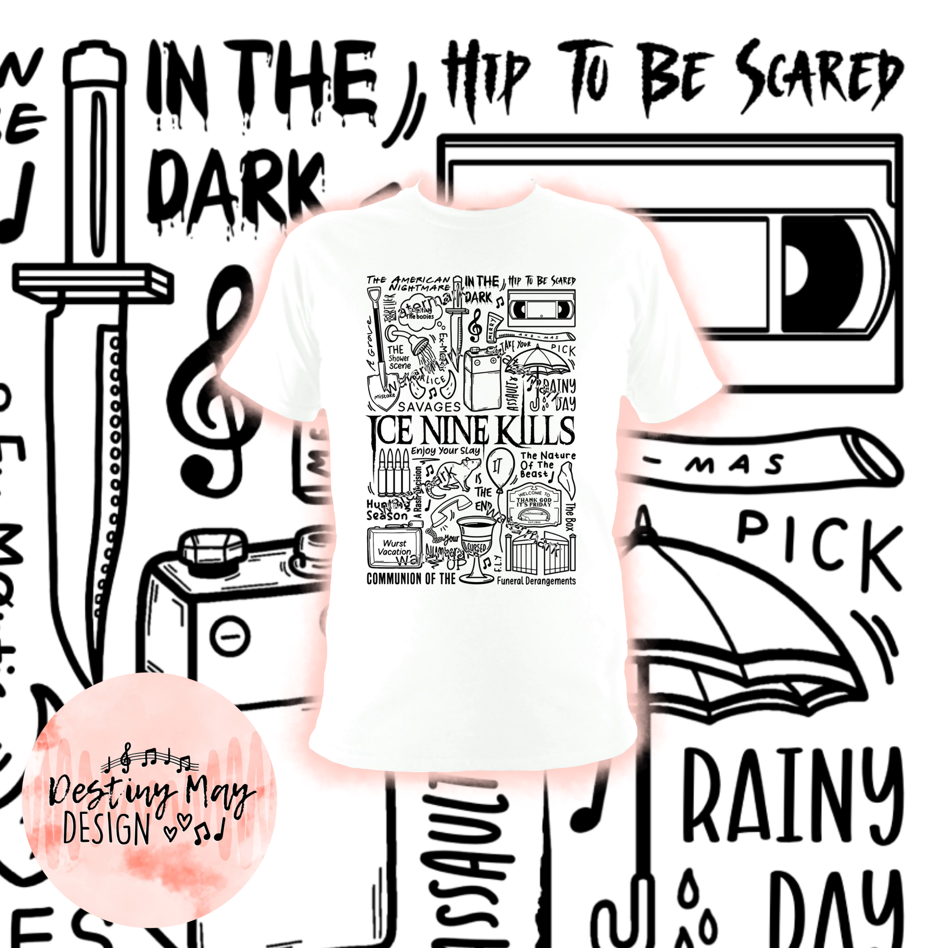 T-shirt unisexe Ice Nine Kills en coton imprimé professionnellement en noir ou blanc.