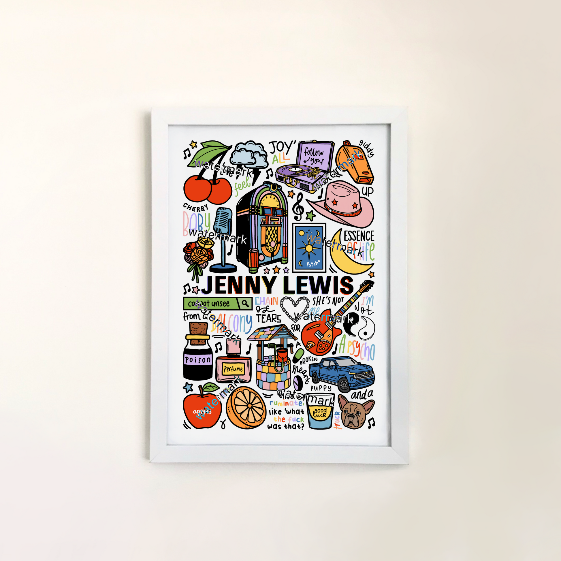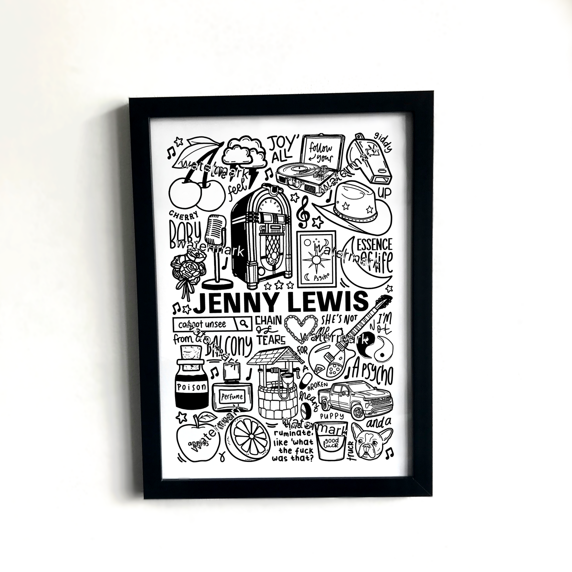 🎶Jenny Lewis wall art including images, lyrics, and song titles from her album.