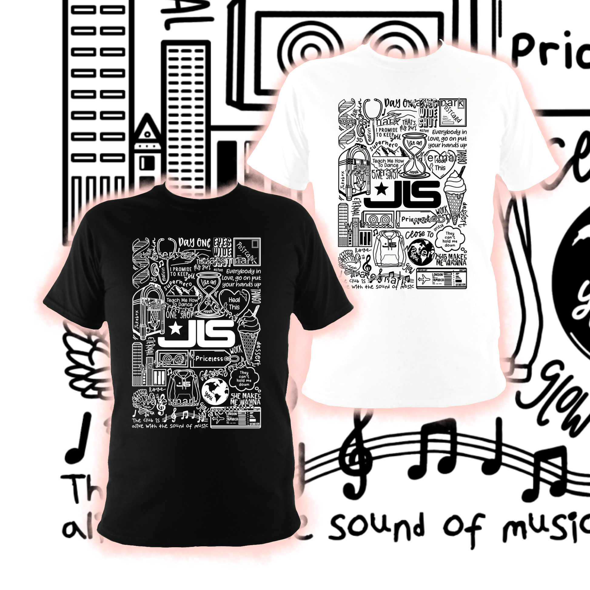 🎶Professionally printed cotton unisex JLS top in black or white.