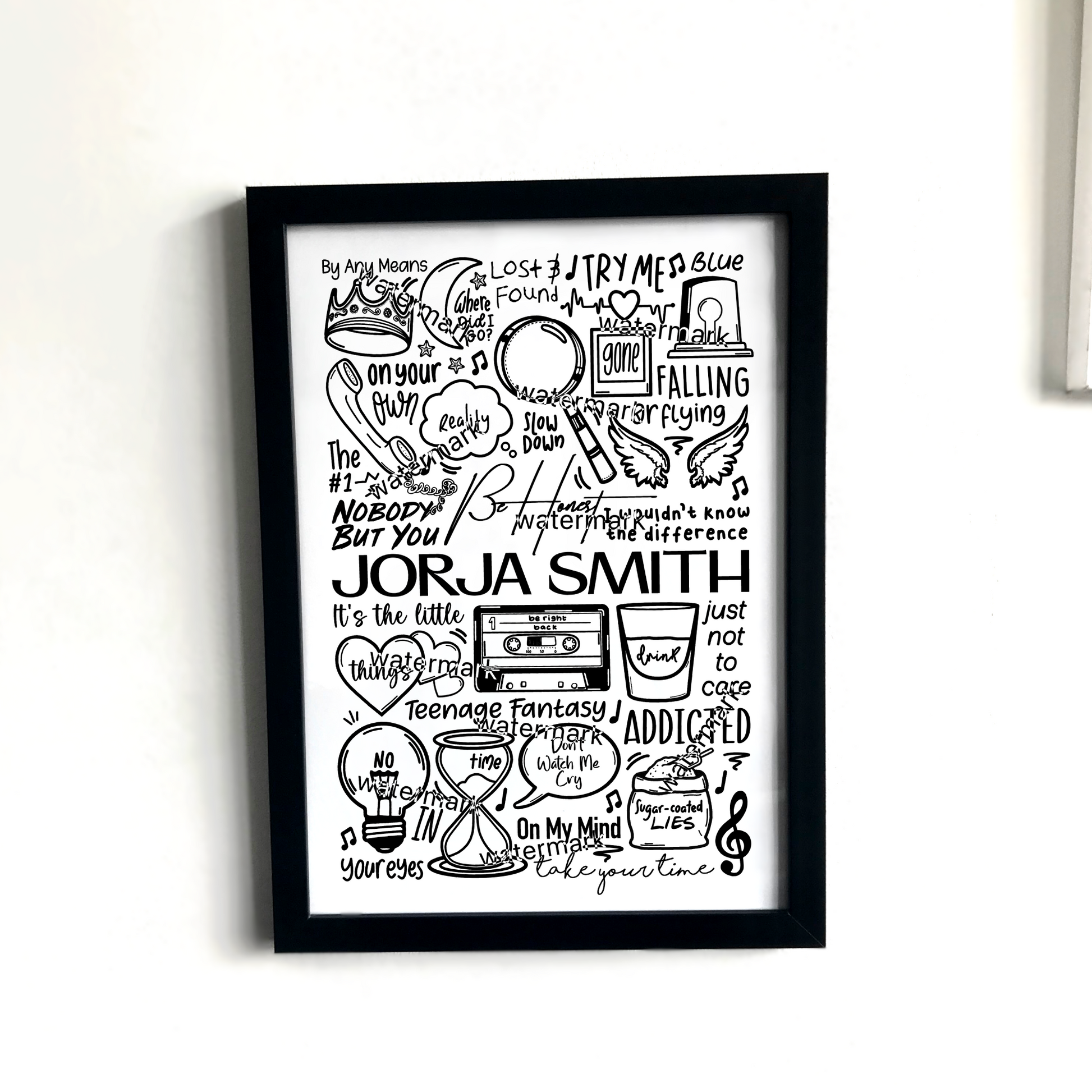 🎶 Art mural de Jorja Smith comprenant des images, des paroles et des titres de chansons de ses albums.