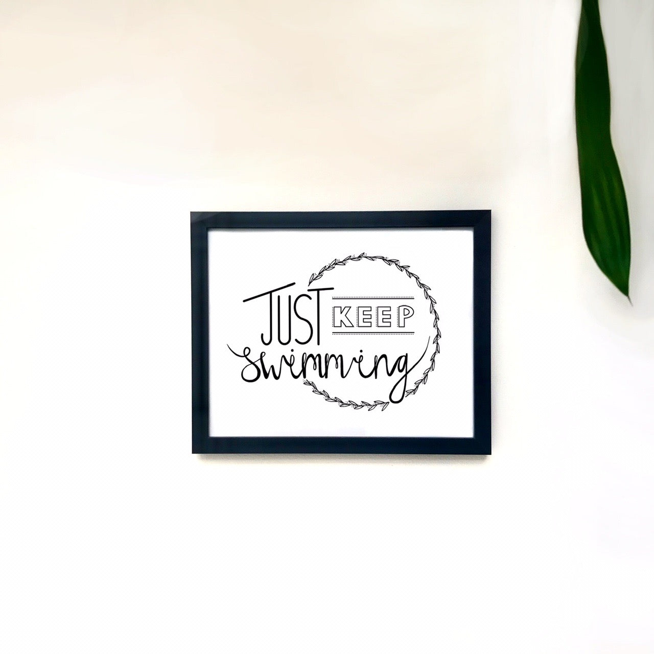 🖤Citation de Nemo Dory « Continue à nager » entourée d'une jolie couronne illustrée.