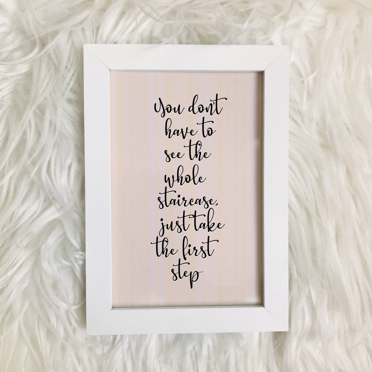 🩷Affiche positive avec la citation « Vous n'avez pas besoin de voir tout l'escalier, faites juste le premier pas ».
