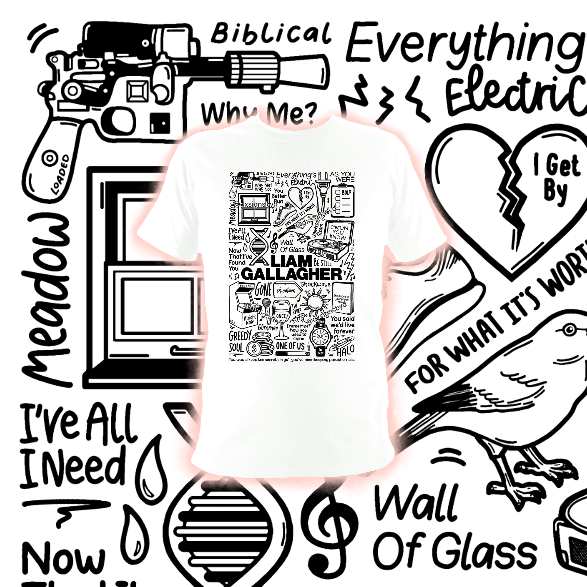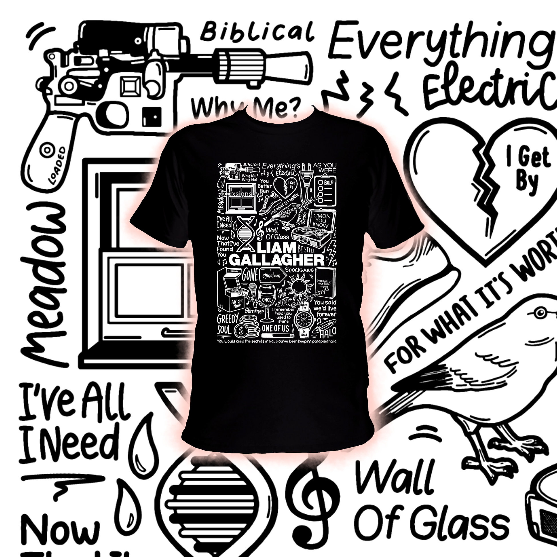 T-shirt unisexe en coton imprimé professionnellement Liam Gallagher en noir ou blanc.