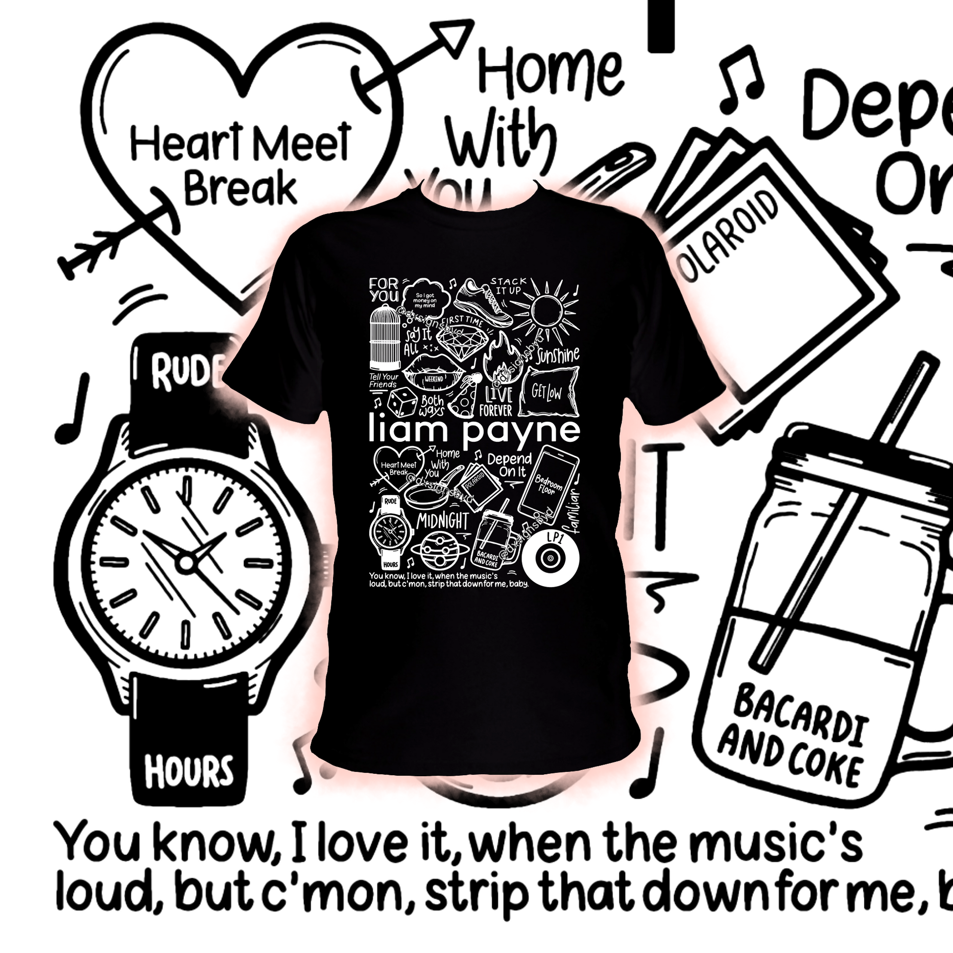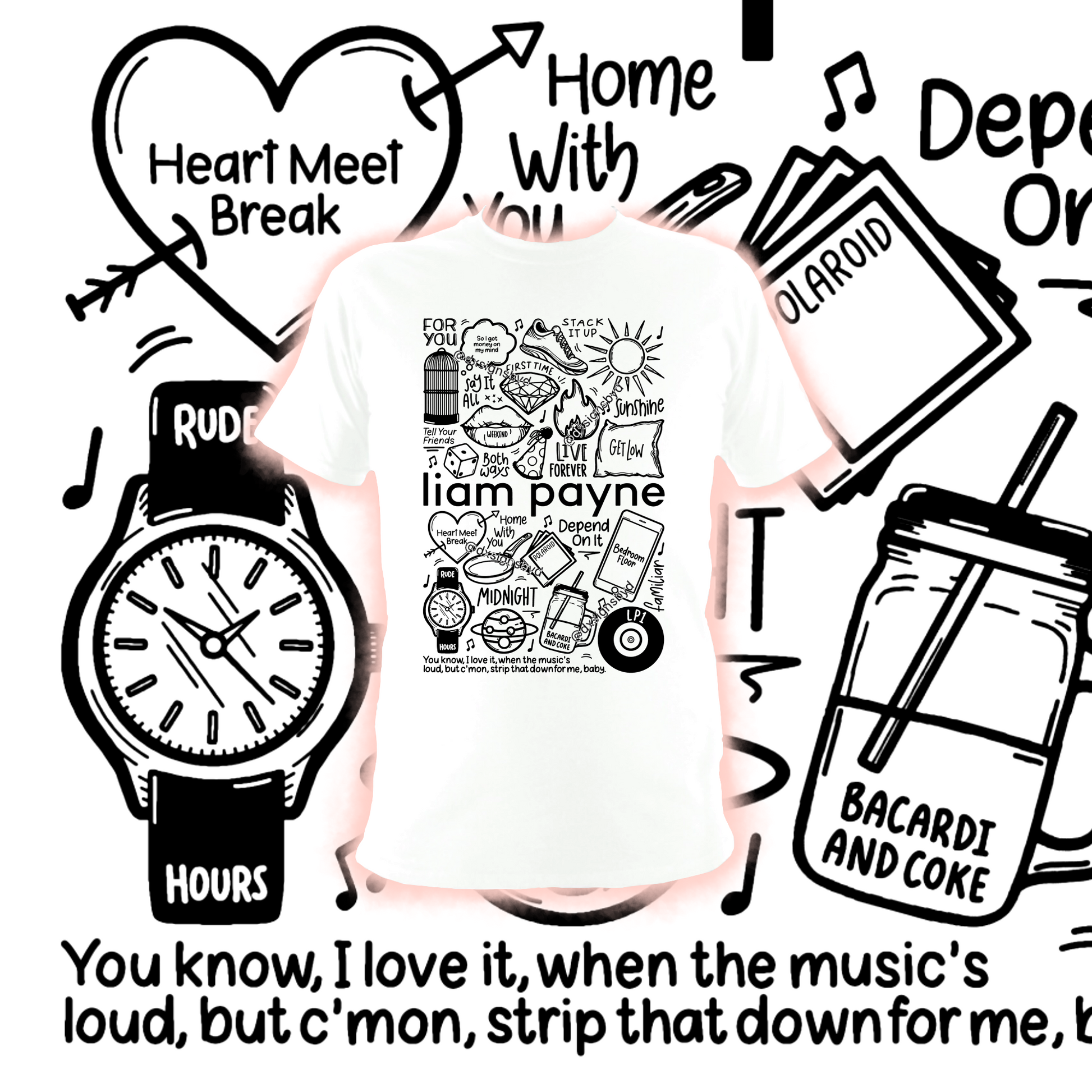 T-shirt unisexe en coton imprimé professionnellement Liam Payne en noir ou blanc.