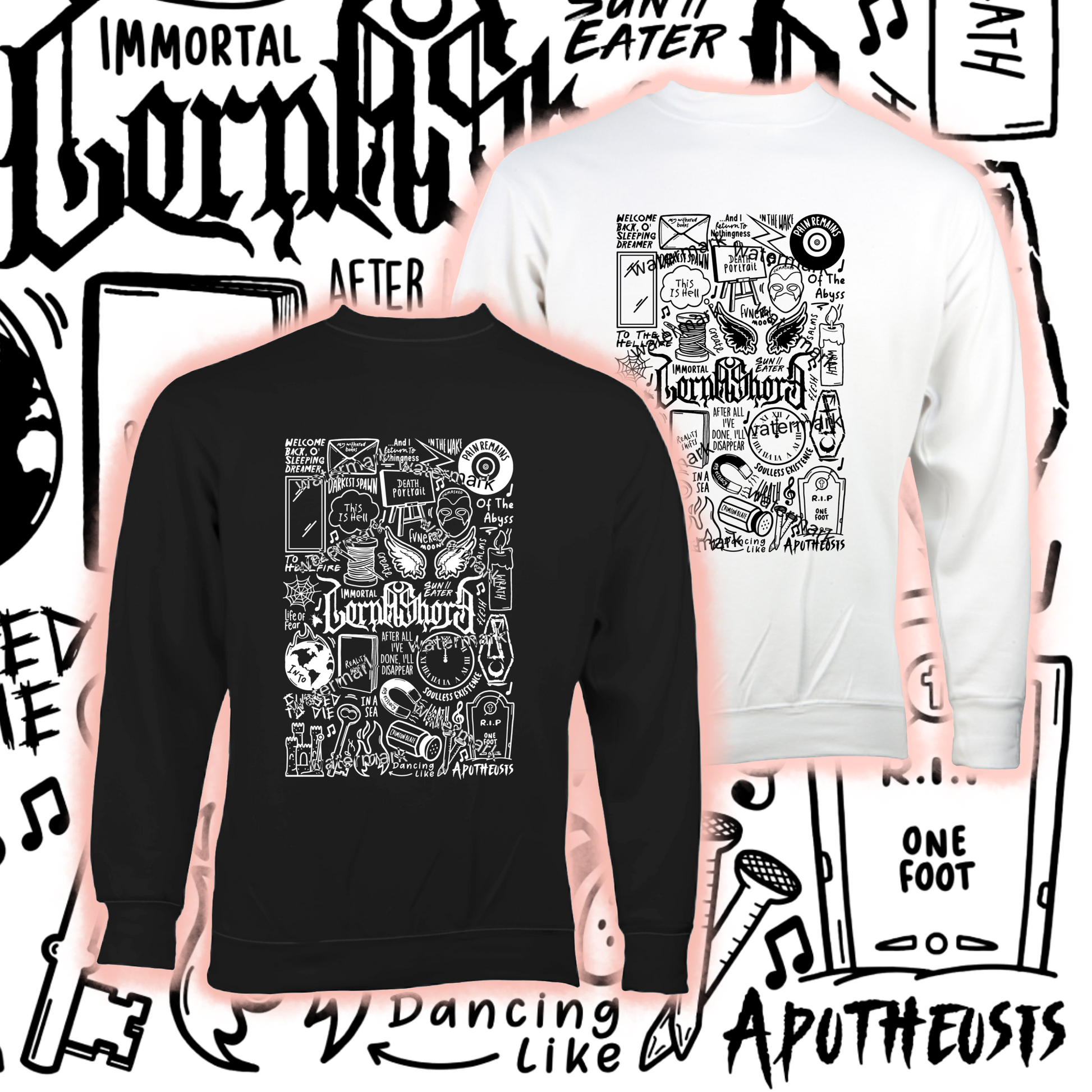 Pull unisexe en coton doux Lorna Shore en noir ou blanc.