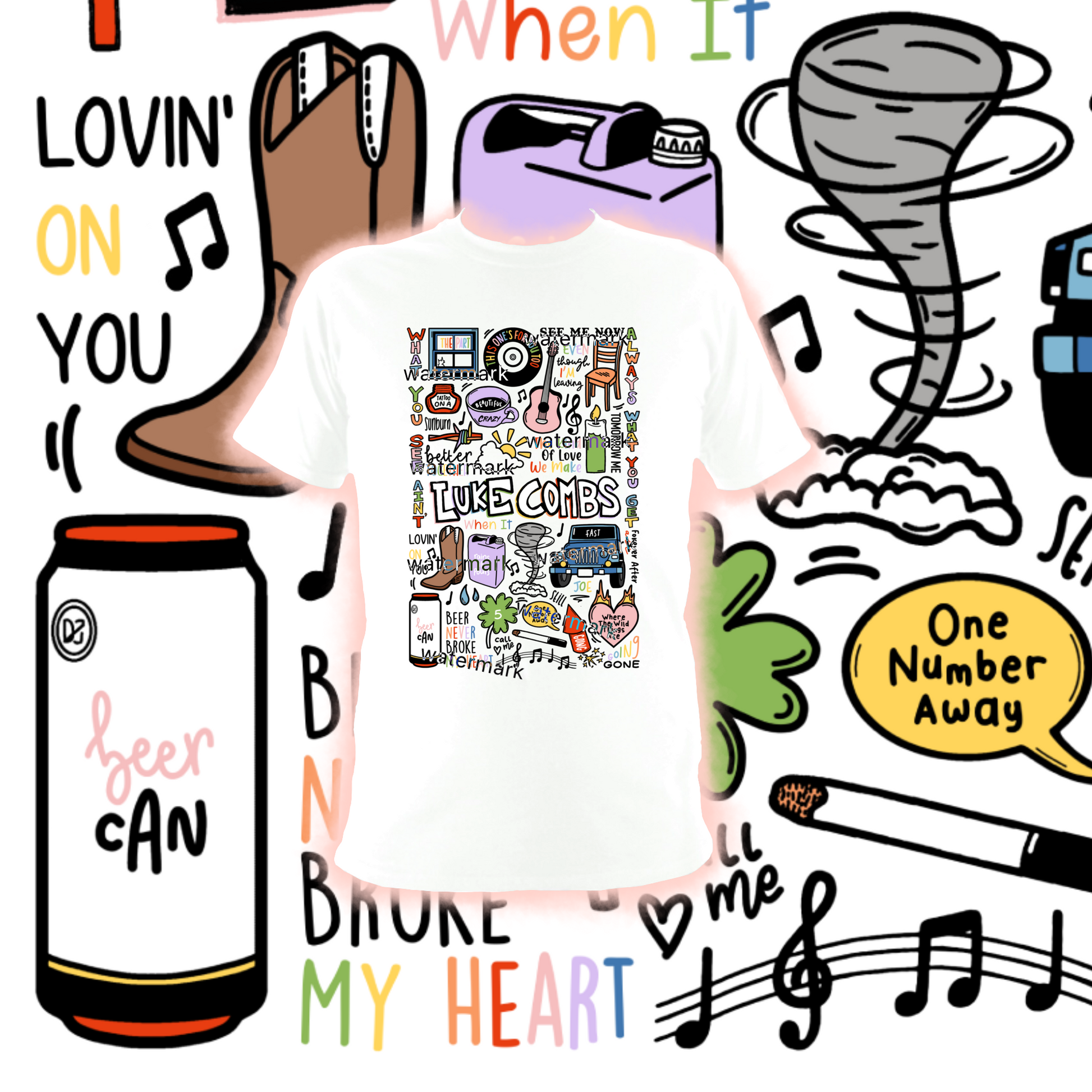 🎶Professionally printed cotton unisex colourful white Luke Combs top.