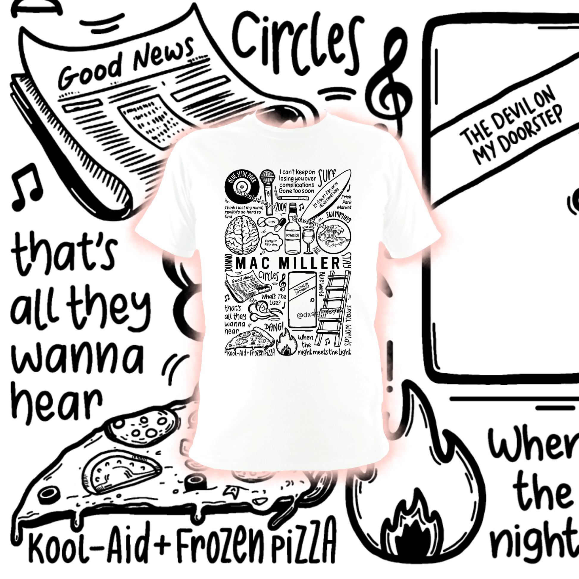 T-shirt unisexe Mac Miller en coton imprimé professionnellement en noir ou blanc.