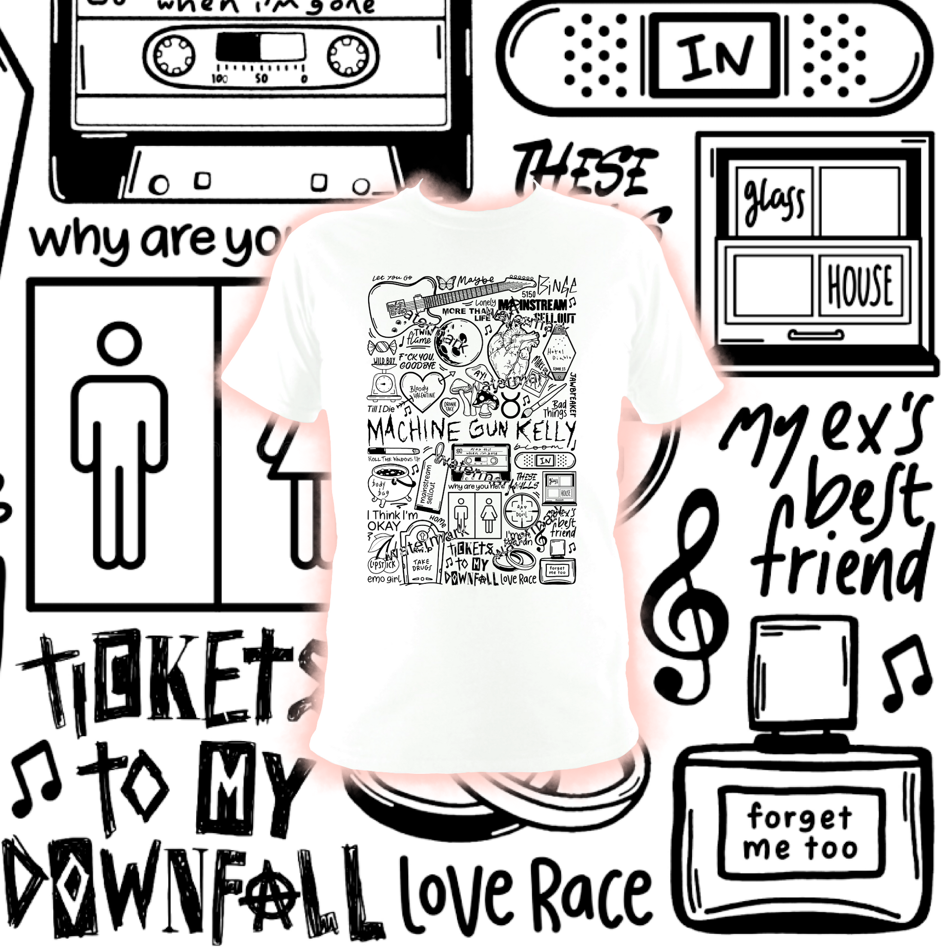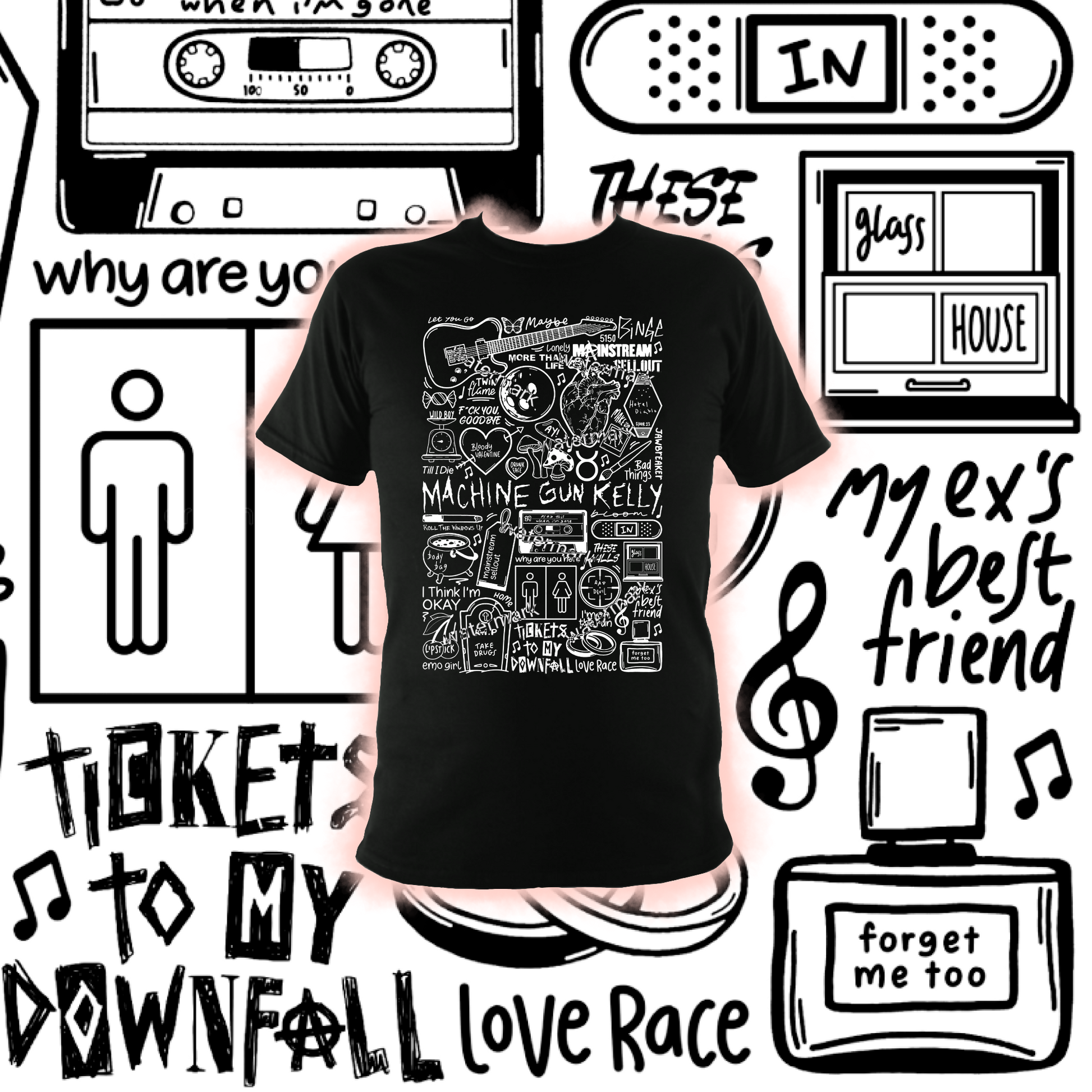 T-shirt unisexe MGK en coton imprimé professionnellement en noir ou blanc.