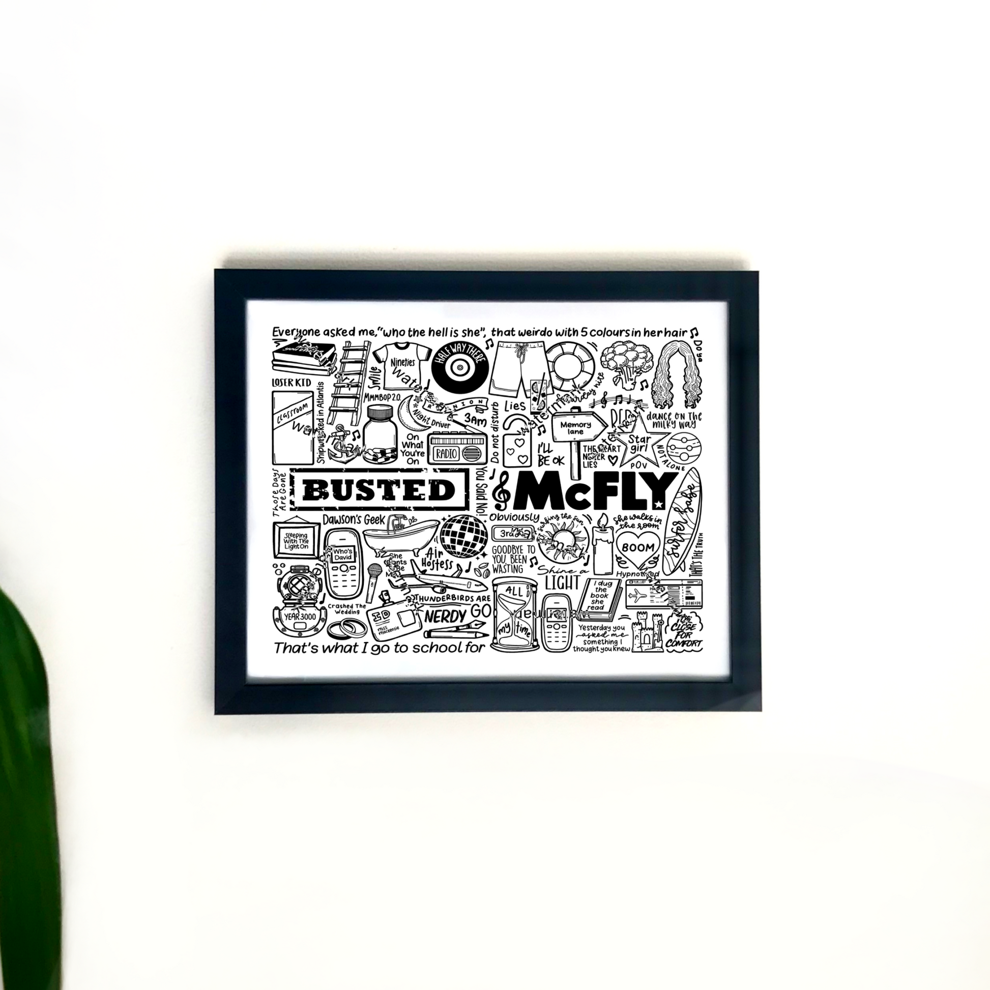 🎶Mcfly poster with images and lyrics of songs from theur albums such as Room On The 3rd Floor, Young Dumb Thrills, Just My Luck, and Wonderland.