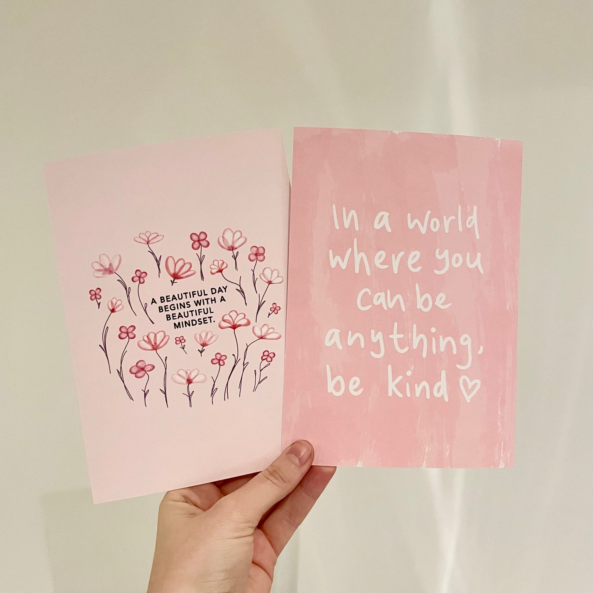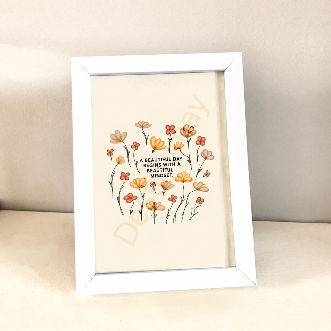🌼Affiche de citation motivante qui comprend la citation « Une belle journée commence par un bel état d'esprit » entourée de fleurs sur un fond jaune pâle ou rose, selon ce qui vous plaît !