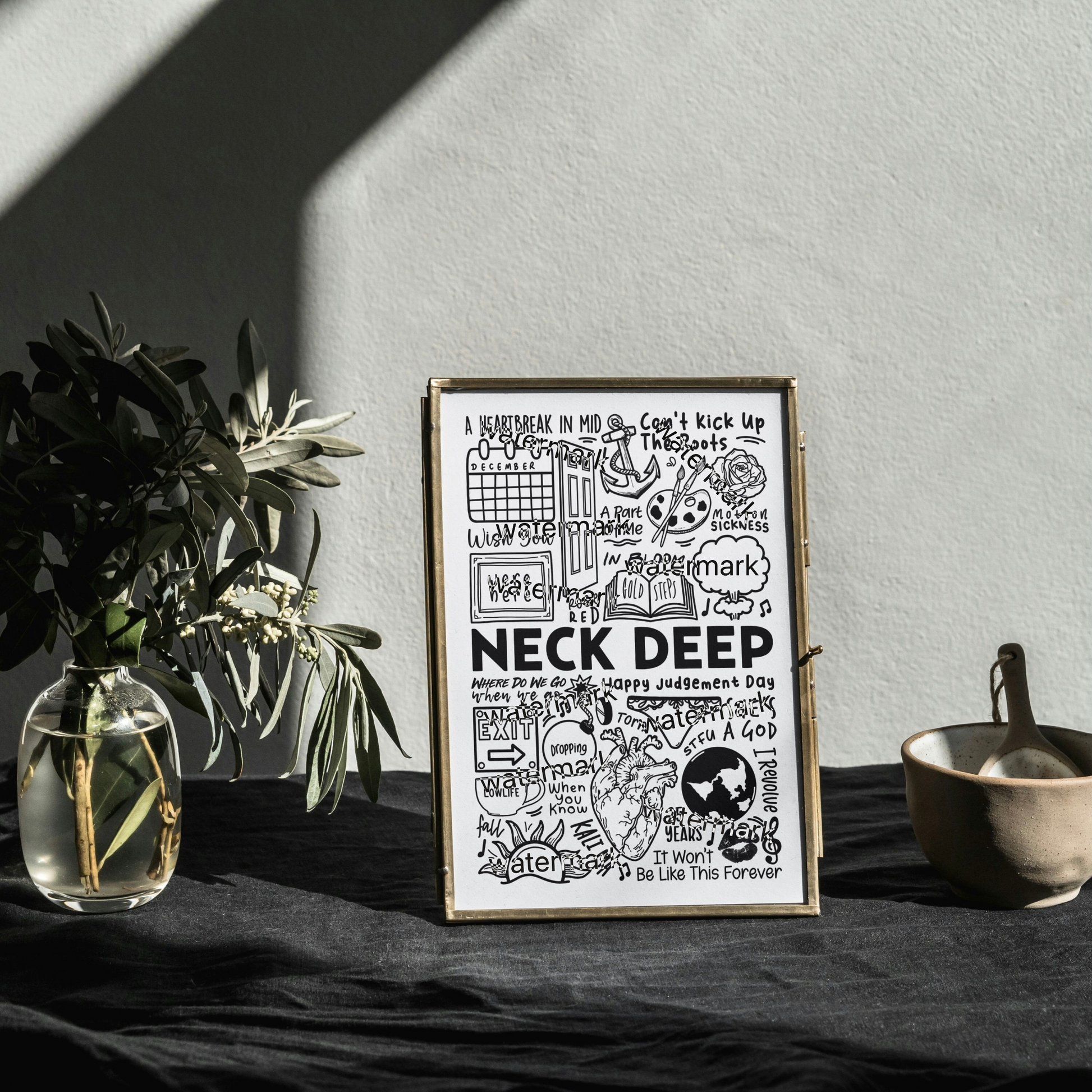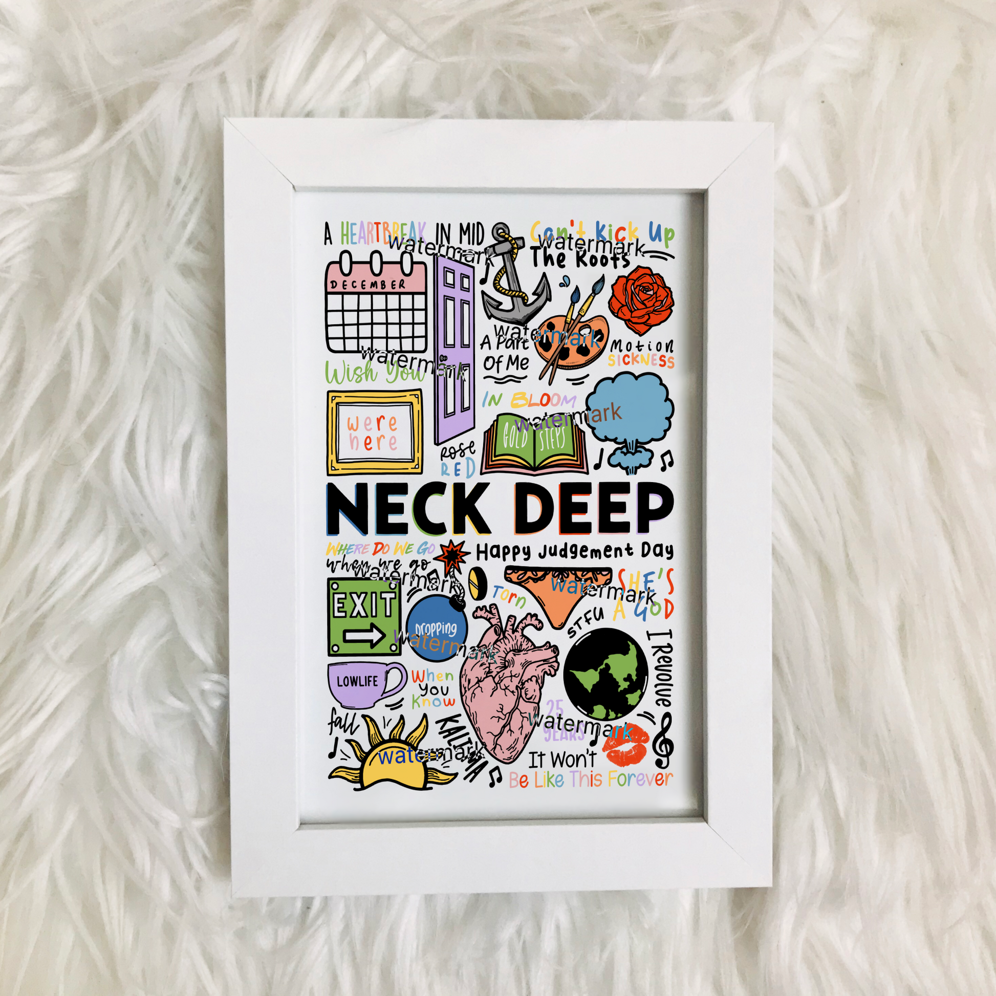 🎶 Art mural Neck Deep comprenant des images, des paroles et des titres de chansons de leurs albums.