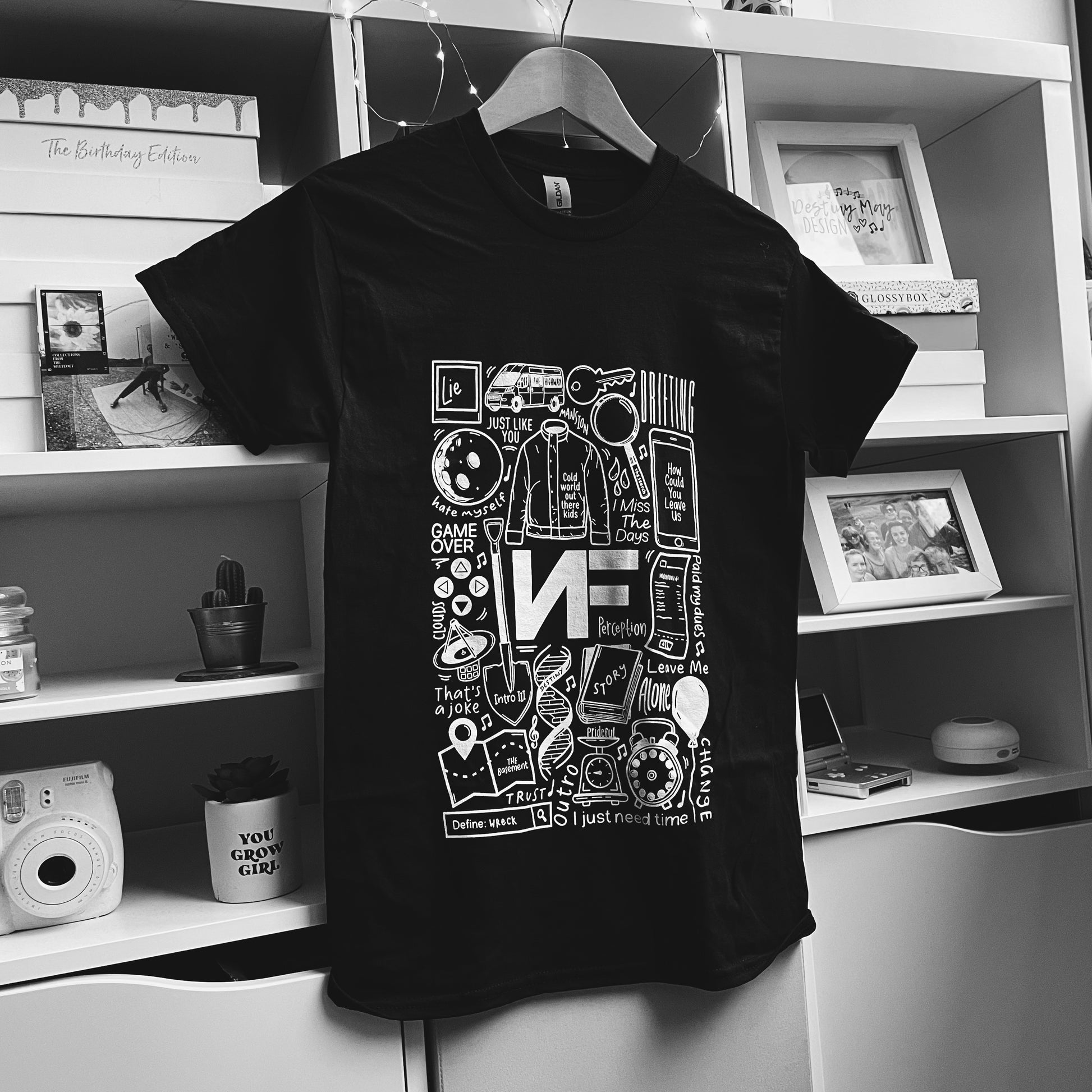 T-shirt rappeur NF unisexe en coton imprimé professionnellement en noir ou blanc.