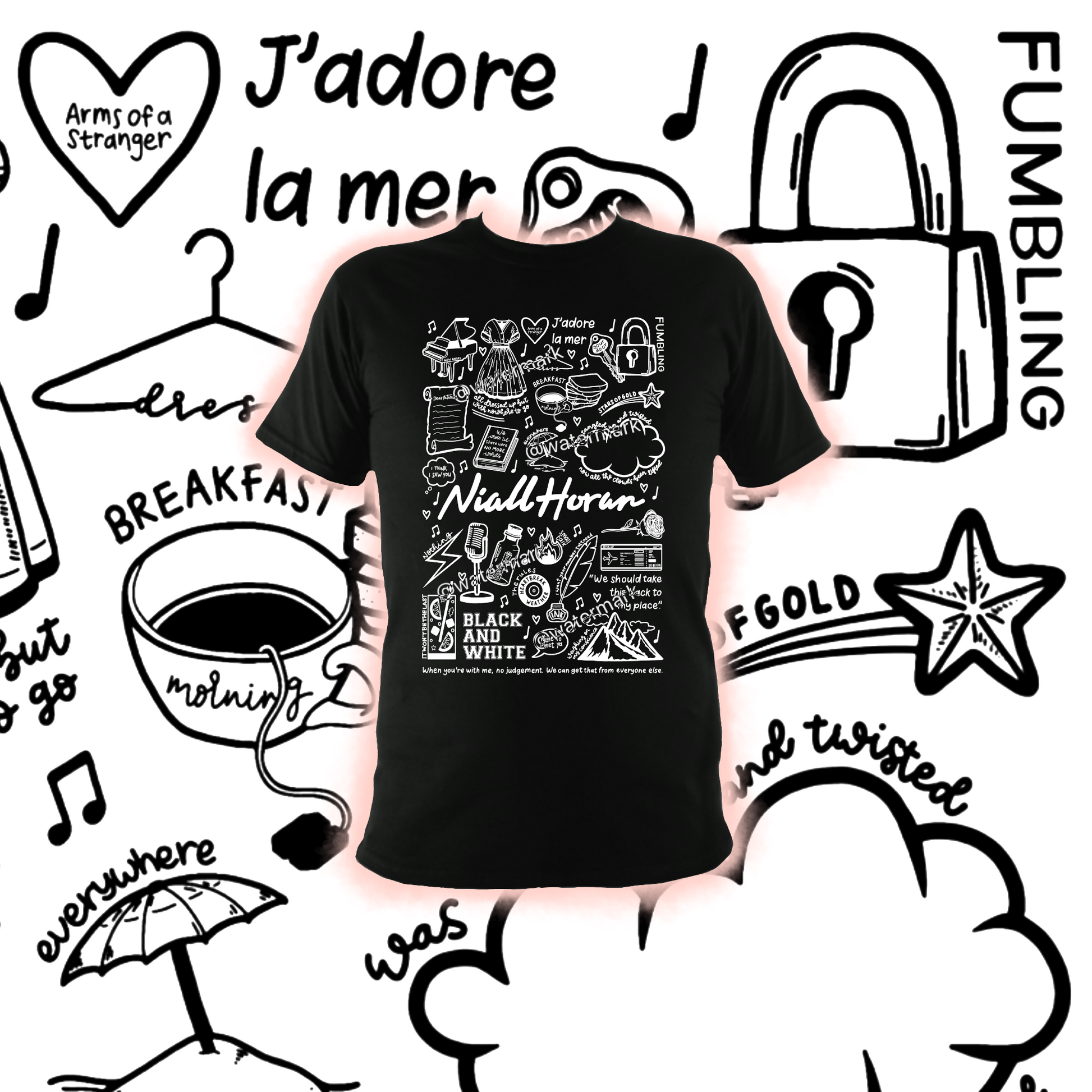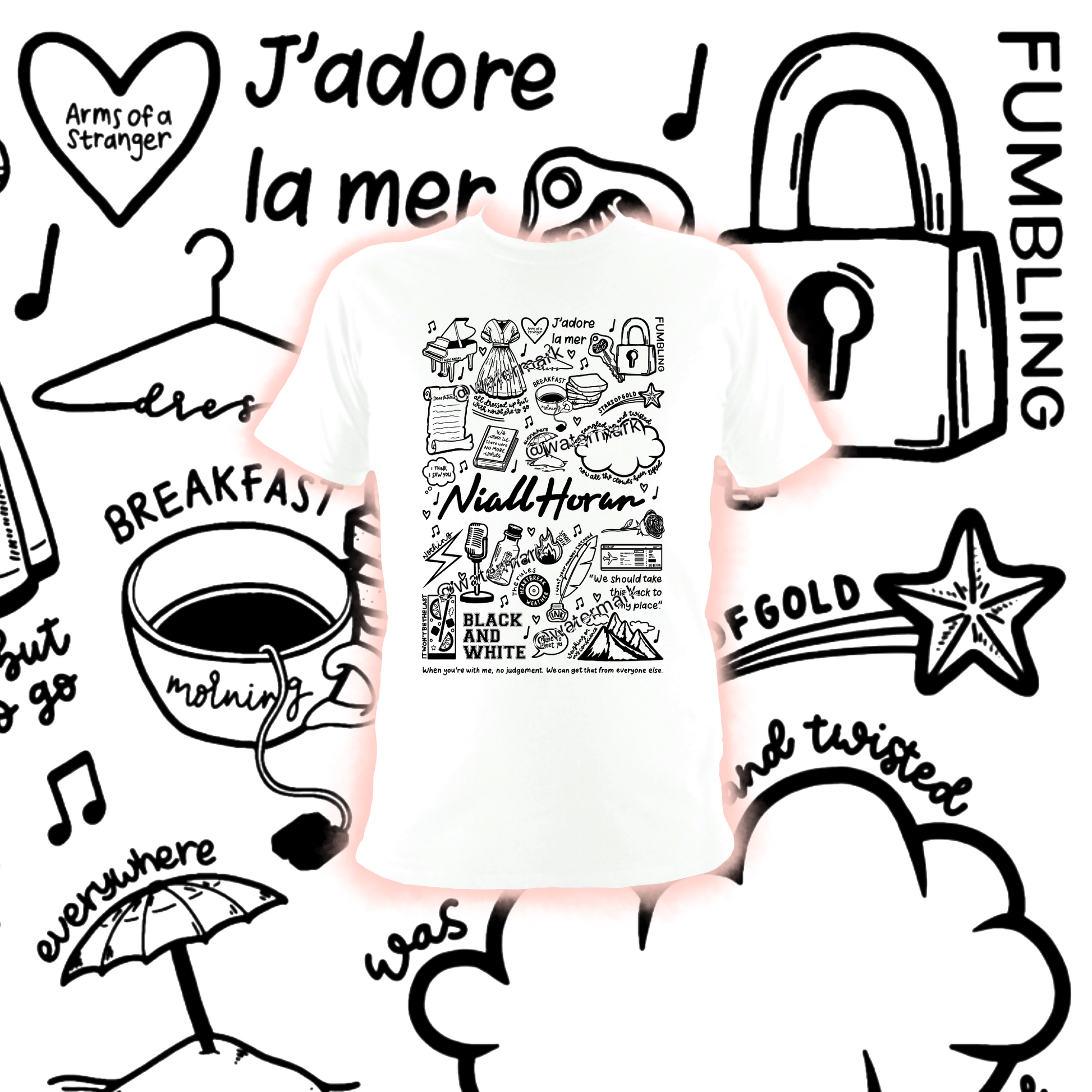 T-shirt unisexe Niall Horan en coton imprimé professionnellement en noir ou blanc.