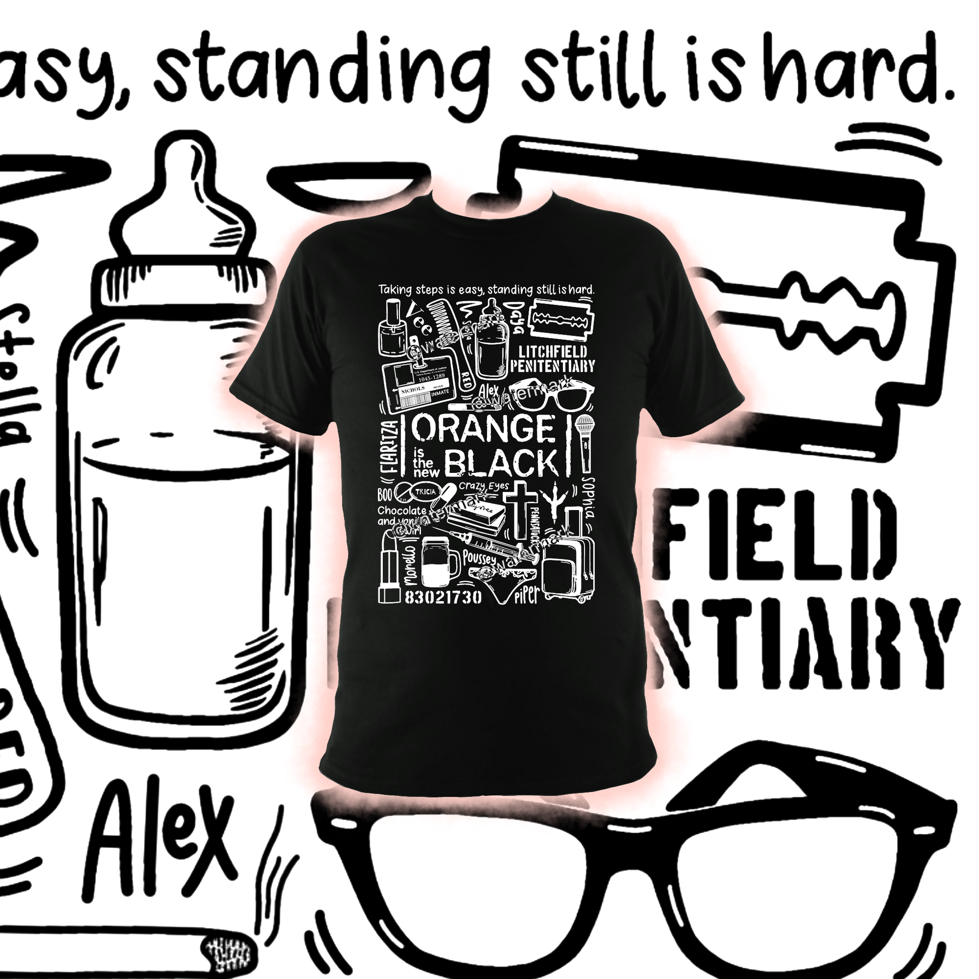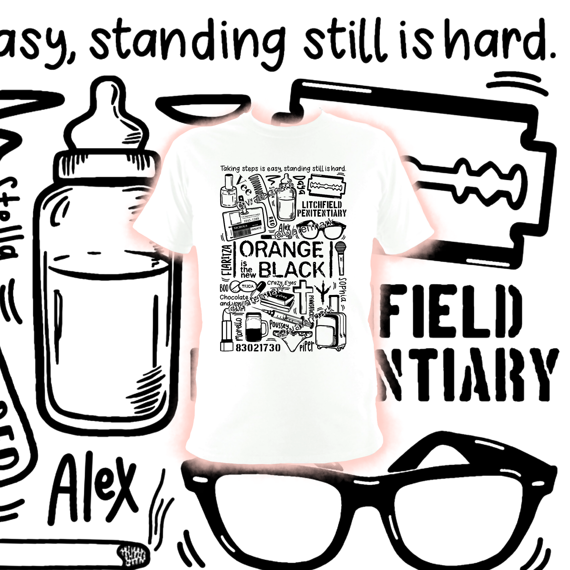 🎬T-shirt unisexe en coton imprimé professionnellement Orange Is The New Black en noir ou blanc.