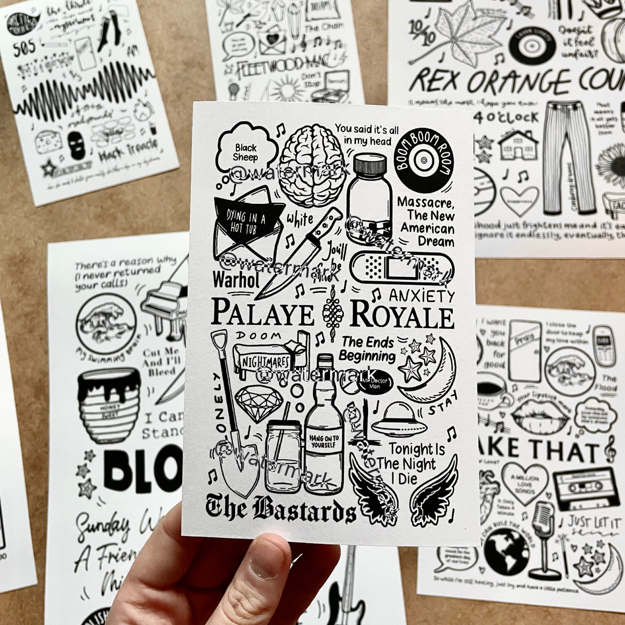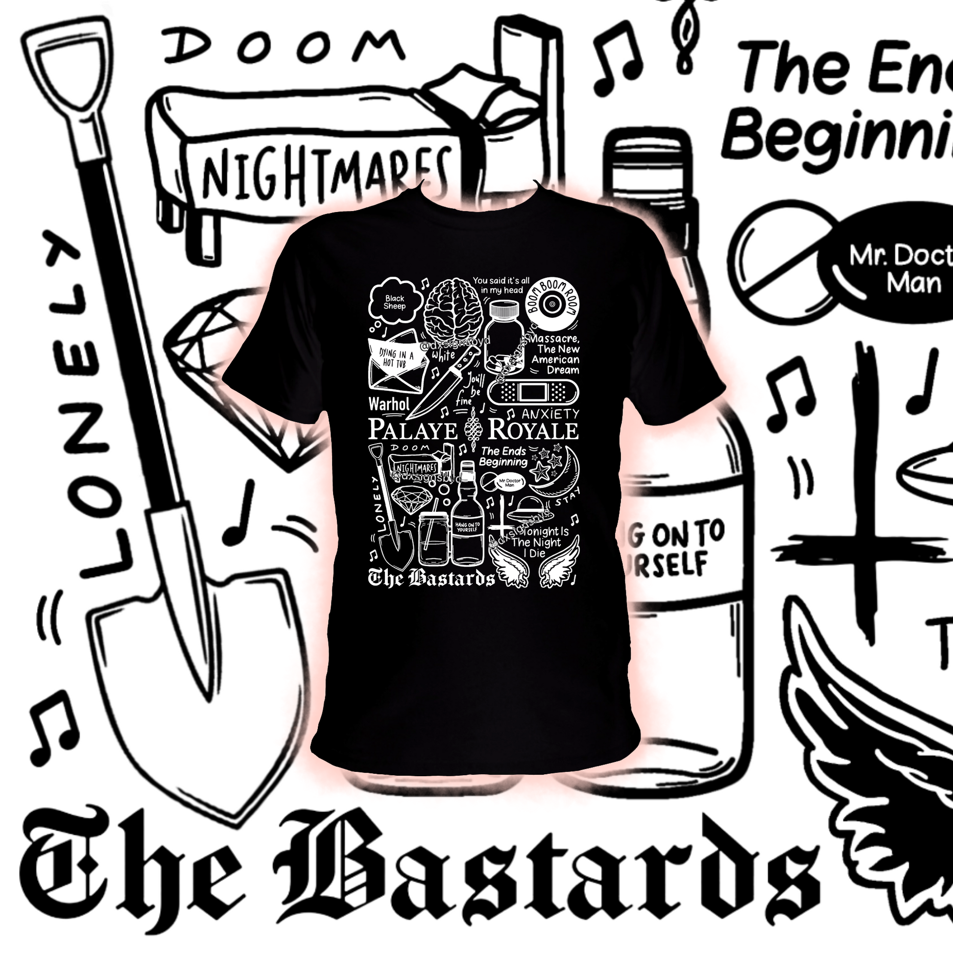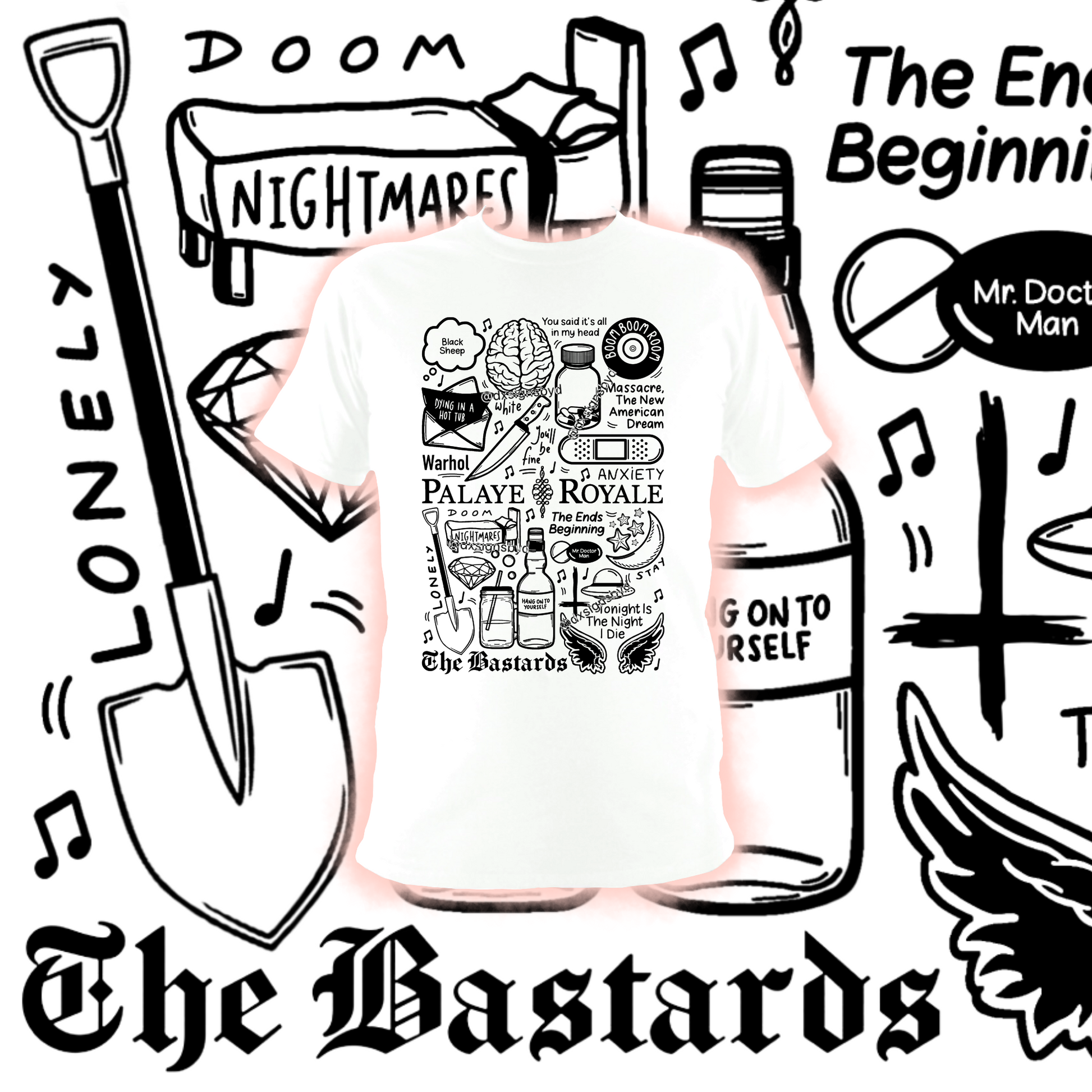 T-shirt unisexe Palaye Royale en coton imprimé professionnellement en noir ou blanc.