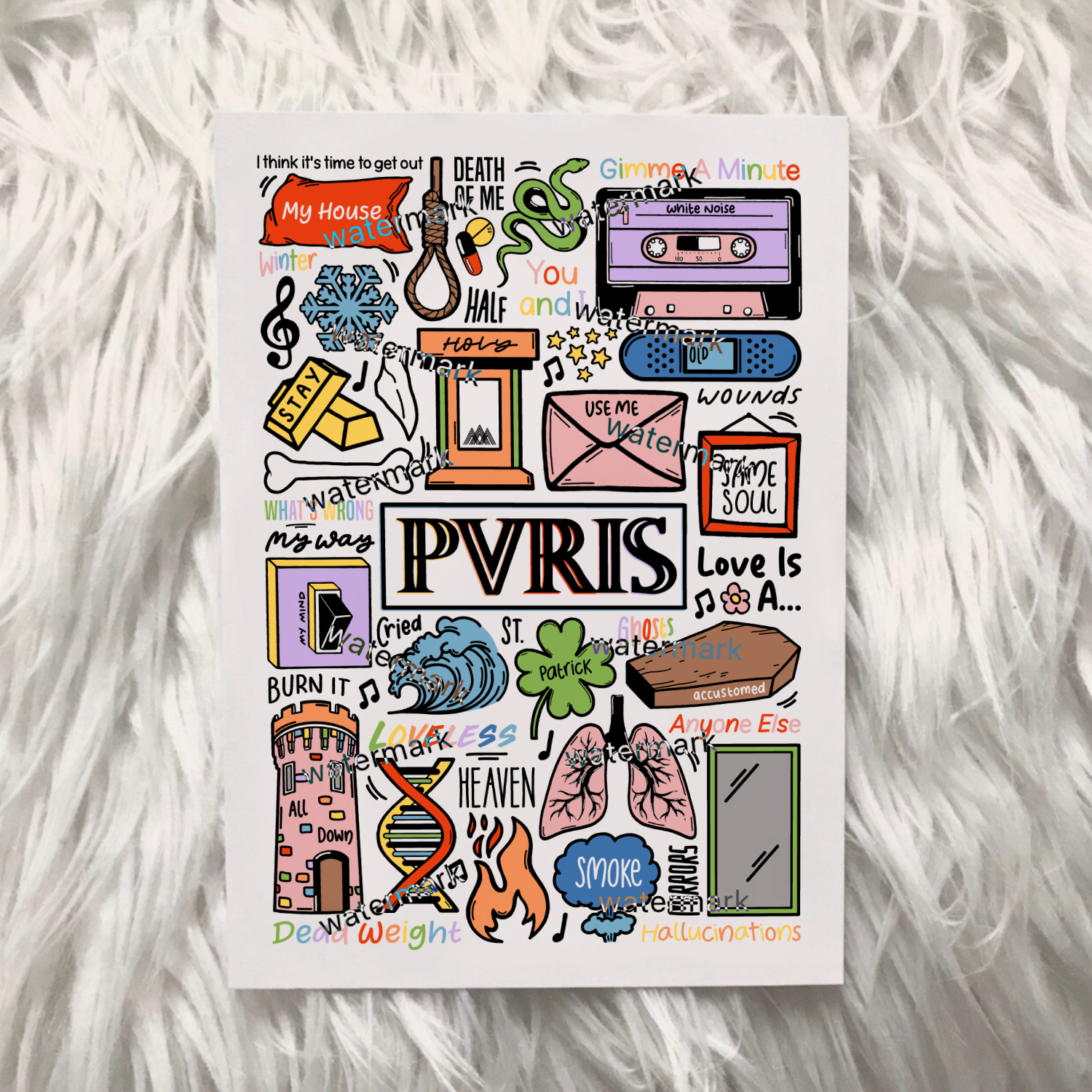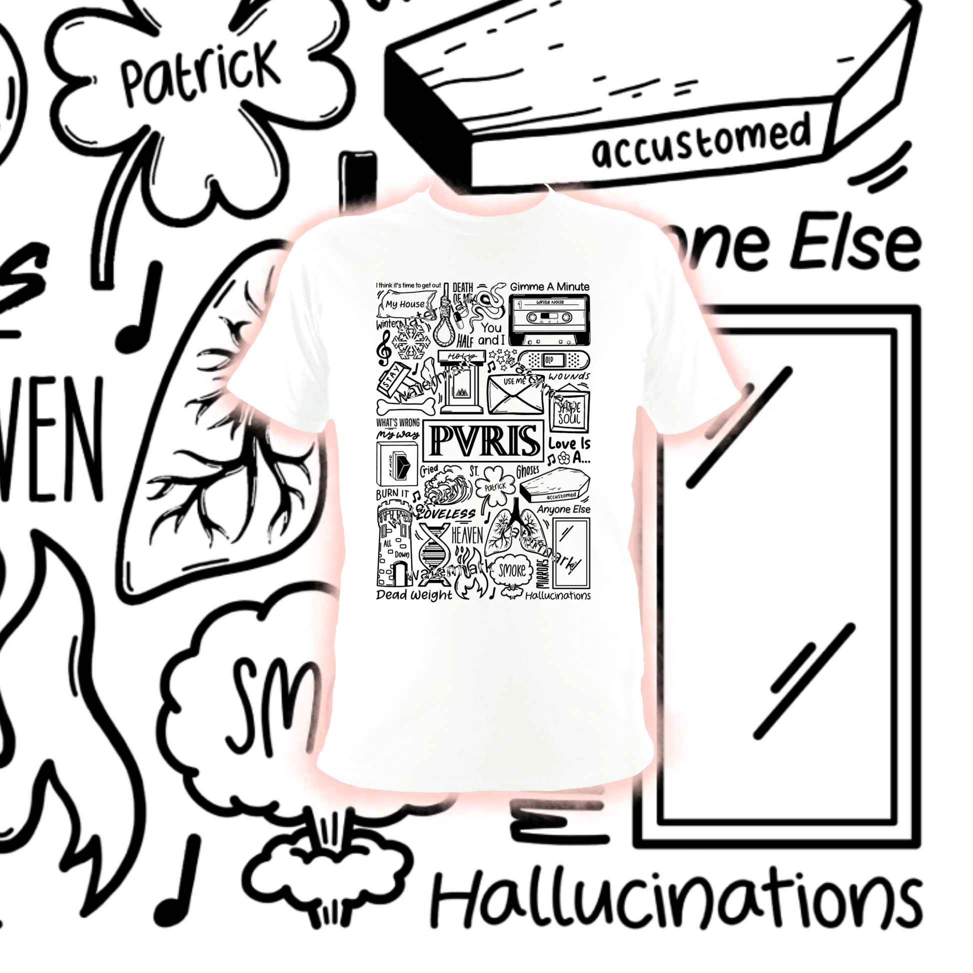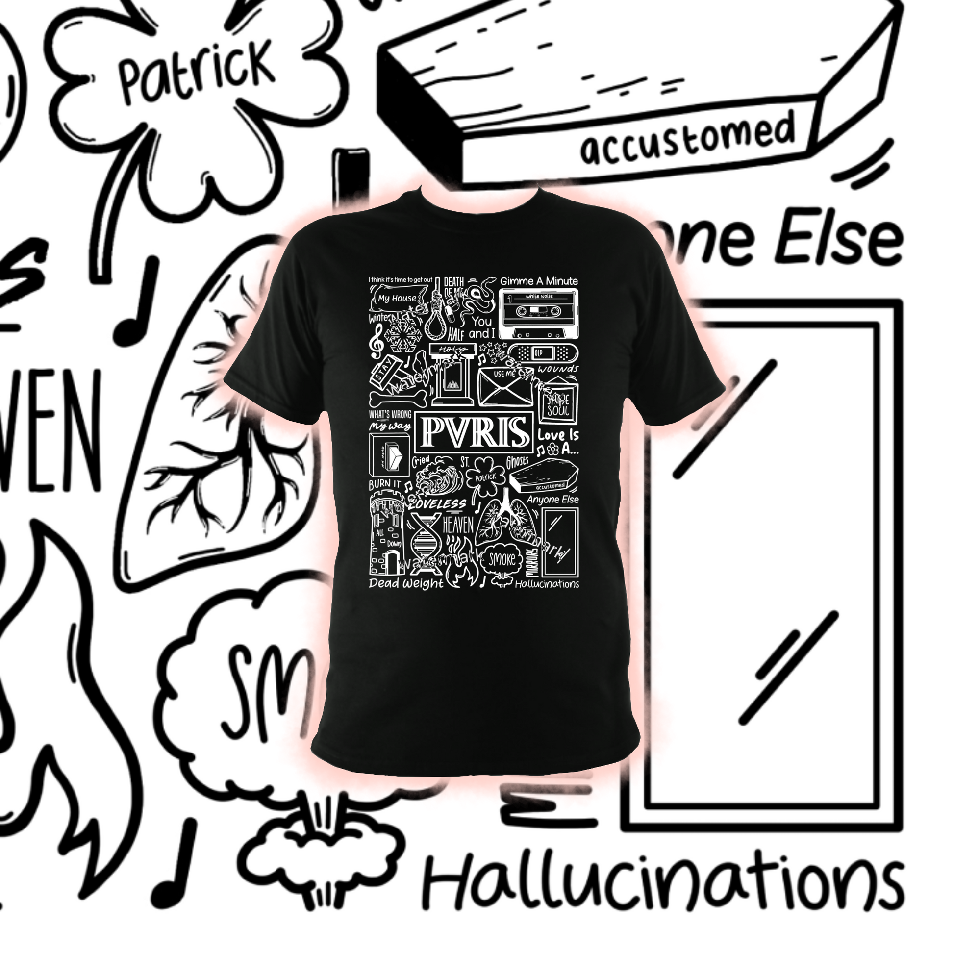 T-shirt unisexe Pvris en coton imprimé professionnellement en noir ou blanc.