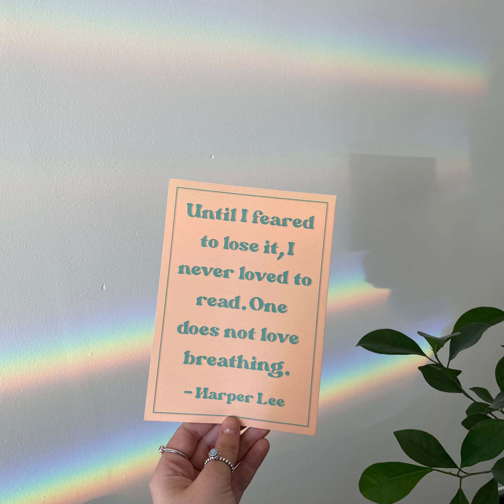 🧡Affiche motivante et positive de Harper Lee comportant la citation en police verte sur fond orange.