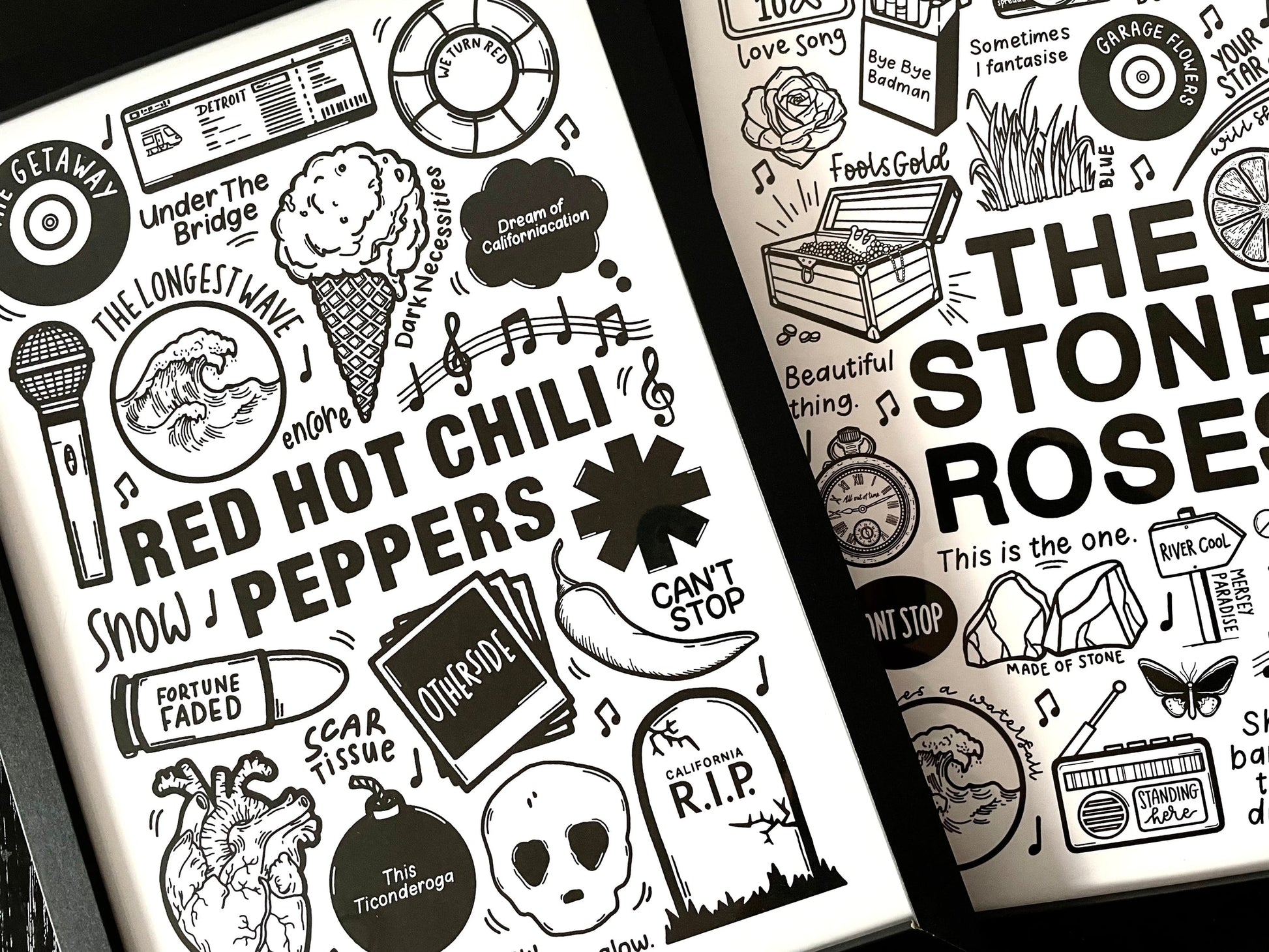 T-shirt unisexe en coton imprimé professionnellement Red Hot Chili Peppers en noir ou blanc .