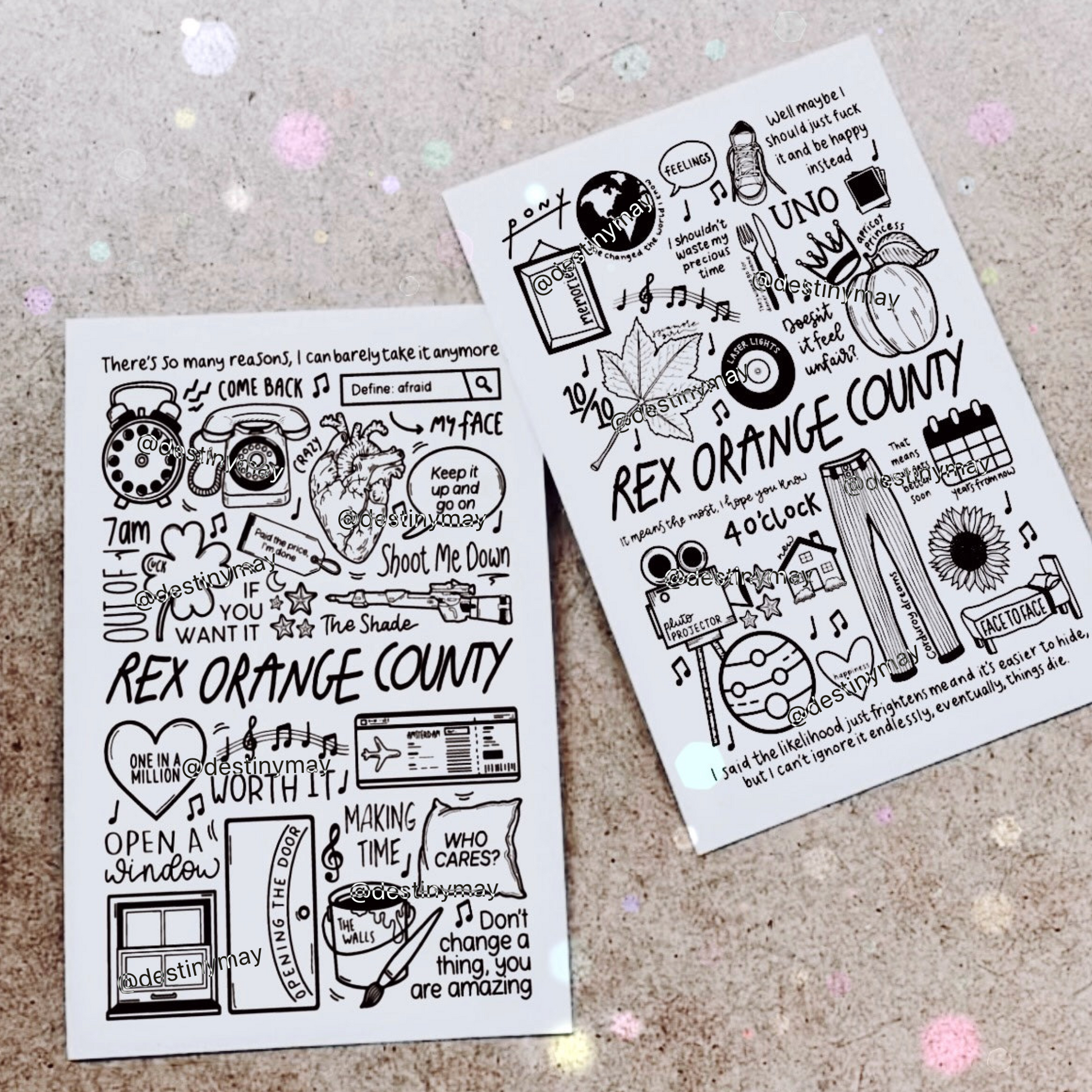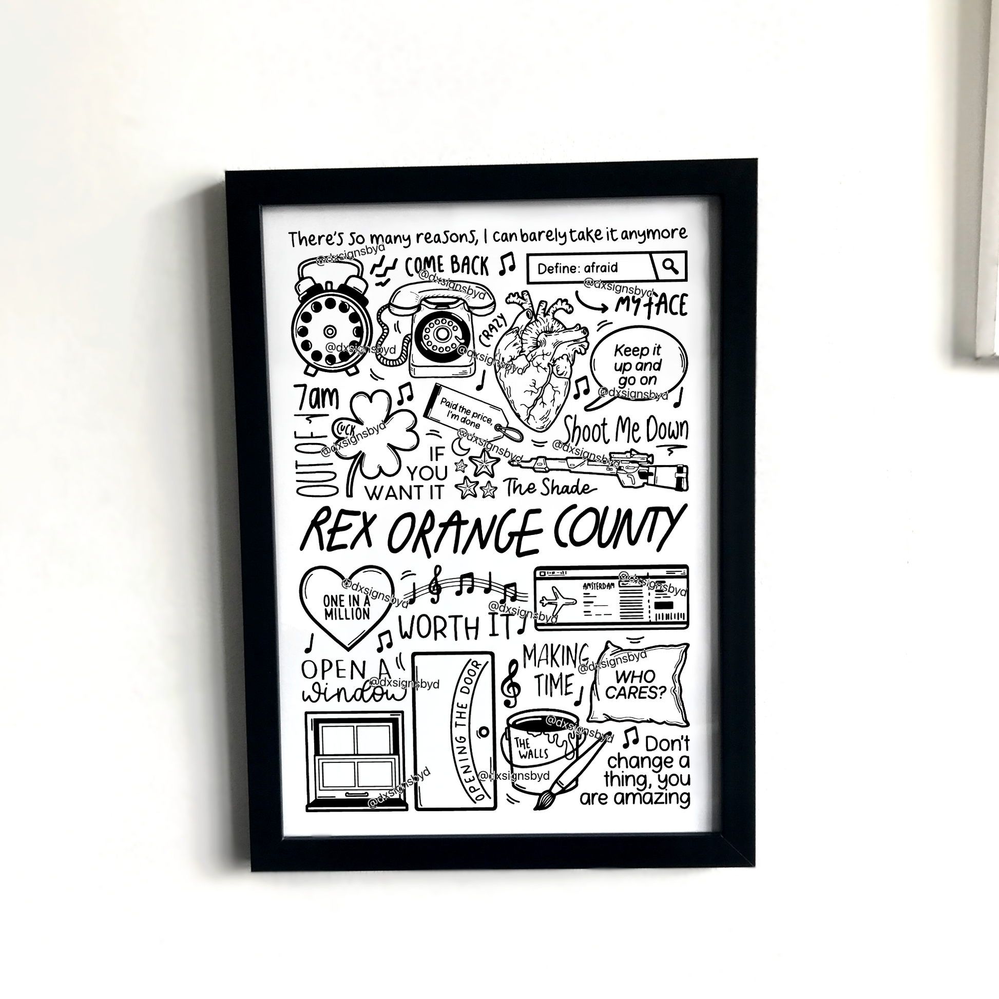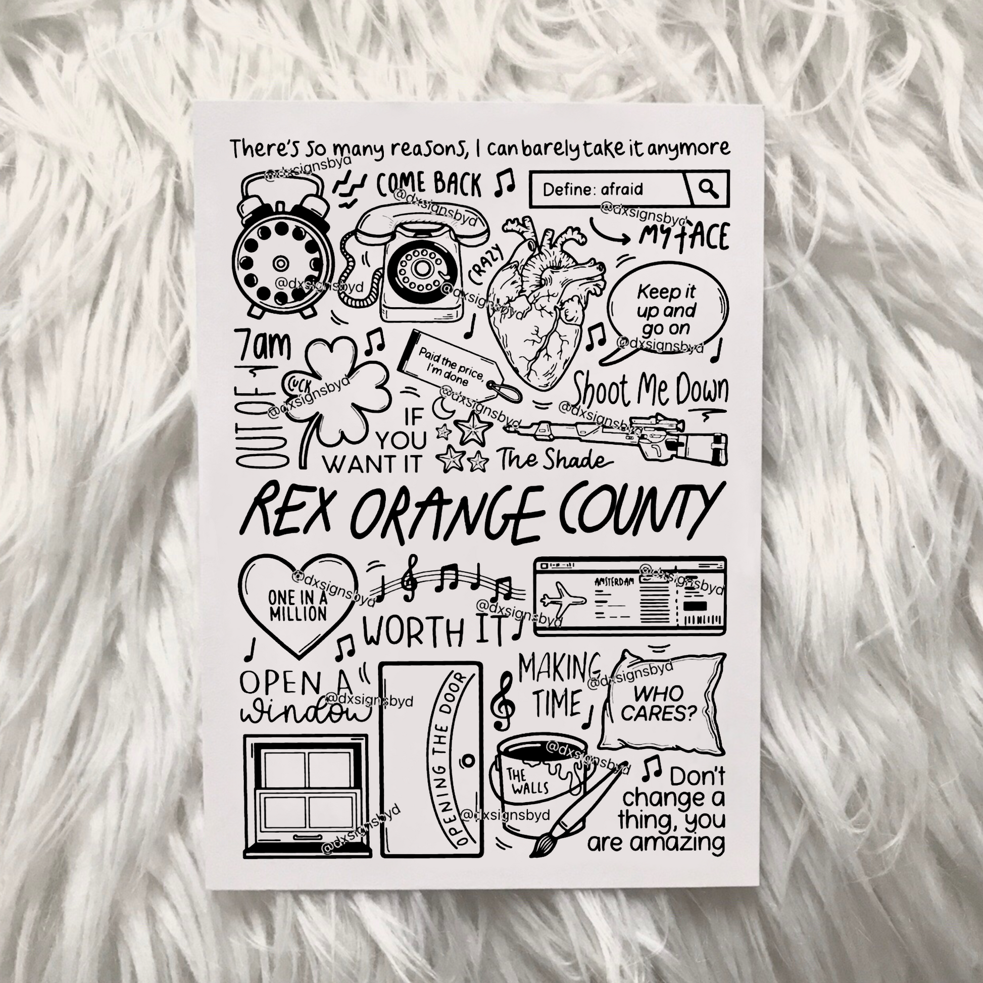 🎶Affiche de Rex Orange County qui comprend des images et des paroles de chansons de leur album WHO CARES ?